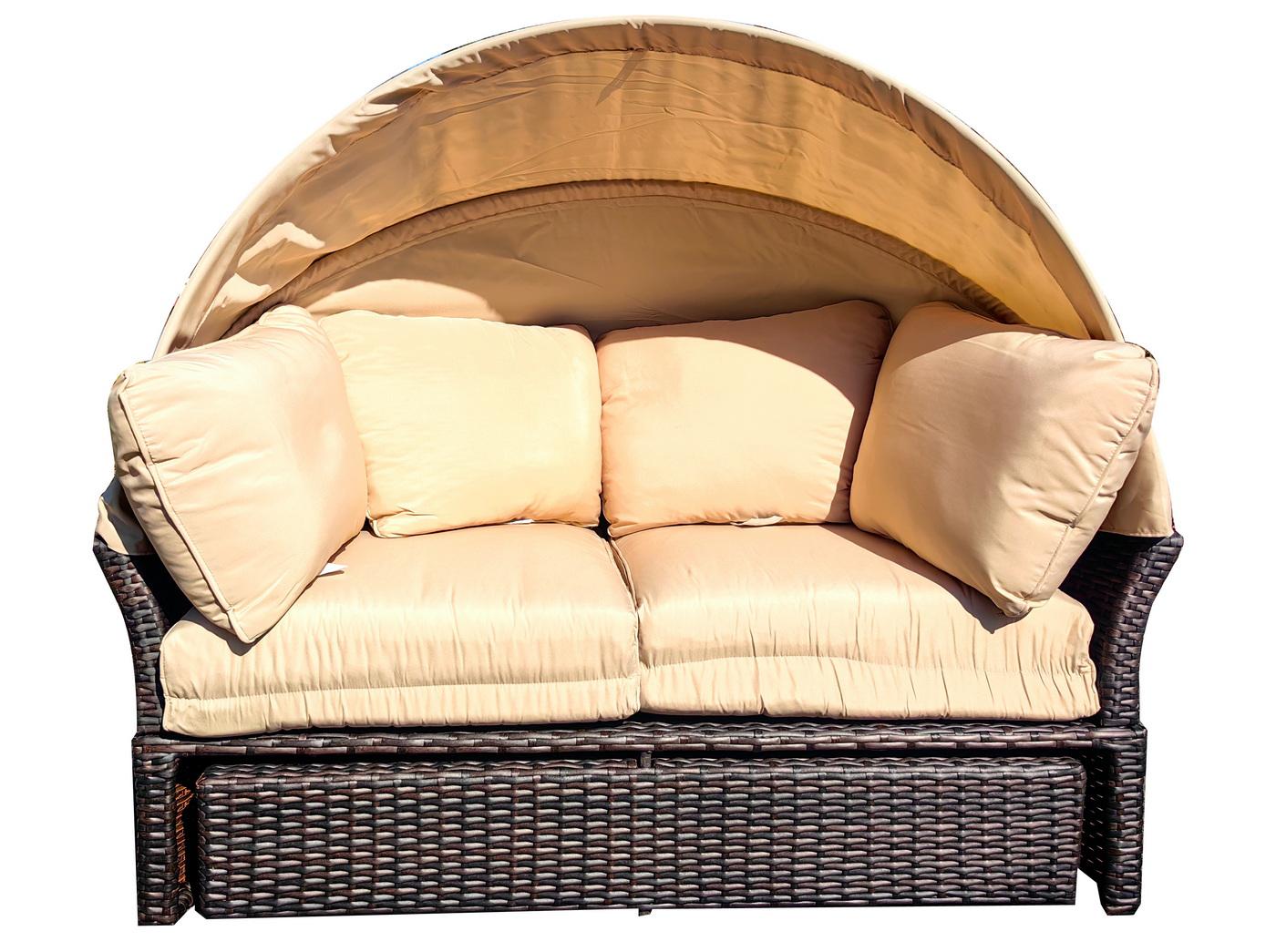Абажур 4SIS "Амальфи" плетеная кровать-трансформер, цвет коричневый, подушки бежевые арт. JHB2165 brown(beige)