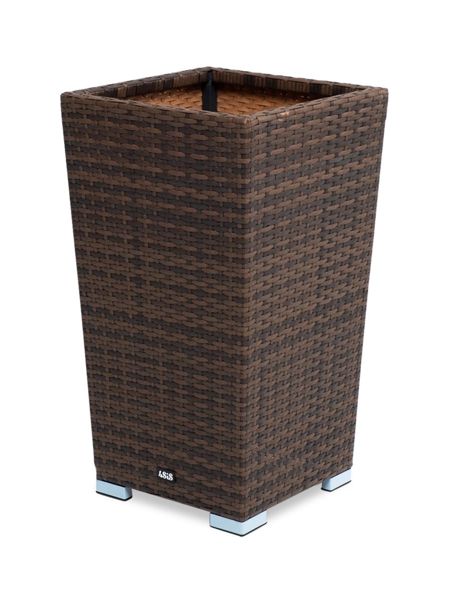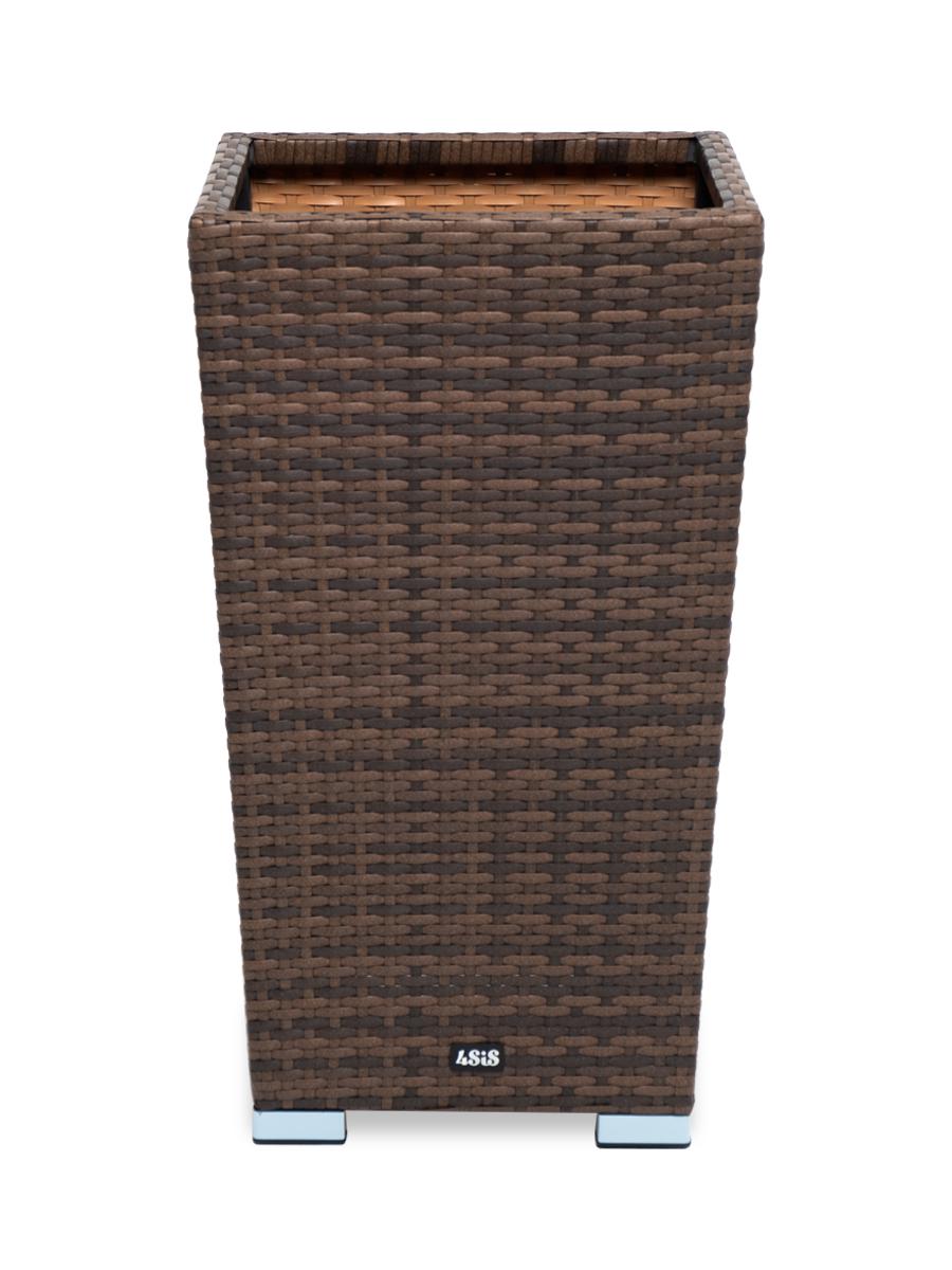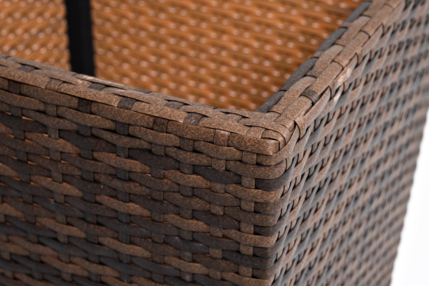 Плетеное кашко «Капучино» подходит для комнатных и уличных растений. Изготовлено из плоского искусственного ротанга коричневого цвета. Обладает высокой стойкостью к погодным условиям, перепадам температуры, не подвергается коррозии, поэтому можно использовать на открытом воздухе круглый год. В основе алюминиевый каркас, который вручную оплетен ротангом. Высота кашпо - 70 см, длина и ширина - по 40 см.