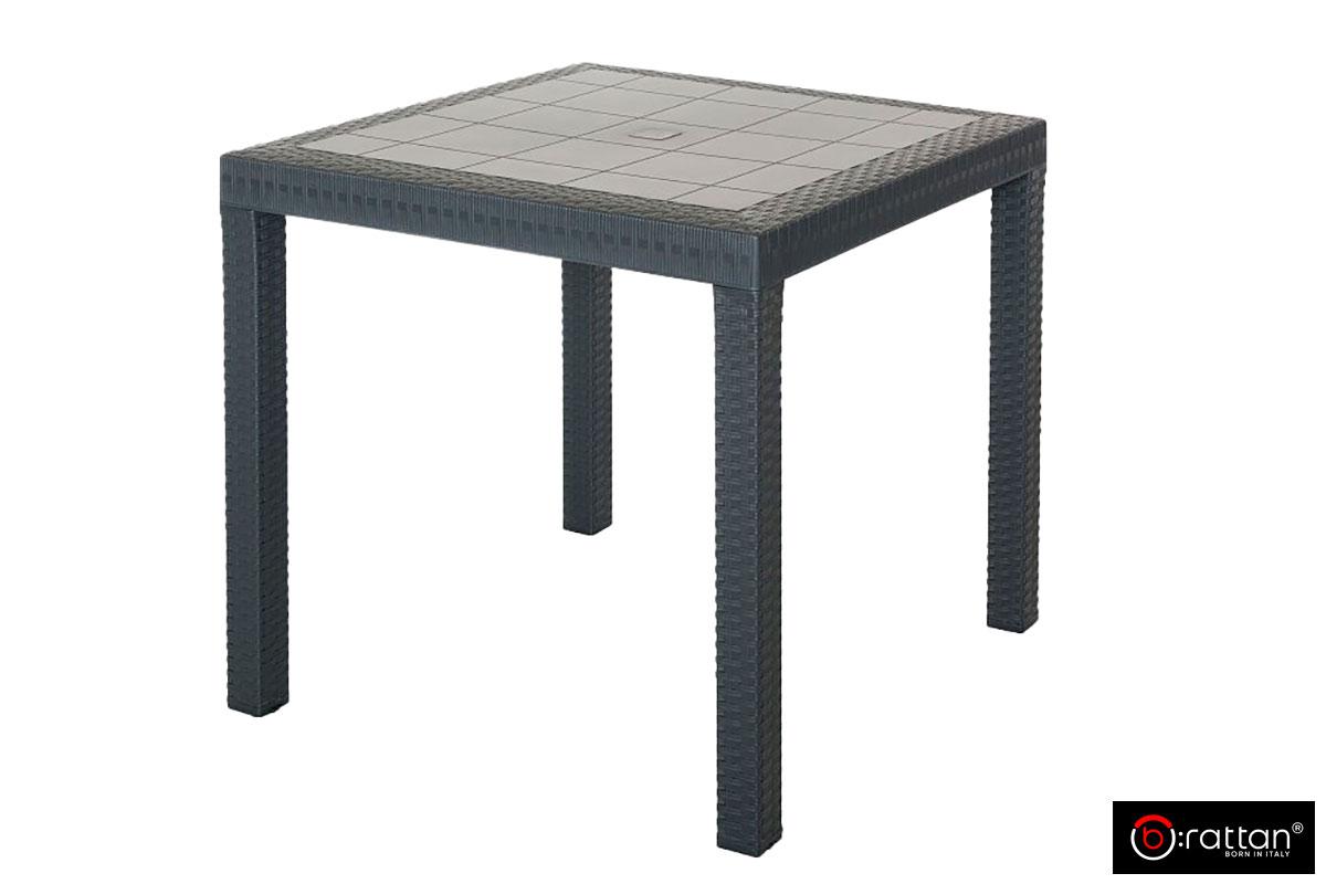 Стол Раттан / Rattan ДАЛЛАС / DALLAS на 4 персонs от итальянского бренда B:Rattan — квадратный обеденный стол из прочного пластика с поверхностью, имитирующей ротанговое плетение, и гладкой столешницей. Ножки разборные.