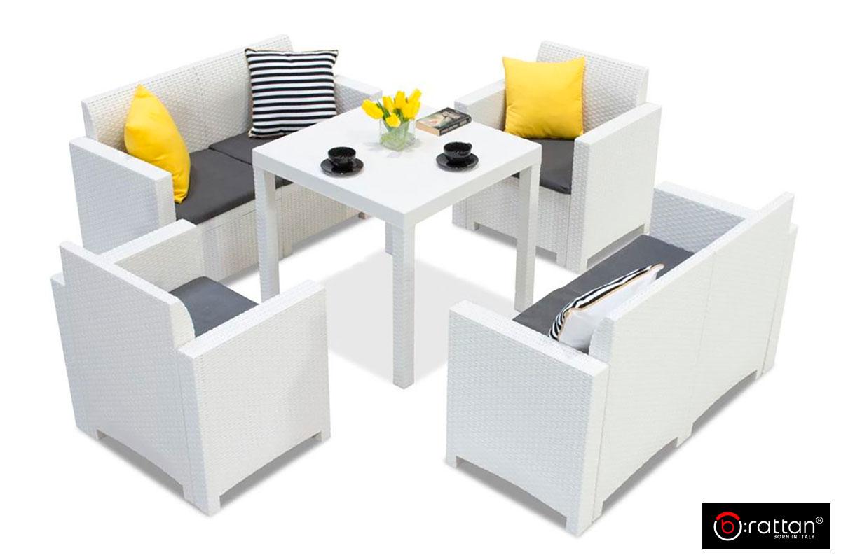 Стол Раттан / Rattan ДАЛЛАС / DALLAS на 4 персонs от итальянского бренда B:Rattan — квадратный обеденный стол из прочного пластика с поверхностью, имитирующей ротанговое плетение, и гладкой столешницей. Ножки разборные.