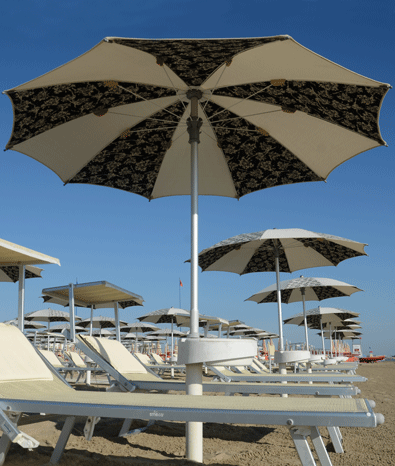Magnani знает, как объединить качество дизайна с технологическими исследованиями для производства зонтиков для пляжей и бассейнов. Со временем он смог распространить свои интересы на макси-зонтики и зонтики, как аксессуары для сада и экстерьера, превращая открытые пространства в настоящие элегантные, функциональные и удобные гостиные.