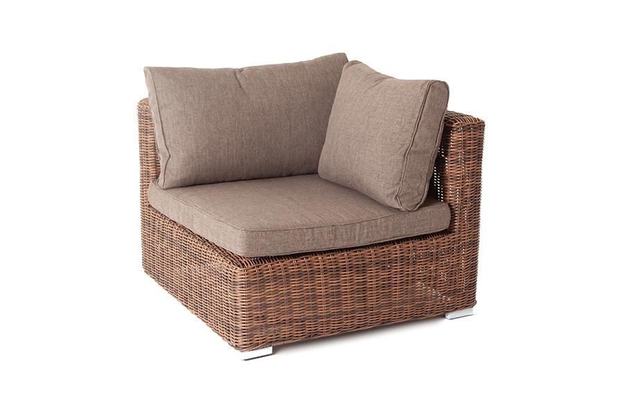 Диван из ротанга «Лунго» относится к группе трансформирующихся моделей, которые рассчитаны на большую компанию. Он состоит из набора модулей: трех угловых (размер – 860×860×650 мм) и двух прямых (740×860×650 мм). В качестве основы мебели используется алюминиевом каркас высокой прочности. Ее дополняет ручная оплетка, сделанная из круглого искусственного ротанга в коричневом оттенке. На модульном плетеном диване находятся удобные подушки с чехлами, которые можно снять. Они пошиты из качественного полиэстера серого цвета с плотностью 300гр/м2. Ткань предварительно обрабатывается влагоотталкивающей пропиткой. "Лунго" модуль диванный прямой с подушками, цвет коричневый 2шт. 740Х860Х650, "Лунго" модуль диванный угловой с подушками, цвет коричневый 3шт. 860Х860Х650,