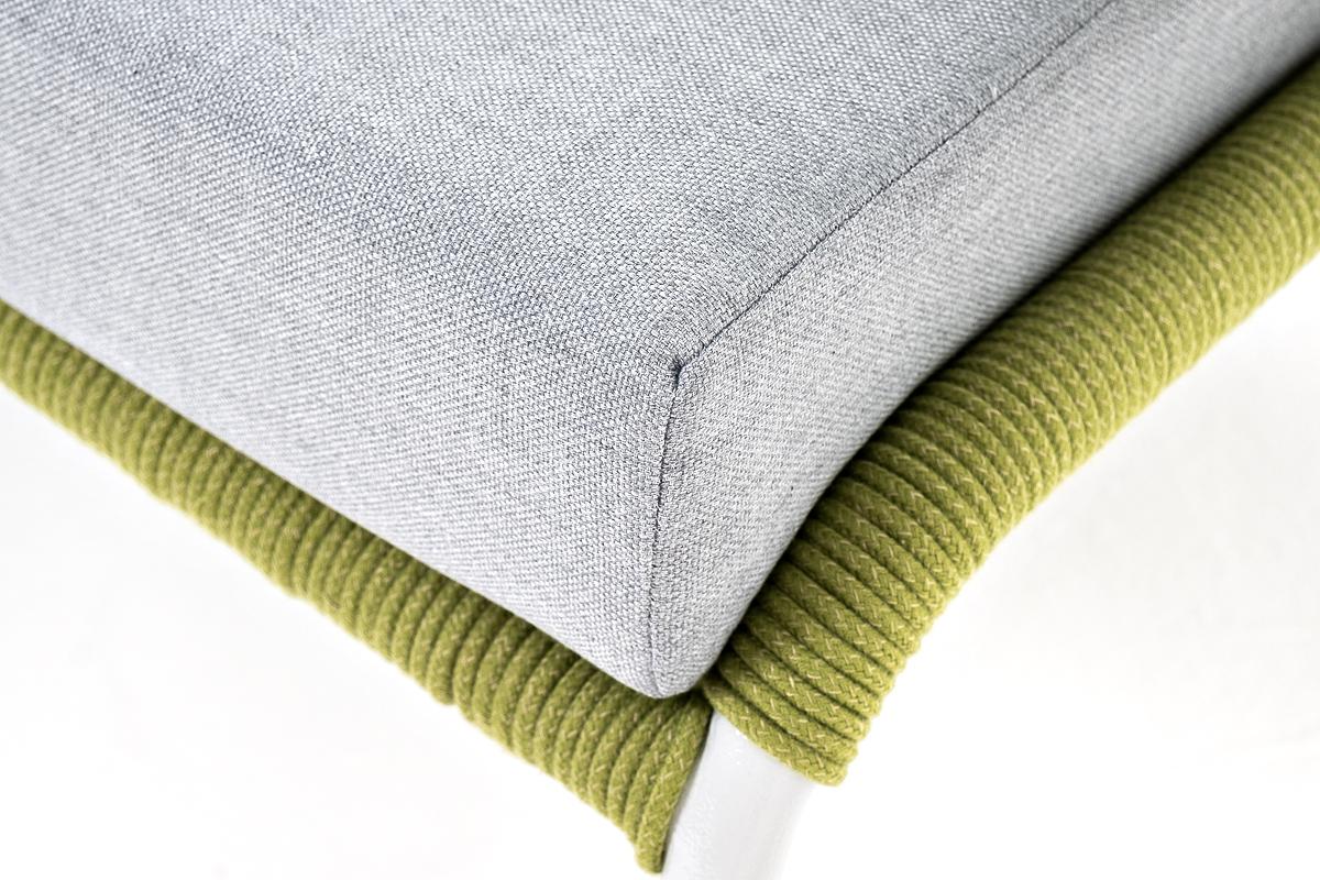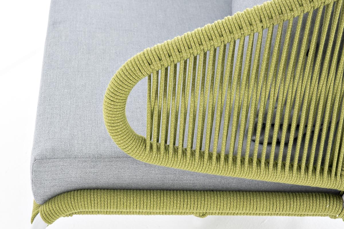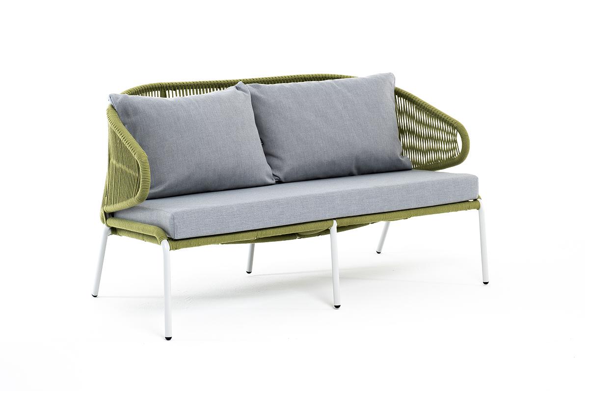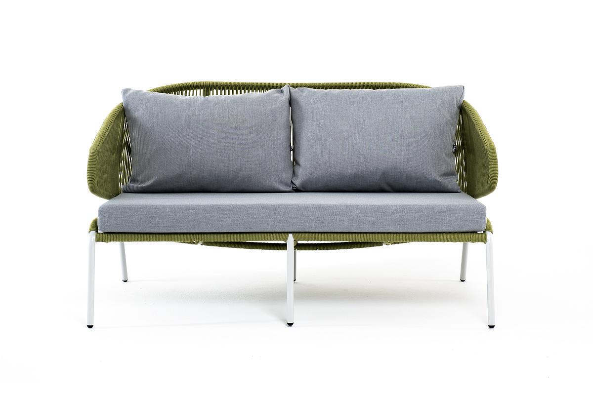 Диван 4SIS "Милан" диван 2-местный плетеный из роупа, каркас алюминий светло-серый (RAL7035) шагрень, роуп салатовый меланж круглый, ткань светло-серая арт. MIL-S-2-001 RAL7035 Mua mel-green(H-gray)