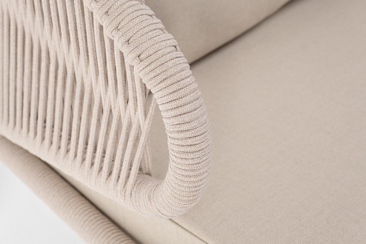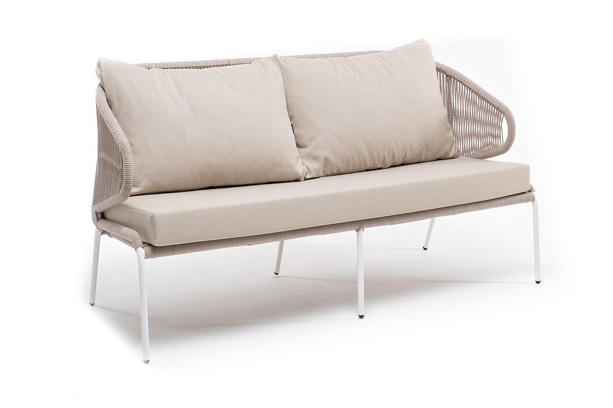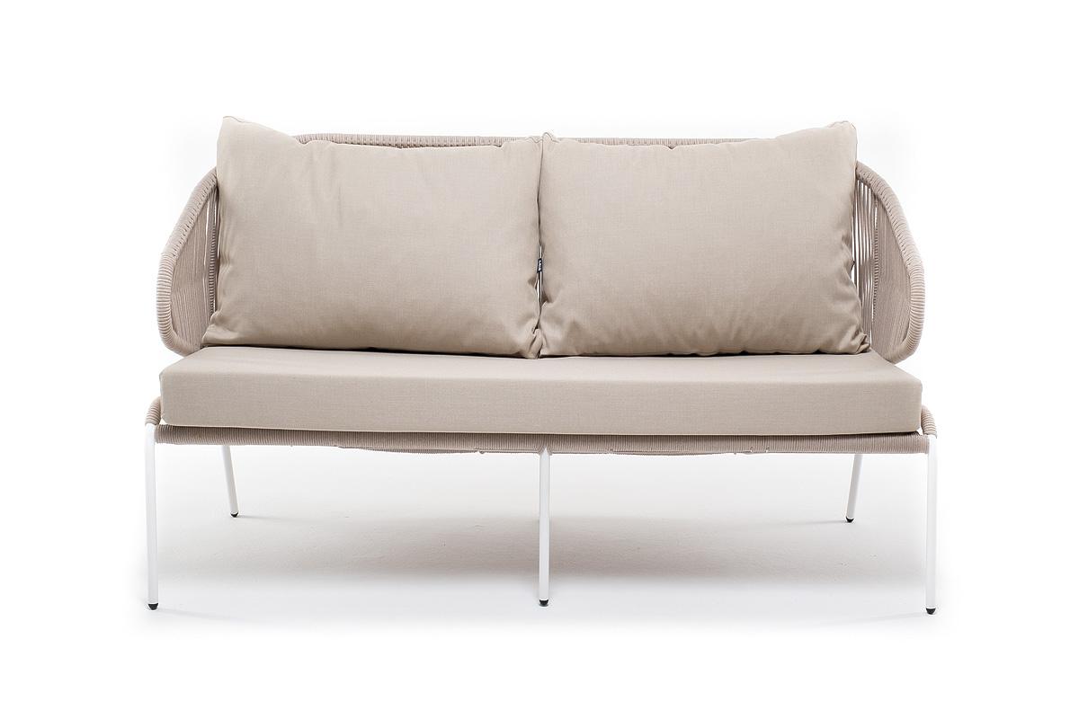 Диван 4SIS "Милан" диван 2-местный плетеный из роупа, каркас алюминий белый муар, роуп бежевый круглый, ткань бежевая 035 арт. MIL-S-2-001 W Mua beige(beige035)