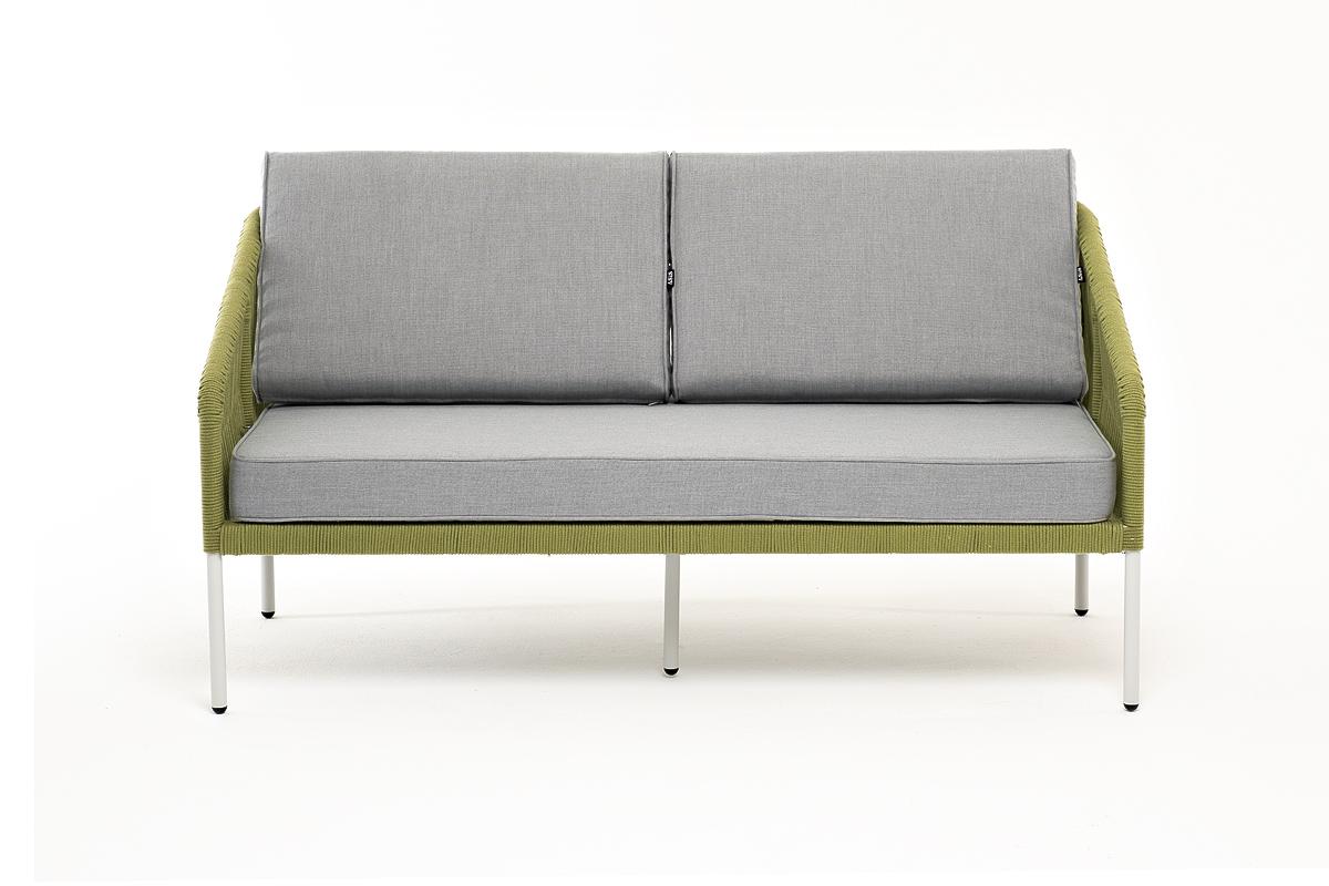 Диван 4SIS "Канны" диван 2-местный плетеный из роупа, каркас алюминий светло-серый (RAL7035) муар, роуп салатовый меланж круглый, ткань светло-серая арт. KAN-S-2-001 RAL7035 Mua mel-green(H-gray)