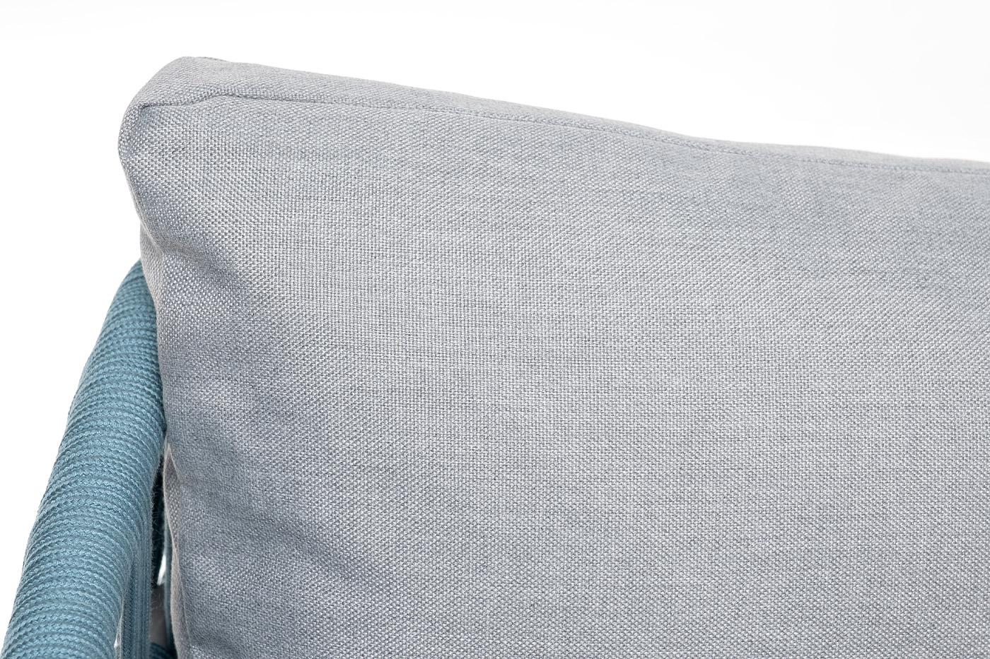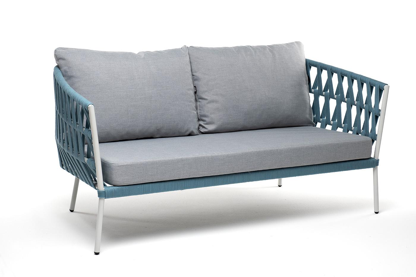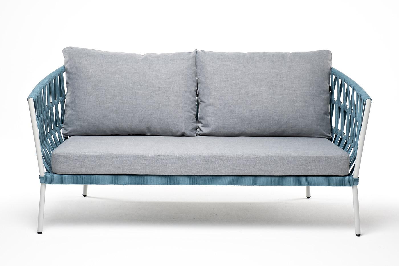 Диван 4SIS "Диего" диван 2-местный плетеный из роупа, каркас алюминий светло-серый (RAL7035) муар, роуп бирюзовый круглый, ткань светло-серая арт. DIE-S-2-001 RAL7035 Mua blue(H-gray)