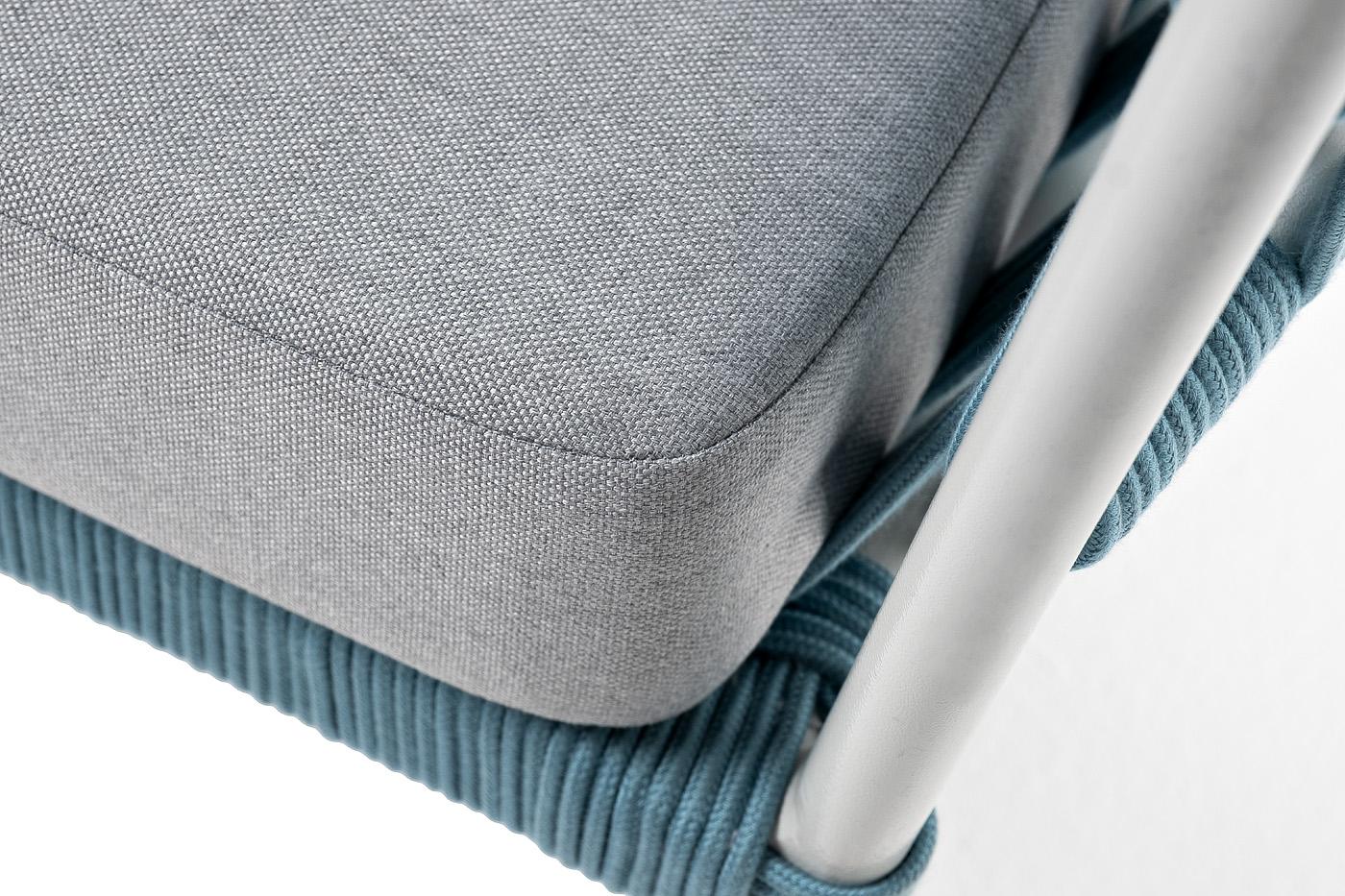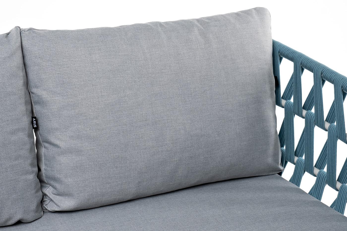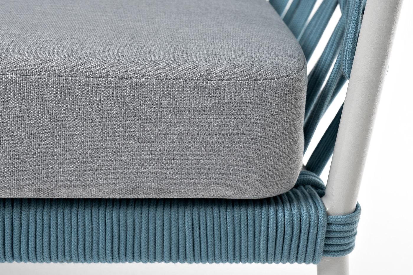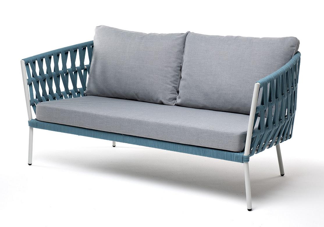 Диван 4SIS "Диего" диван 2-местный плетеный из роупа, каркас алюминий светло-серый (RAL7035) муар, роуп бирюзовый круглый, ткань светло-серая арт. DIE-S-2-001 RAL7035 Mua blue(H-gray)