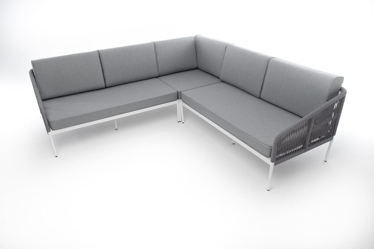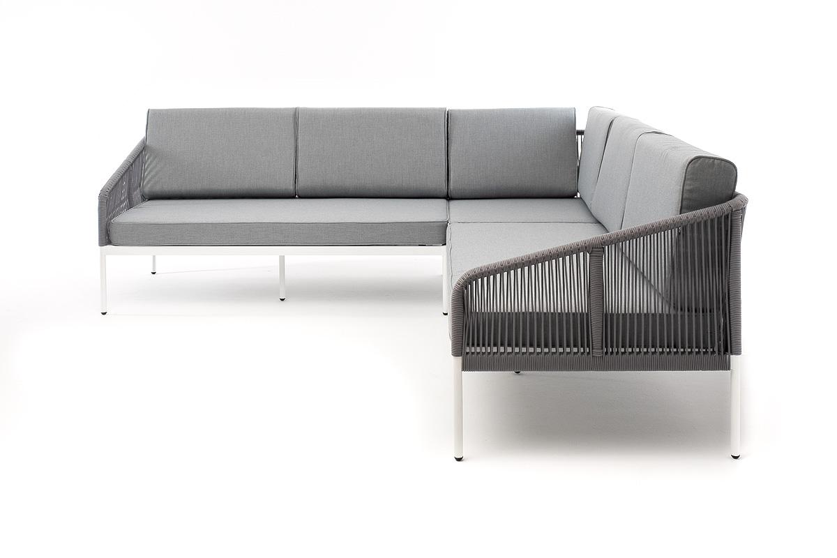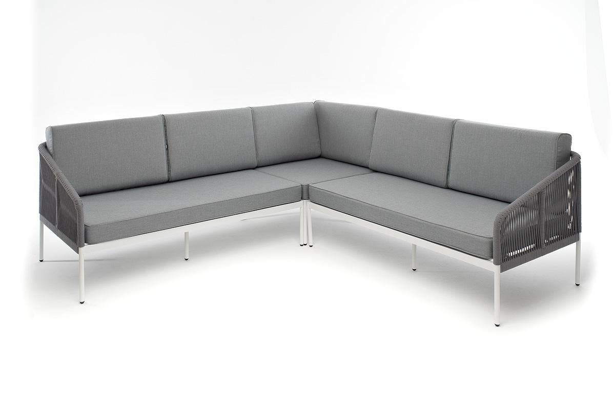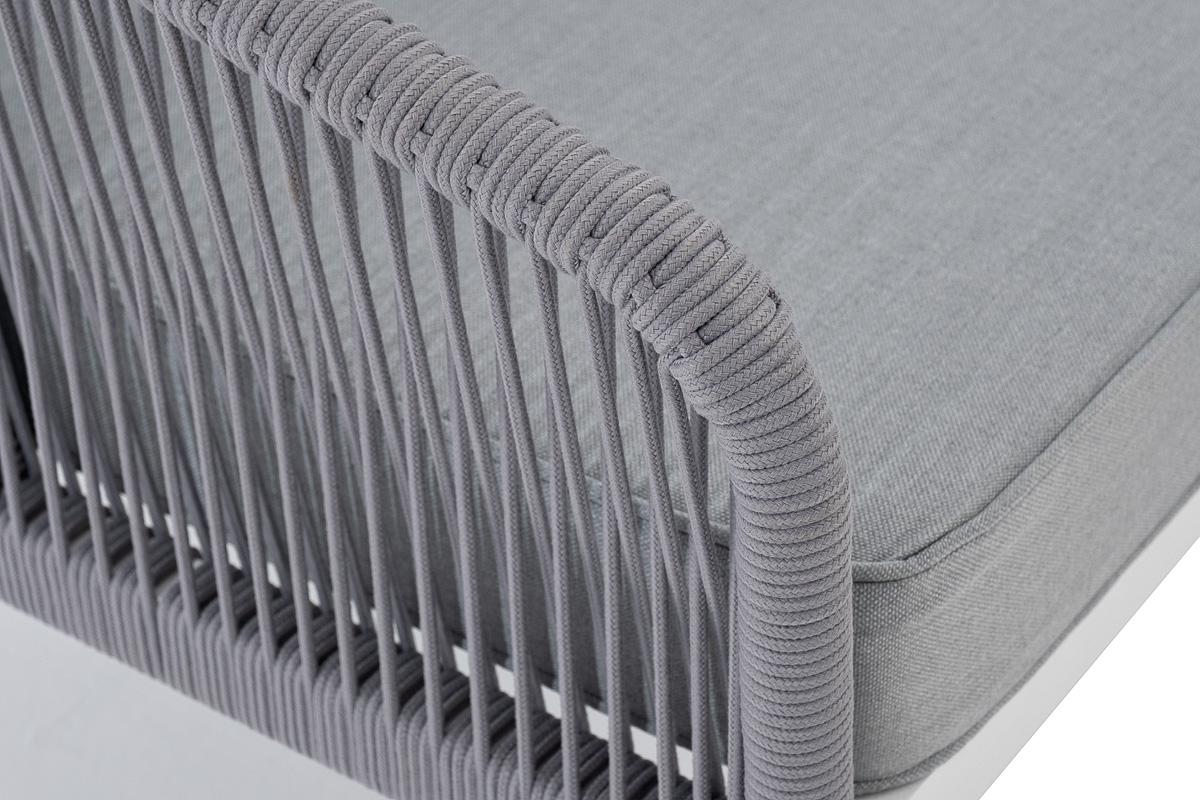 Диван 4SIS "Канны" диван модульный плетеный из роупа, каркас алюминий белый, роуп светло-серый круглый, ткань светло-серая арт. KAN-MS-001 W H-grey(H-gray)