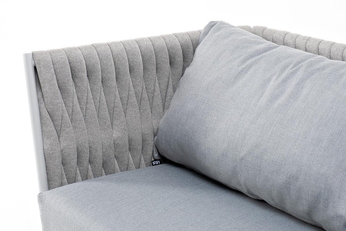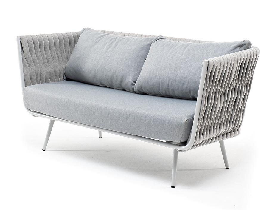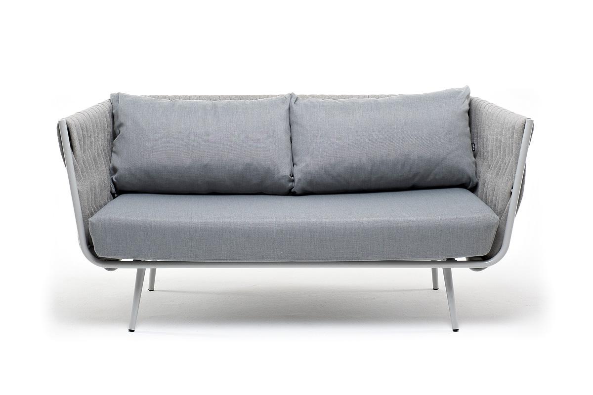 Диван 4SIS "Монако" диван 2-местный плетеный из роупа, каркас алюминий светло-серый (RAL7035) муар, роуп светло-серый 40 мм, ткань светло-серая арт. MON-S-2-001 W Mua H-grey(H-gray)