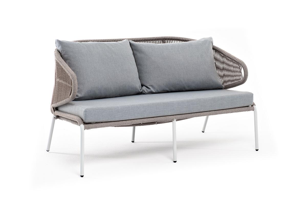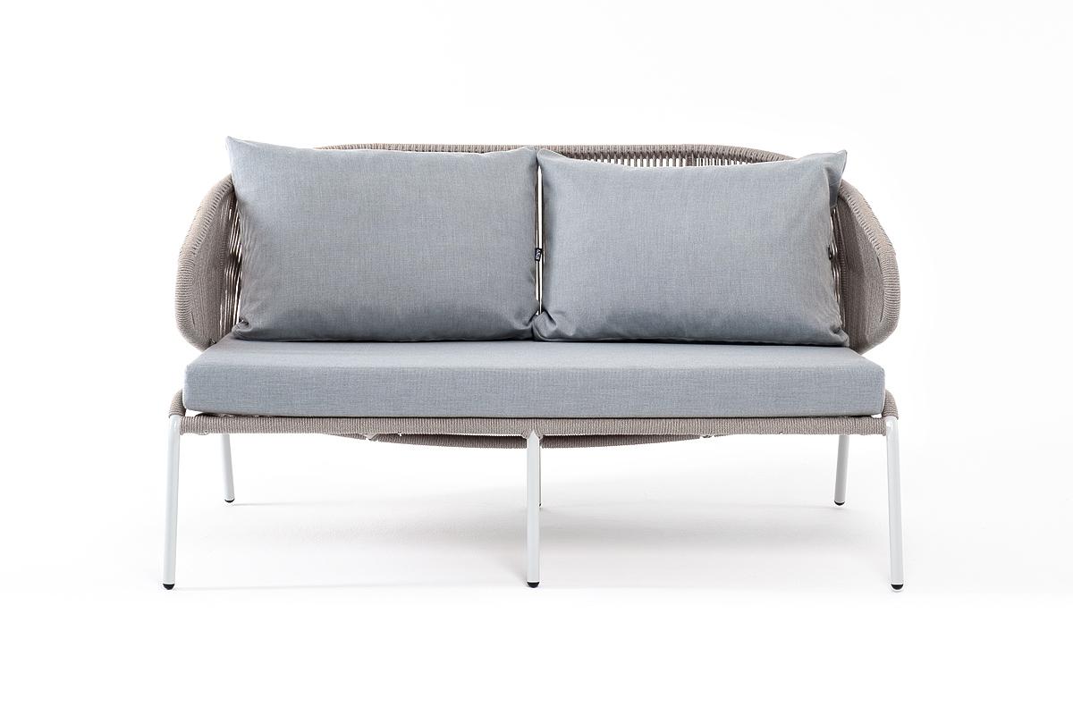 Диван 4SIS "Милан" диван 2-местный плетеный из роупа, каркас алюминий светло-серый (RAL7035) муар, роуп серый меланж круглый, ткань светло-серая арт. MIL-S-2-001 RAL7035 Mua mel-grey(H-gray)