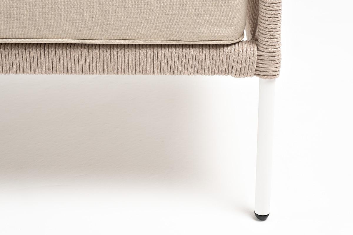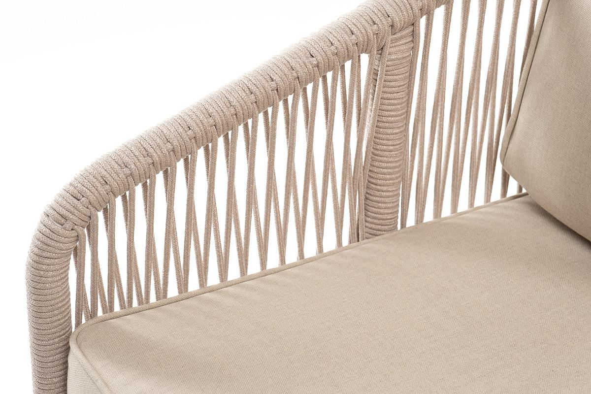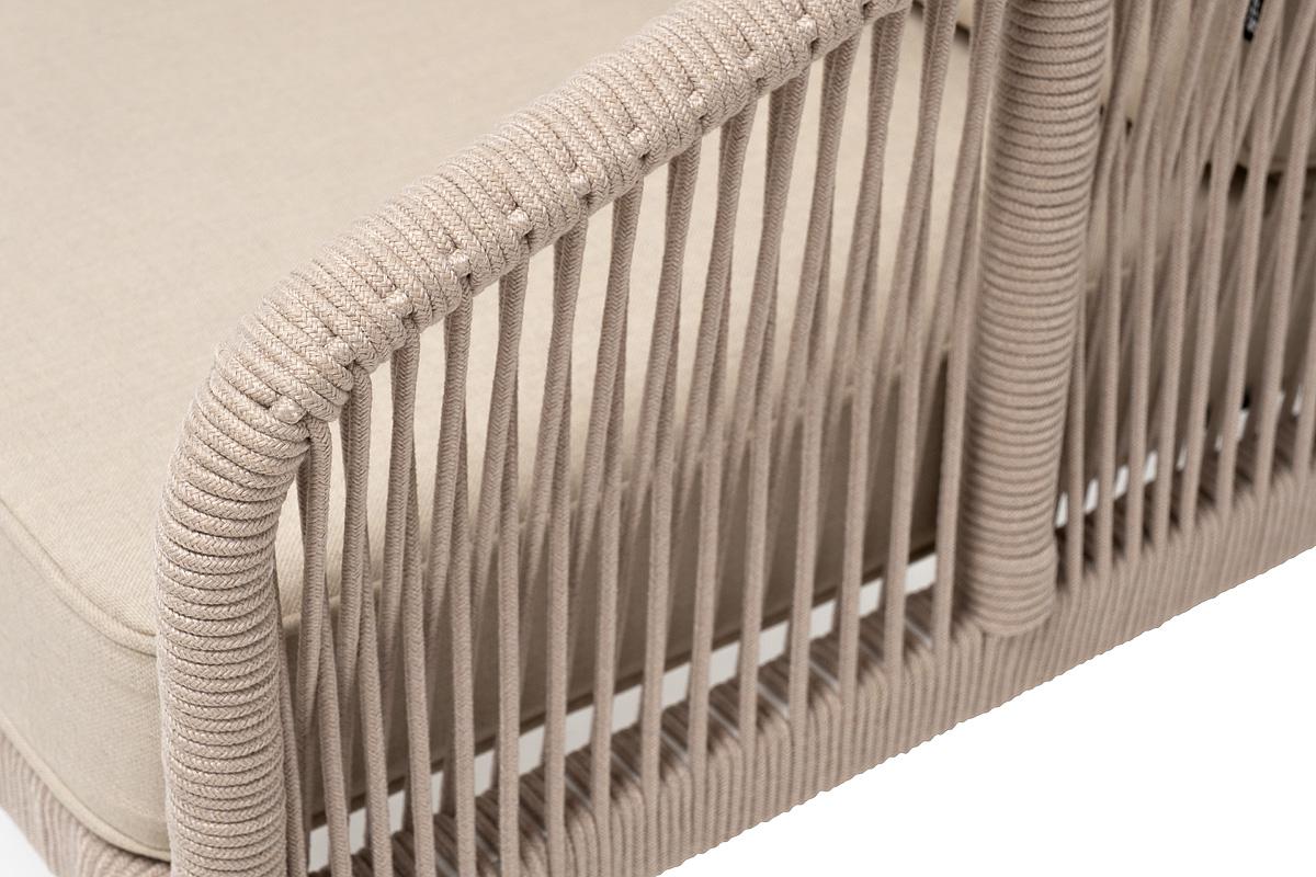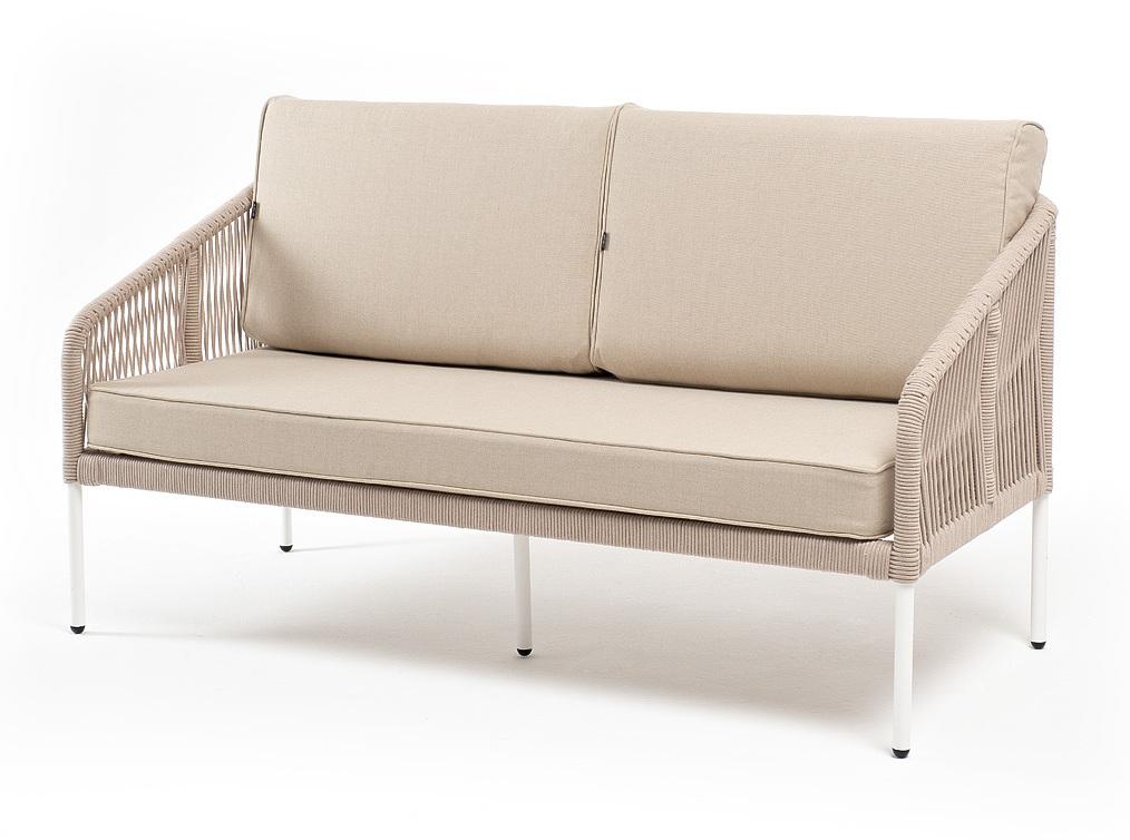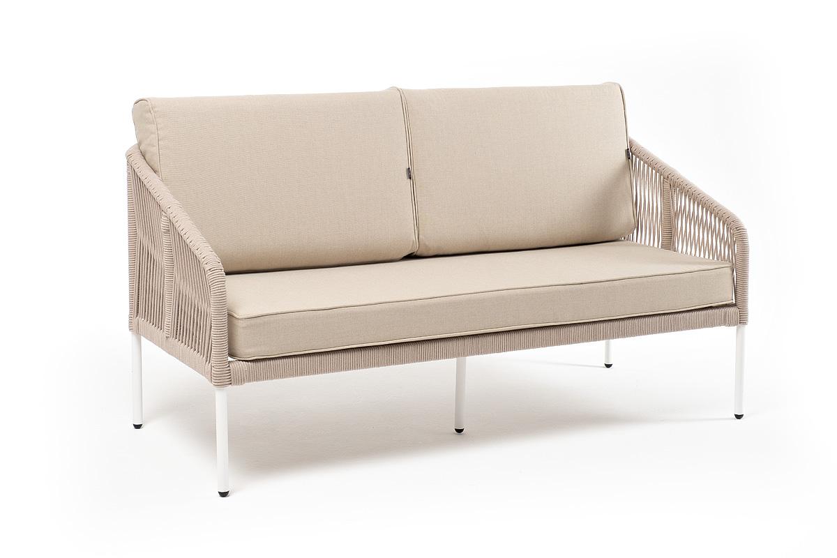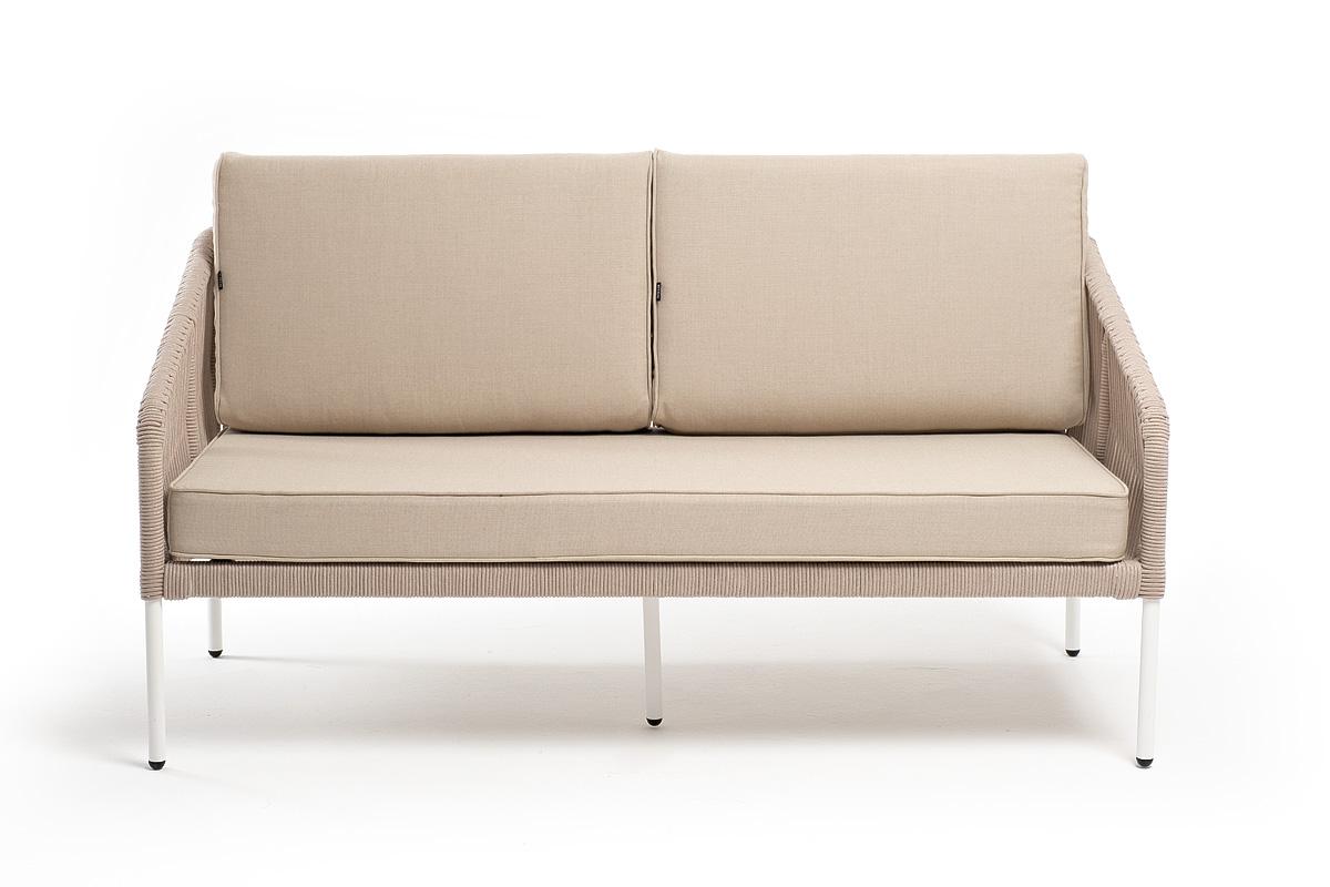 Диван 4SIS "Канны" диван 2-местный плетеный из роупа, каркас алюминий белый муар, роуп бежевый круглый, ткань бежевая 15052 арт. KAN-S-2-001 W Mua beige(beige15052)