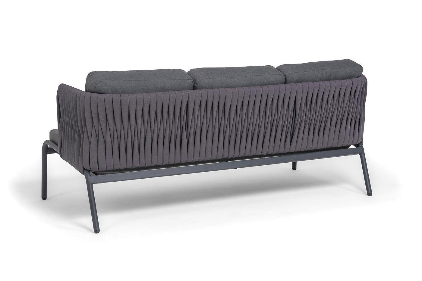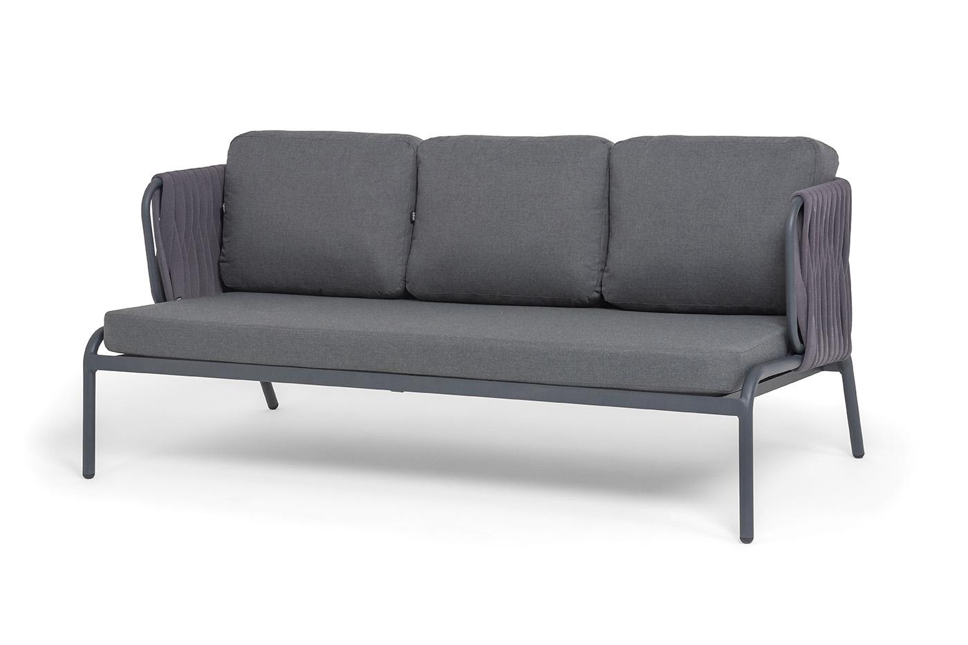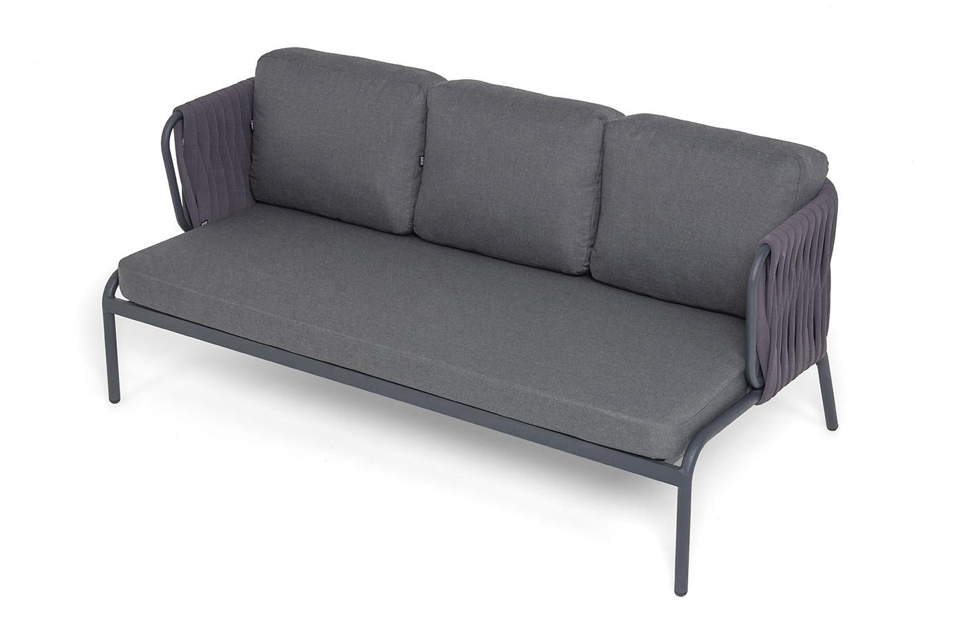 Диван 4SIS "Ронда" диван 3-местный плетеный из роупа, каркас алюминий темно-серый (RAL7024) муар, роуп серый 40 мм tex, ткань темно-серая 027 арт. RON-S-3-001 RAL7024 MuaT-grey(D-gray027)