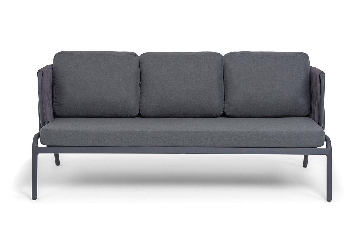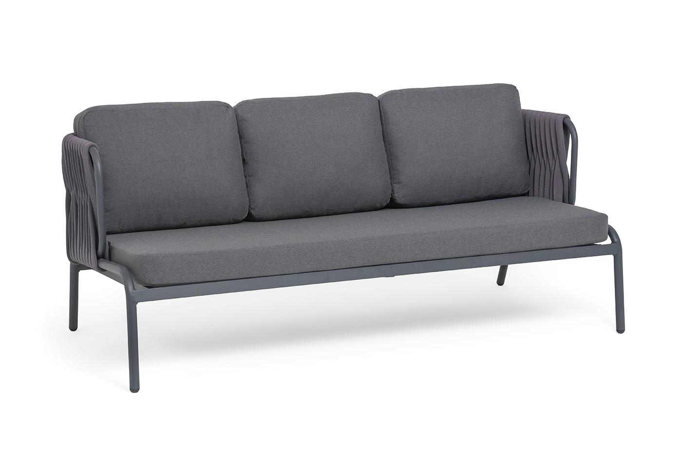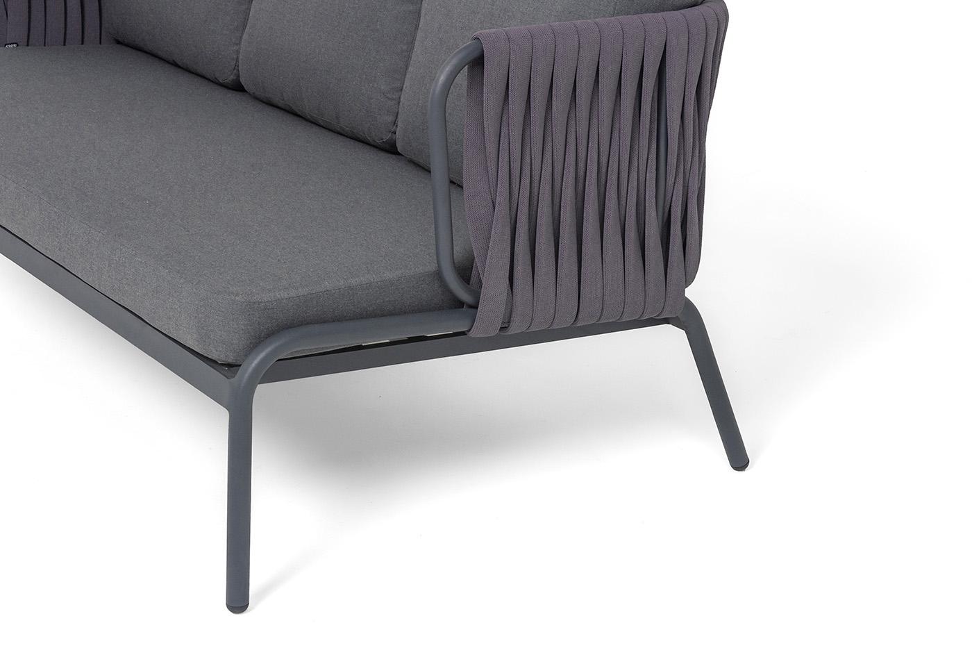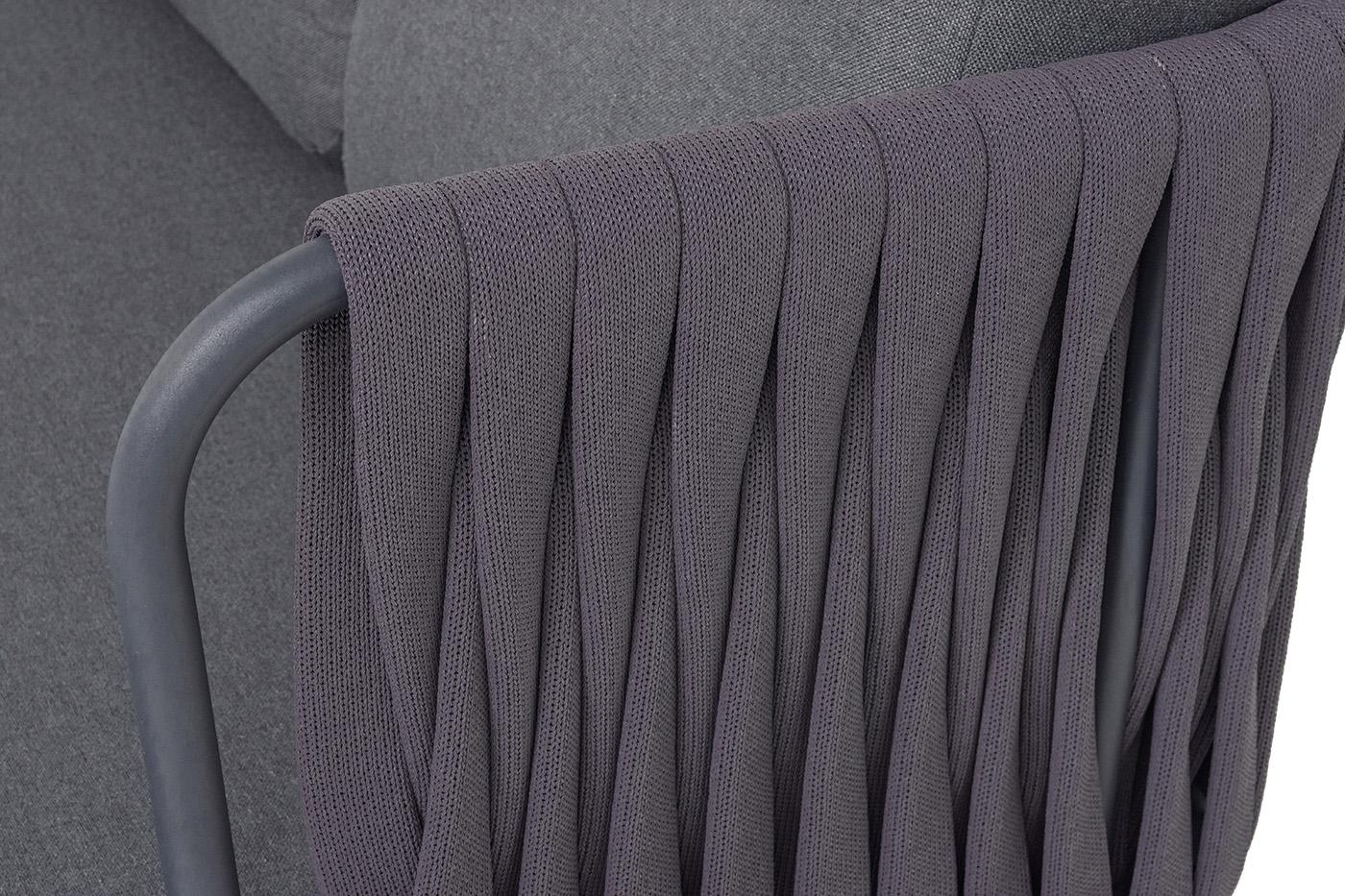 Диван 4SIS "Ронда" диван 3-местный плетеный из роупа, каркас алюминий темно-серый (RAL7024) муар, роуп серый 40 мм tex, ткань темно-серая 027 арт. RON-S-3-001 RAL7024 MuaT-grey(D-gray027)