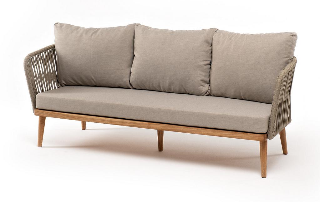 Диван 4SIS "Мальорка" диван 3-местный плетеный из роупа, основание дуб, роуп серо-коричневый 23мм, ткань бежевая 15052 арт. MAL-S-3-T002 G-brown(beige15052)