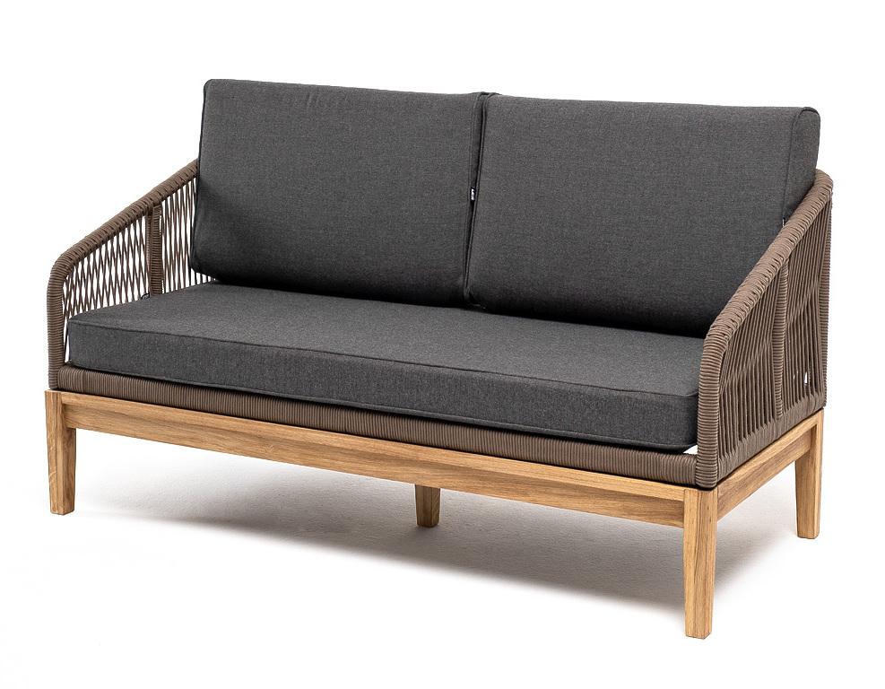 Диван 4SIS "Канны" диван 2-местный плетеный из роупа, основание дуб, роуп коричневый круглый, ткань темно-серая 027 арт. KAN-S-2-T001 brown(D-gray027)
