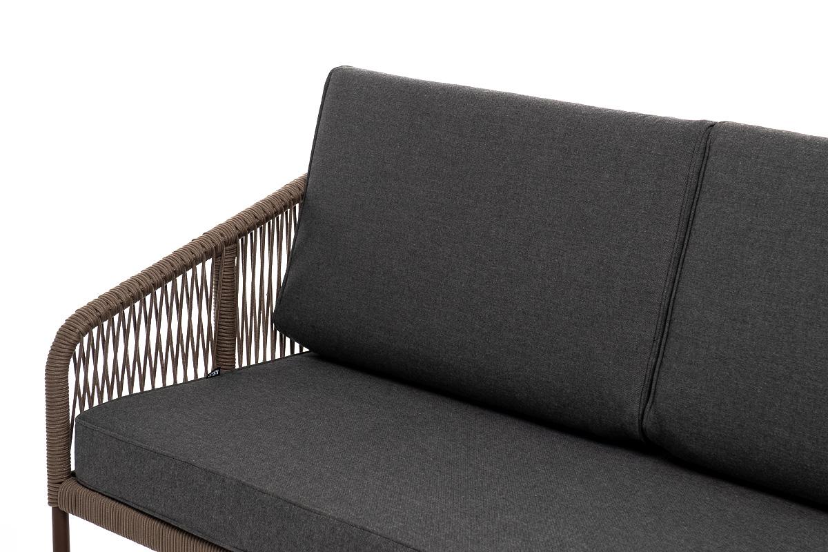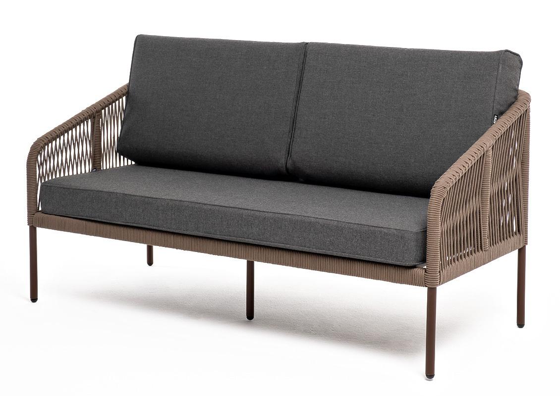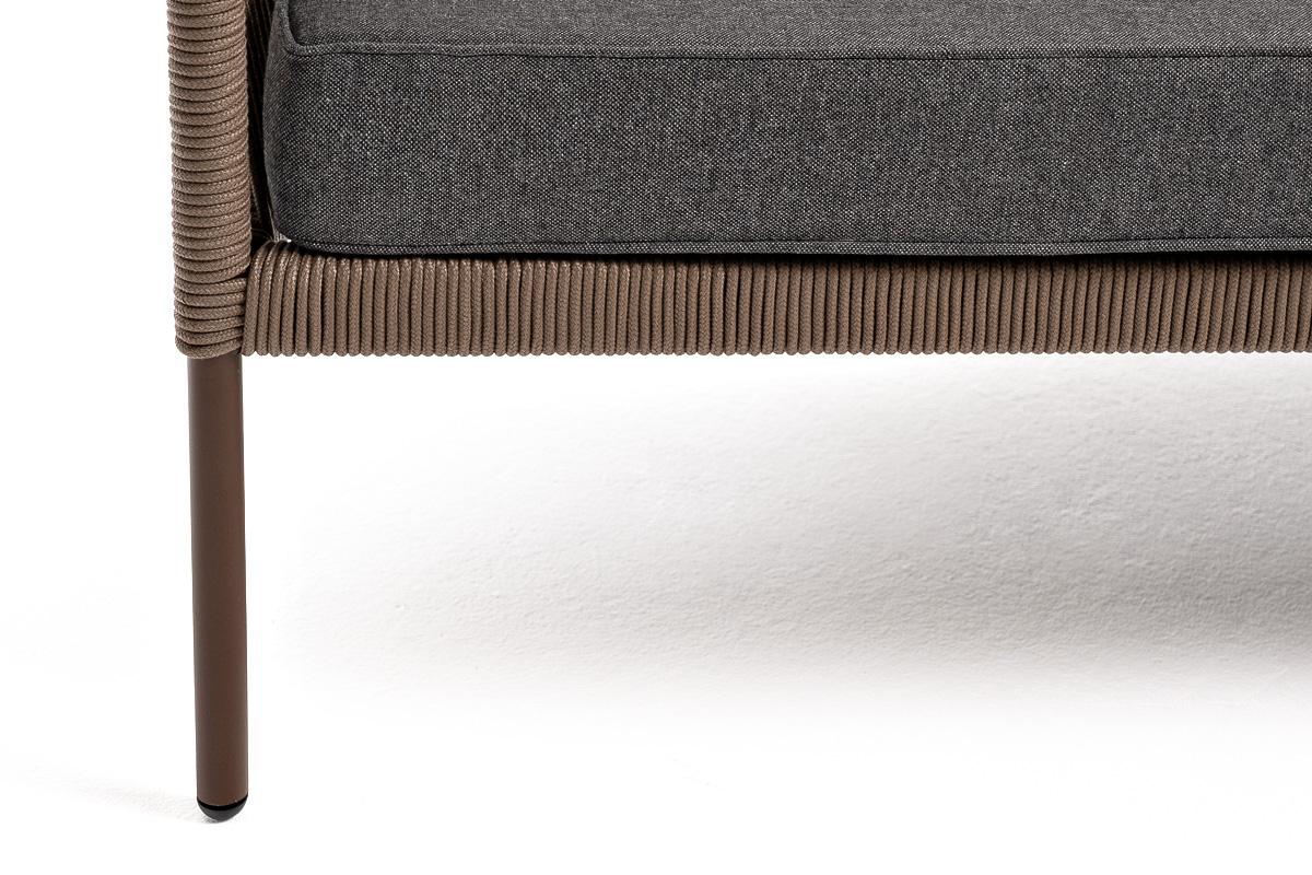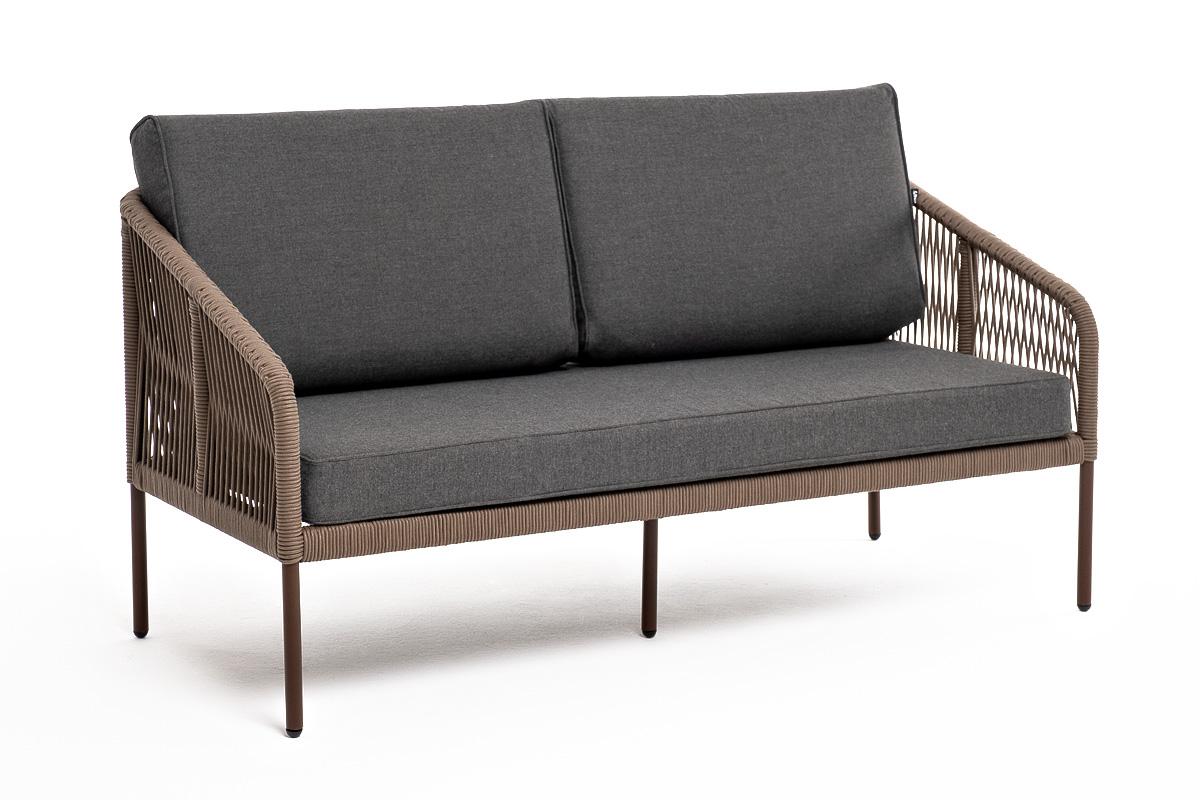 Диван 4SIS "Канны" диван 2-местный плетеный из роупа, каркас алюминий коричневый (RAL8016) муар, роуп коричневый круглый, ткань темно-серая 027 арт. KAN-S-2-001 RAL8016 Mua brown(D-gray027)
