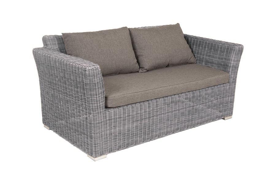 Диван «Капучино» двухместный с каркасом из прочного алюминия. Размер модели – 1700×865×815 мм. Диван выполнен из круглого искусственного ротанга графитового цвета, оплетенного вручную. Двухместный диван дополнен несколькими подушками со съёмными чехлами серого цвета. Они изготовлены из прочного полиэстера, плотность которого достигает 300гр/м2. Предусмотрена влагоотталкивающая пропитка ткани для защиты текстильных изделий от намокания. Параметры дивана без подушек: Глубина сидения – 6