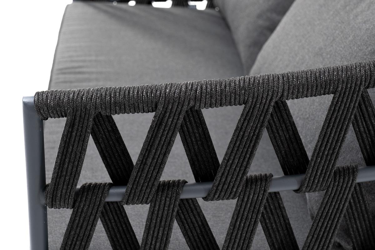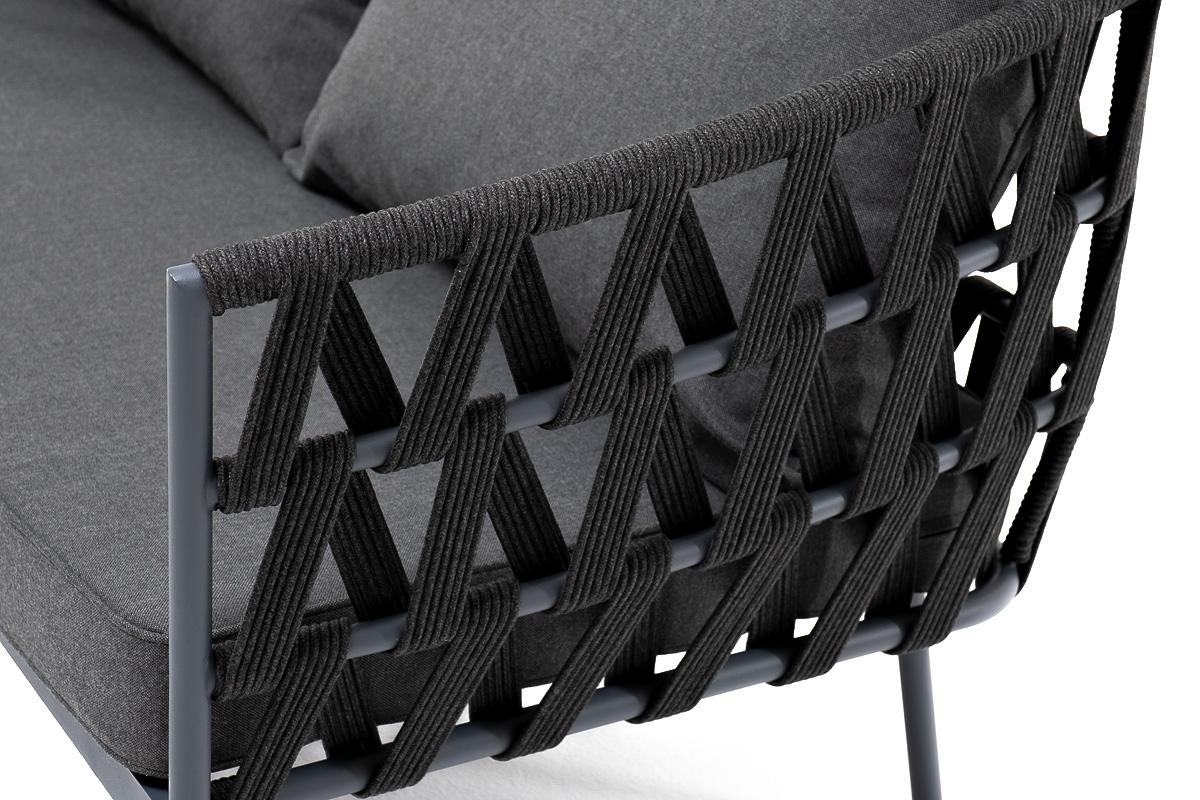 Диван 4SIS "Диего" диван 2-местный плетеный из роупа, каркас алюминий темно-серый (RAL7024) муар, роуп темно-серый круглый, ткань темно-серая 027 арт. DIE-S-2-001 RAL7024 Mua D-grey(D-gray027) OLD