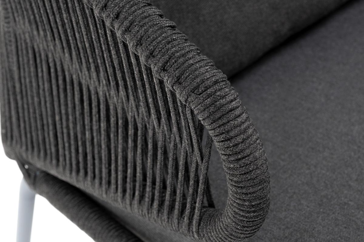 Диван 4SIS "Милан" диван 3-местный плетеный из роупа, каркас алюминий темно-серый (RAL7024) муар, роуп темно-серый круглый, ткань темно-серая 027 арт. MIL-S-3-001 RAL7024 Mua D-grey(D-gray027)