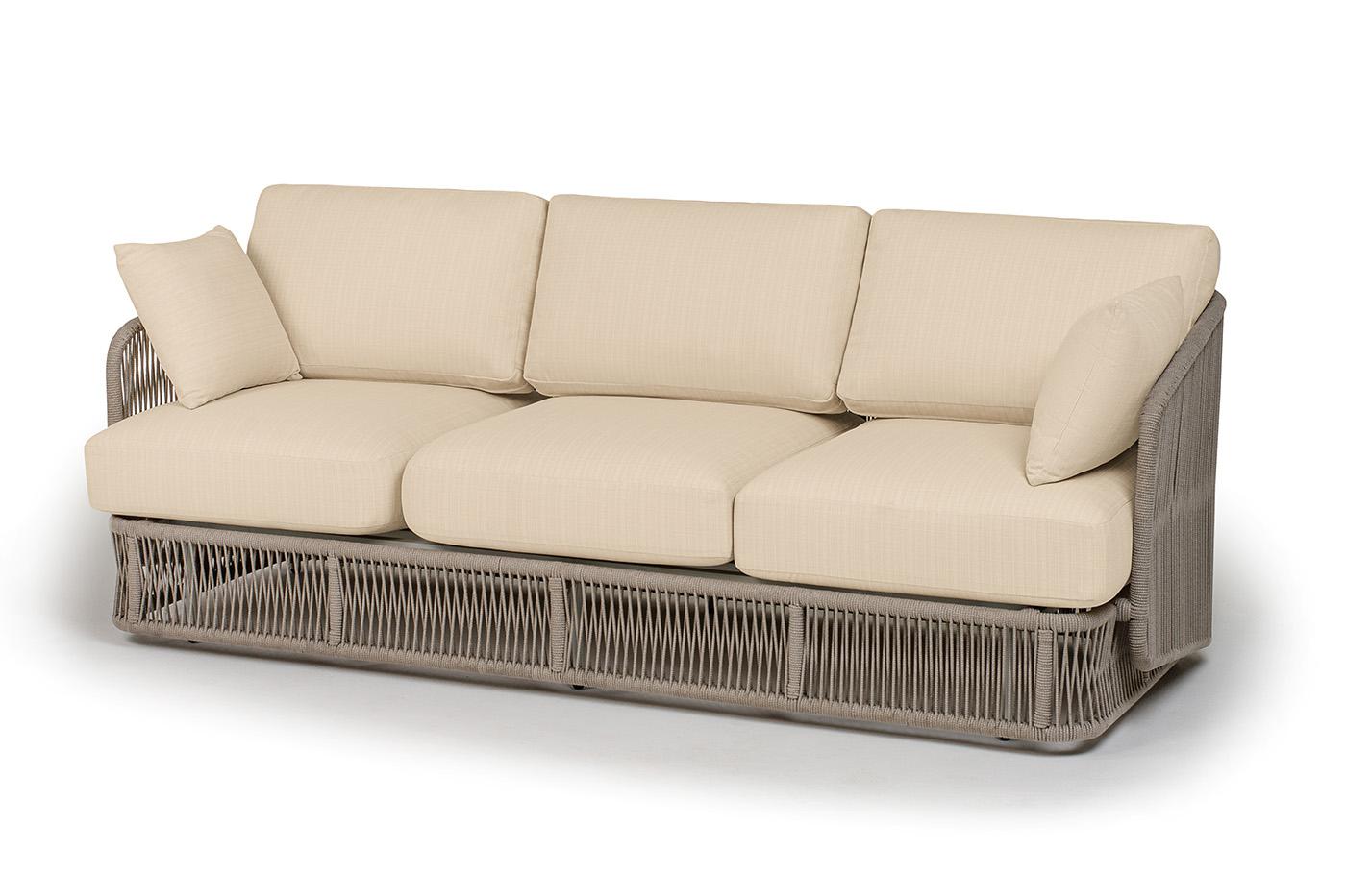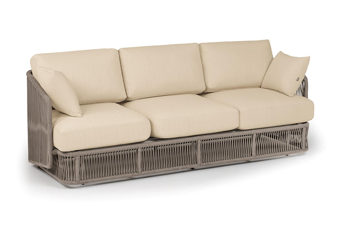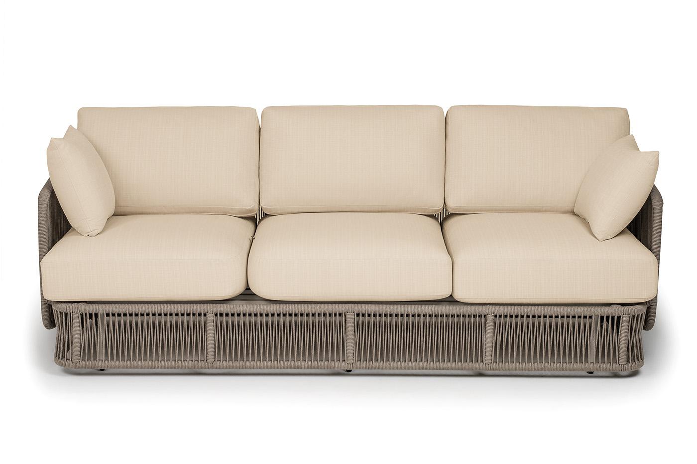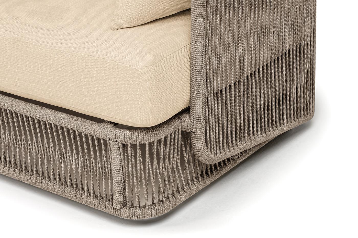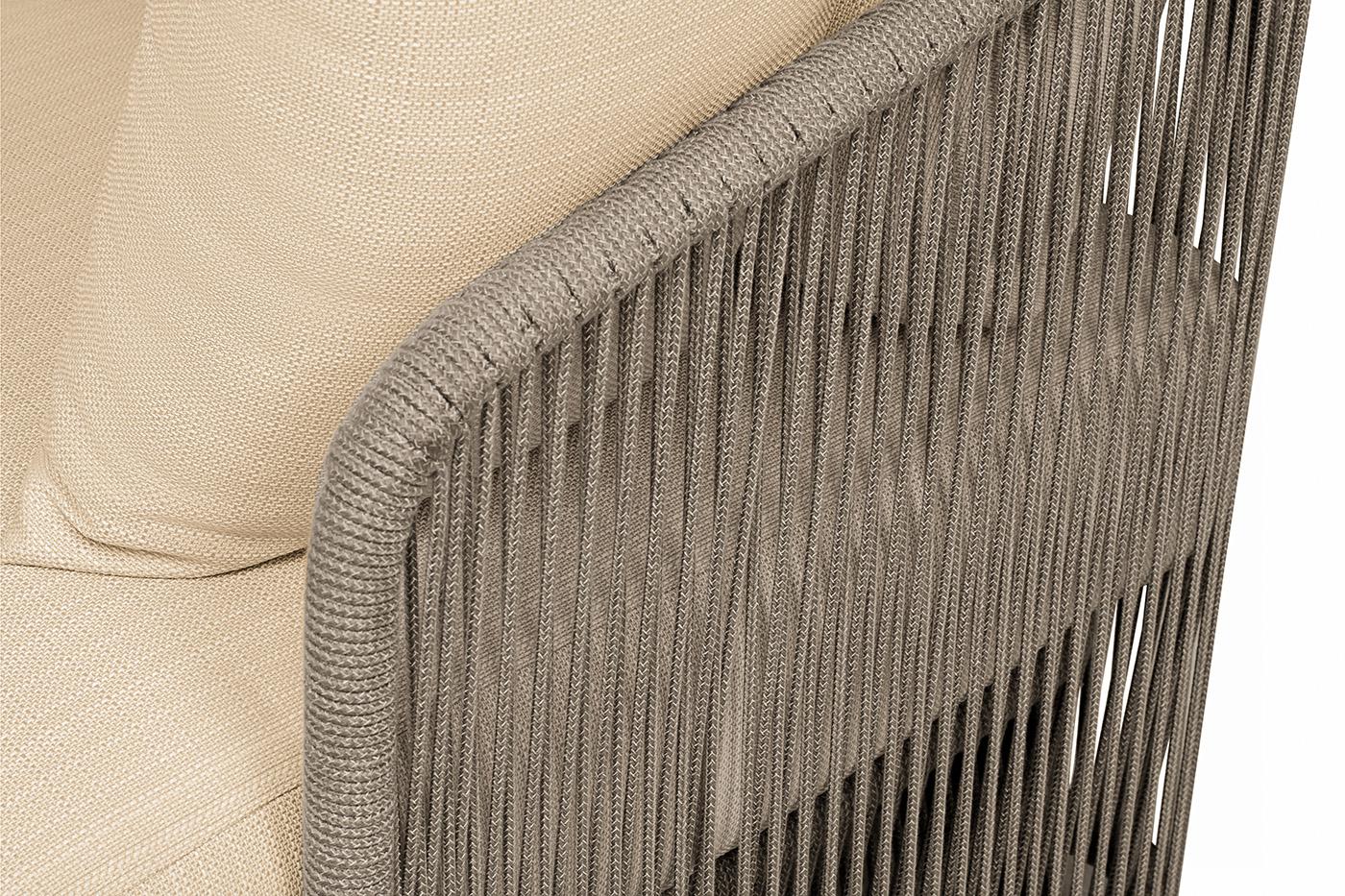 Диван 4SIS "Альбано" диван 3-местный плетеный из роупа, каркас алюминий светло-серый (RAL7035) муар, роуп серый меланж круглый, ткань Mossle светло-бежевая арт. ALB-S-3-001 RAL7035 Mua mel-grey(beige100)