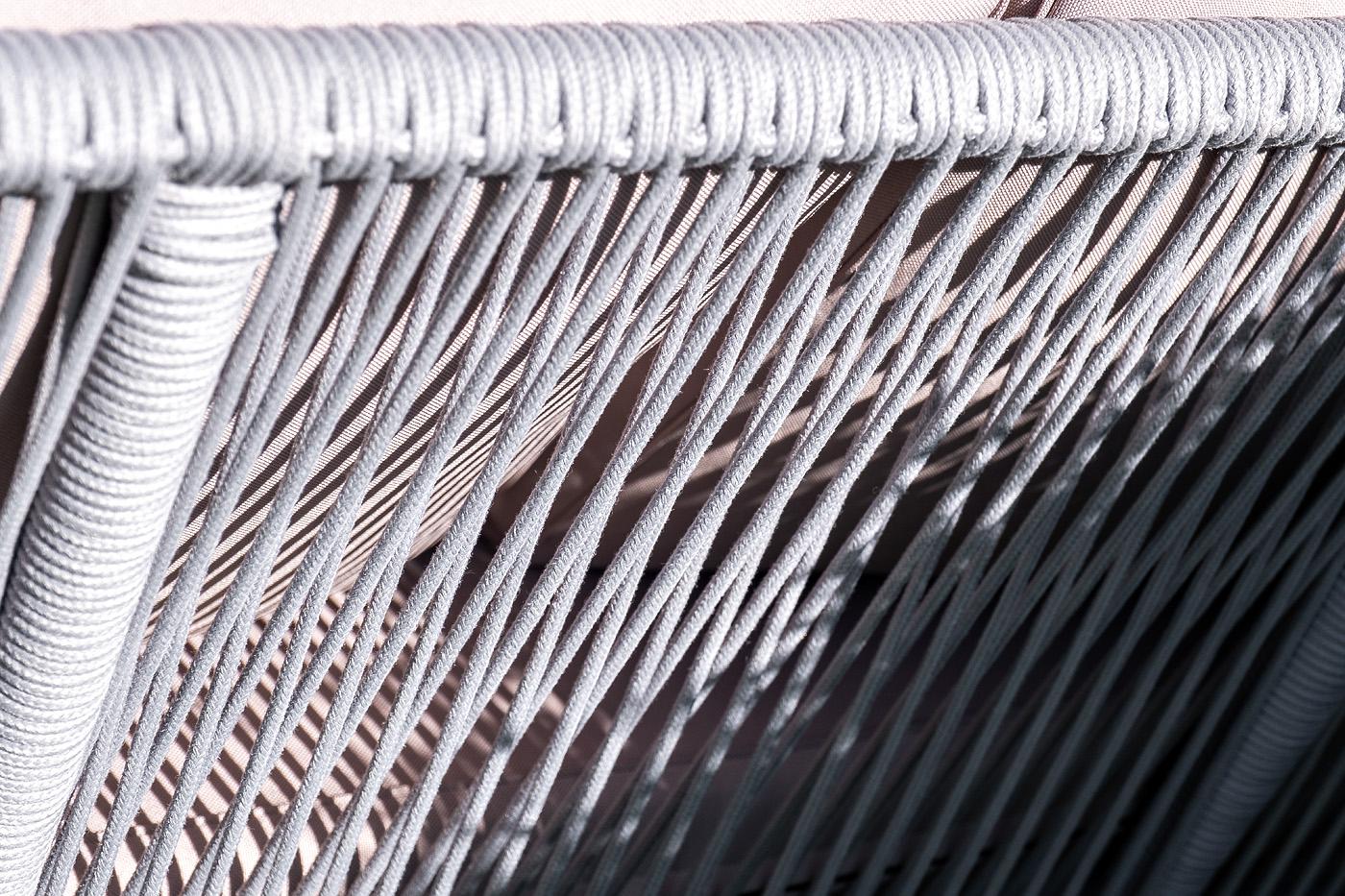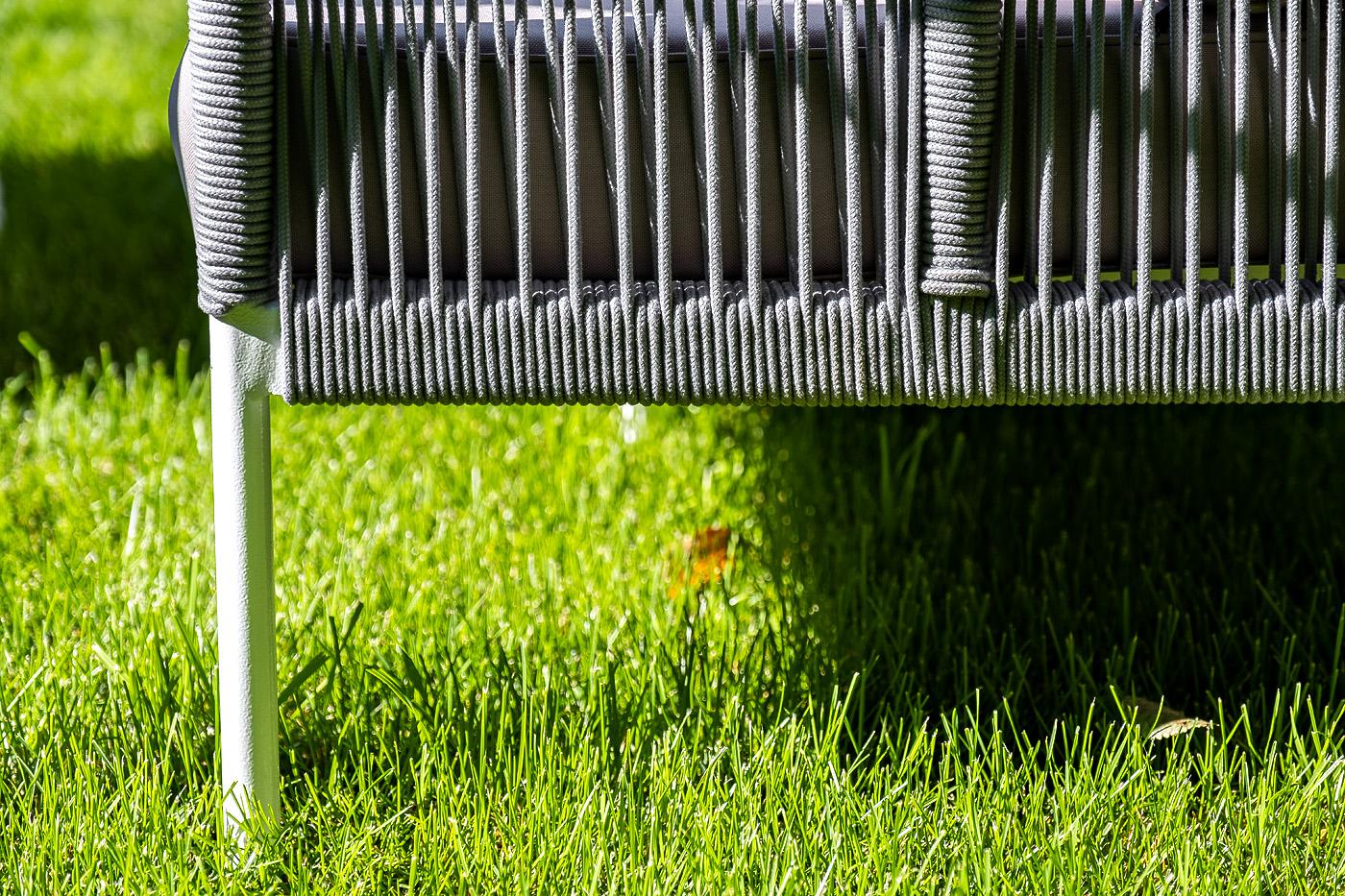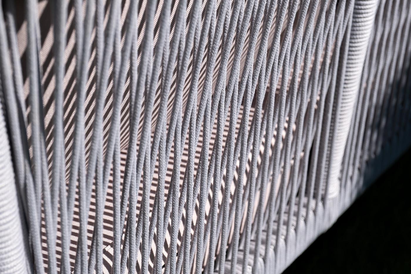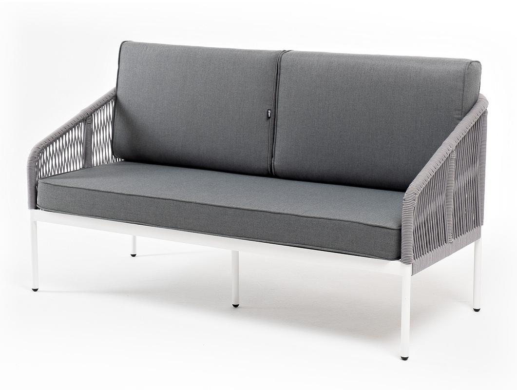 Диван 4SIS "Канны" диван 2-местный плетеный из роупа, каркас алюминий белый муар, роуп светло-серый круглый, ткань серая 017 арт. KAN-S-2-001 W Mua H-grey(gray17)