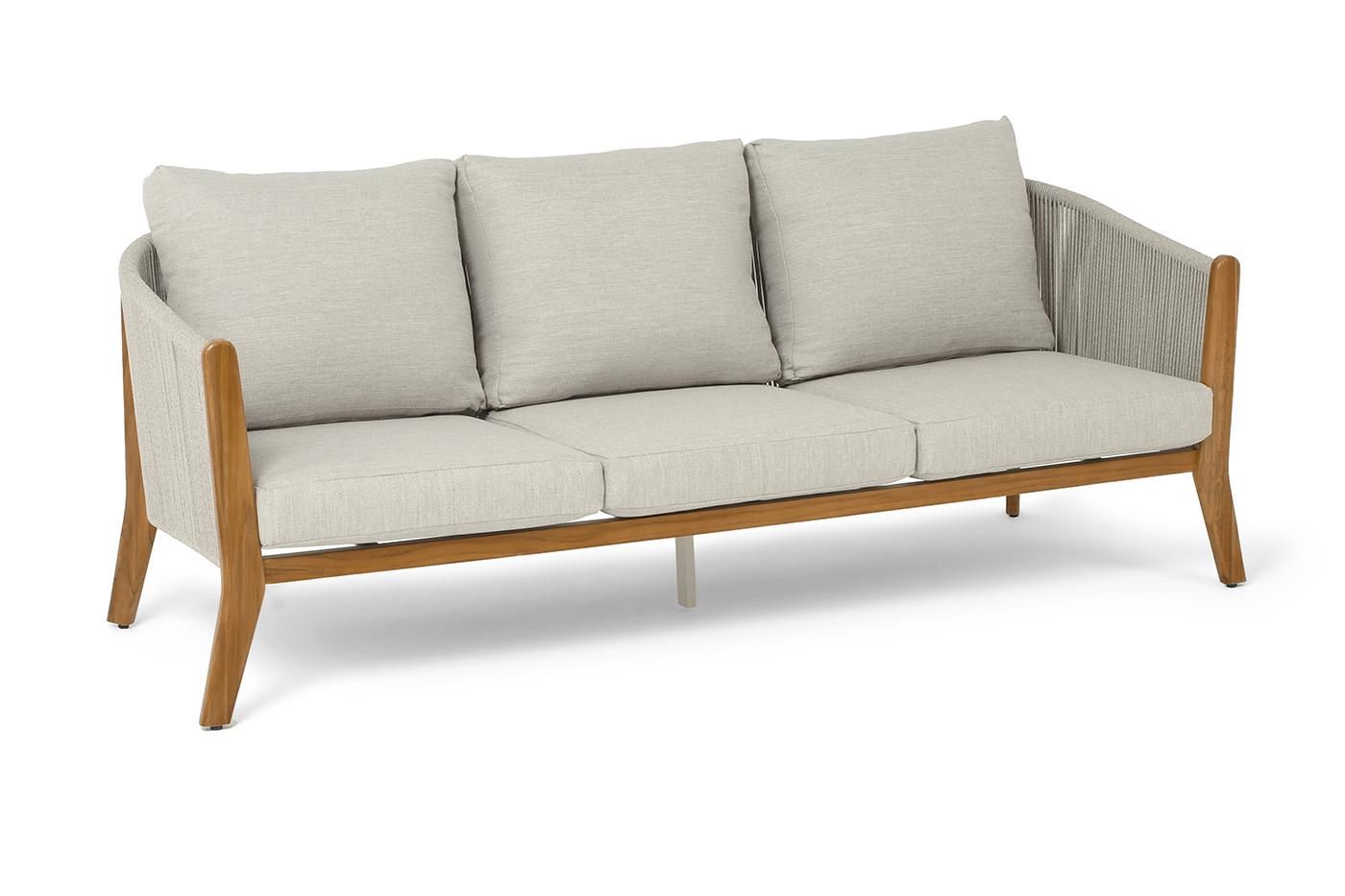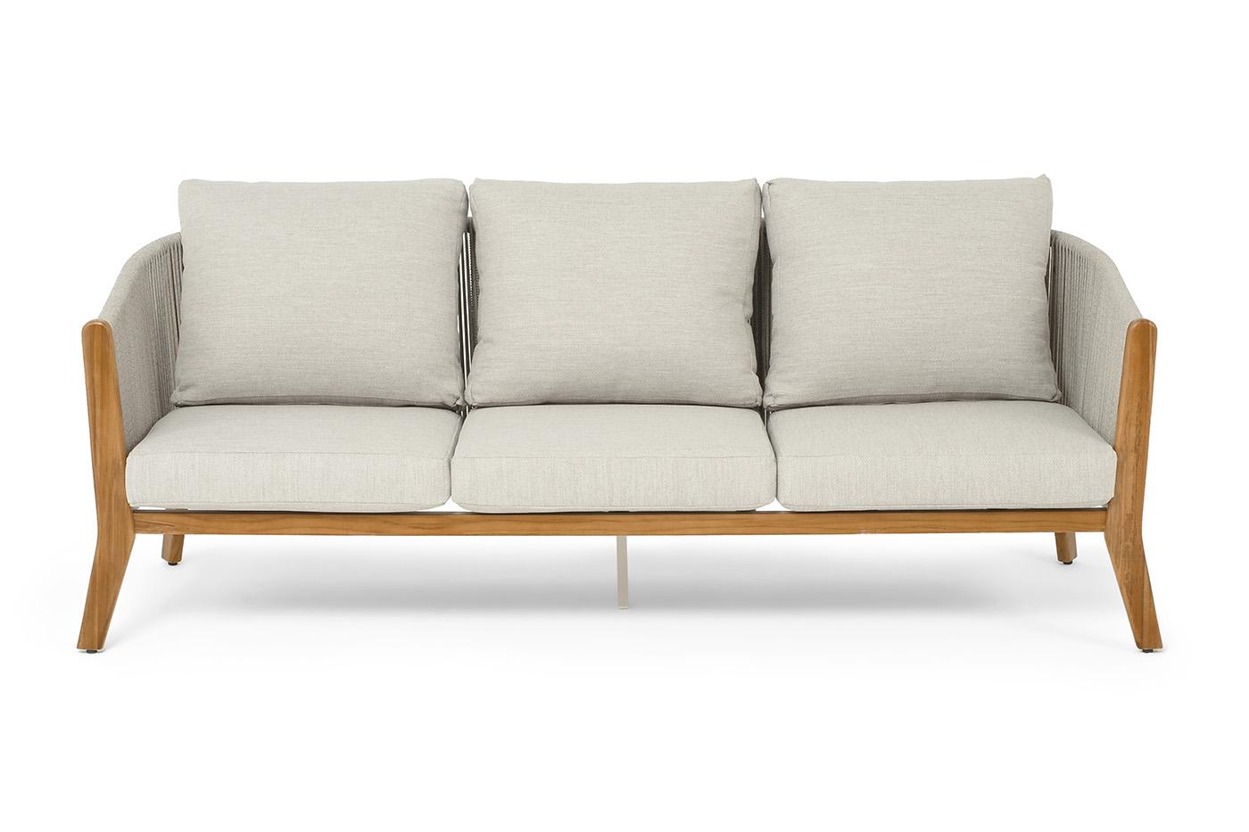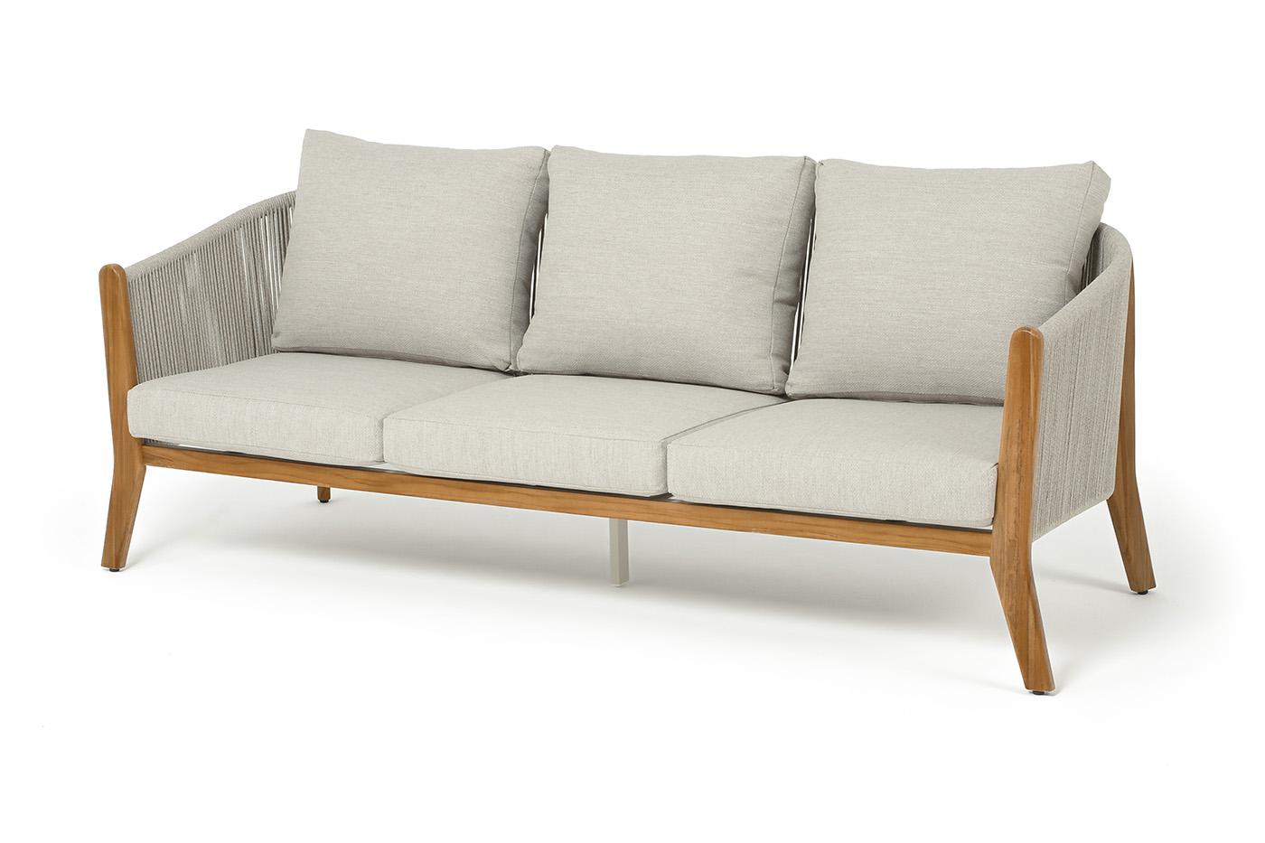 Диван 4SIS "Сидней" диван 3-местный плетеный из роупа, основание тик, каркас алюминий бежевый, роуп бежевый, ткань бежевая арт. RY24039B-3S