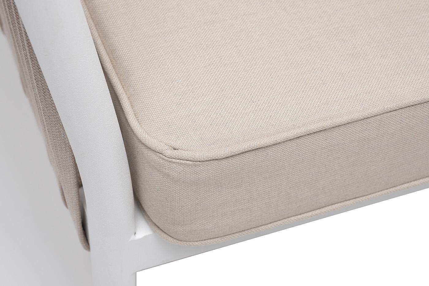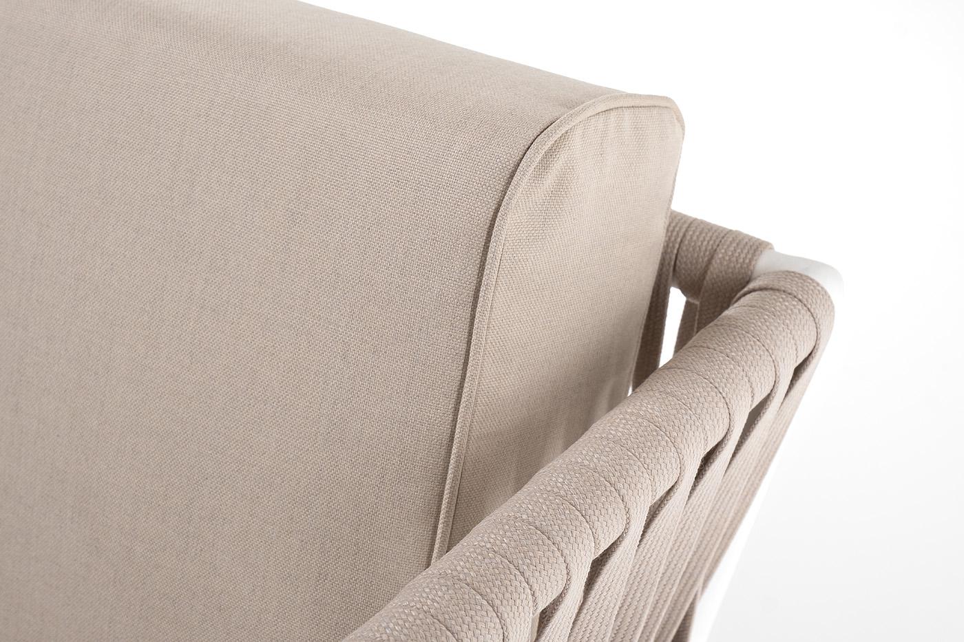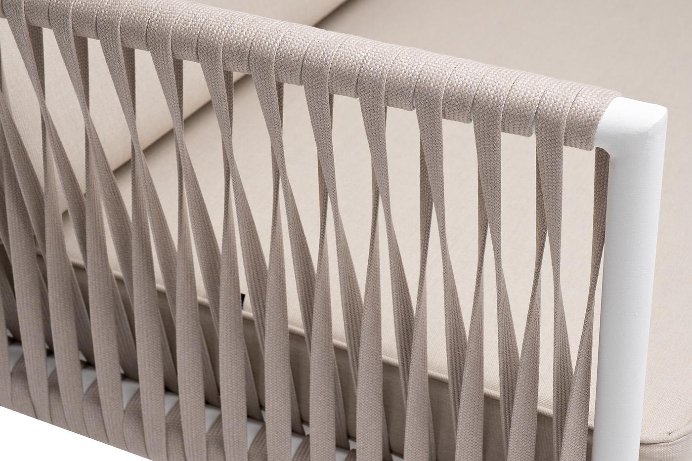 Диван 4SIS "Касабланка" диван 2-местный плетеный из роупа, каркас алюминий белый муар, роуп бежевый 20мм, ткань бежевая 15052 арт. KAS-S-2-001 W Mua beige(beige15052)