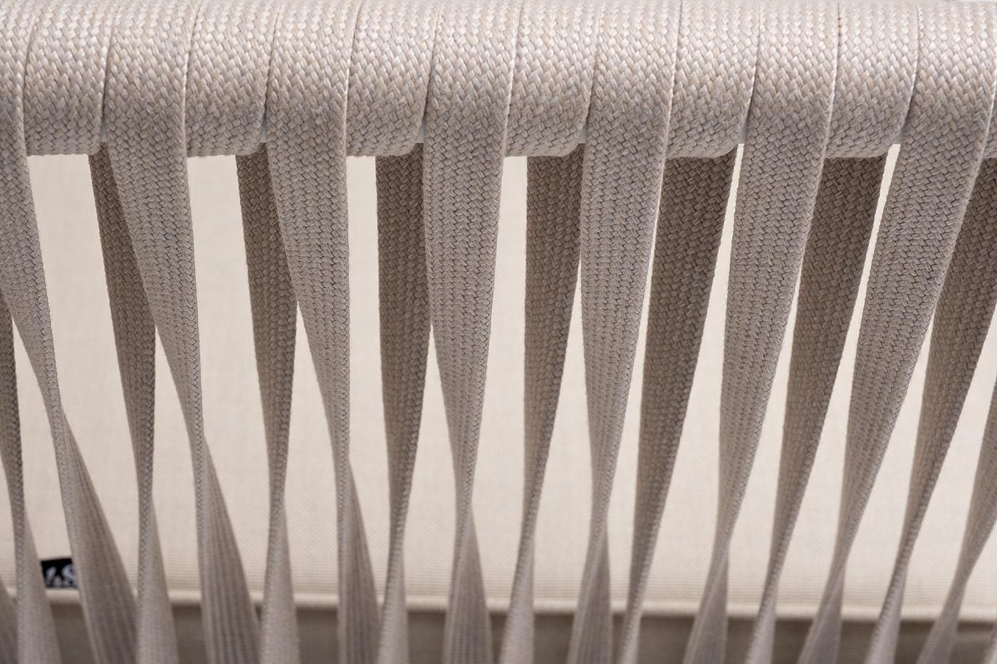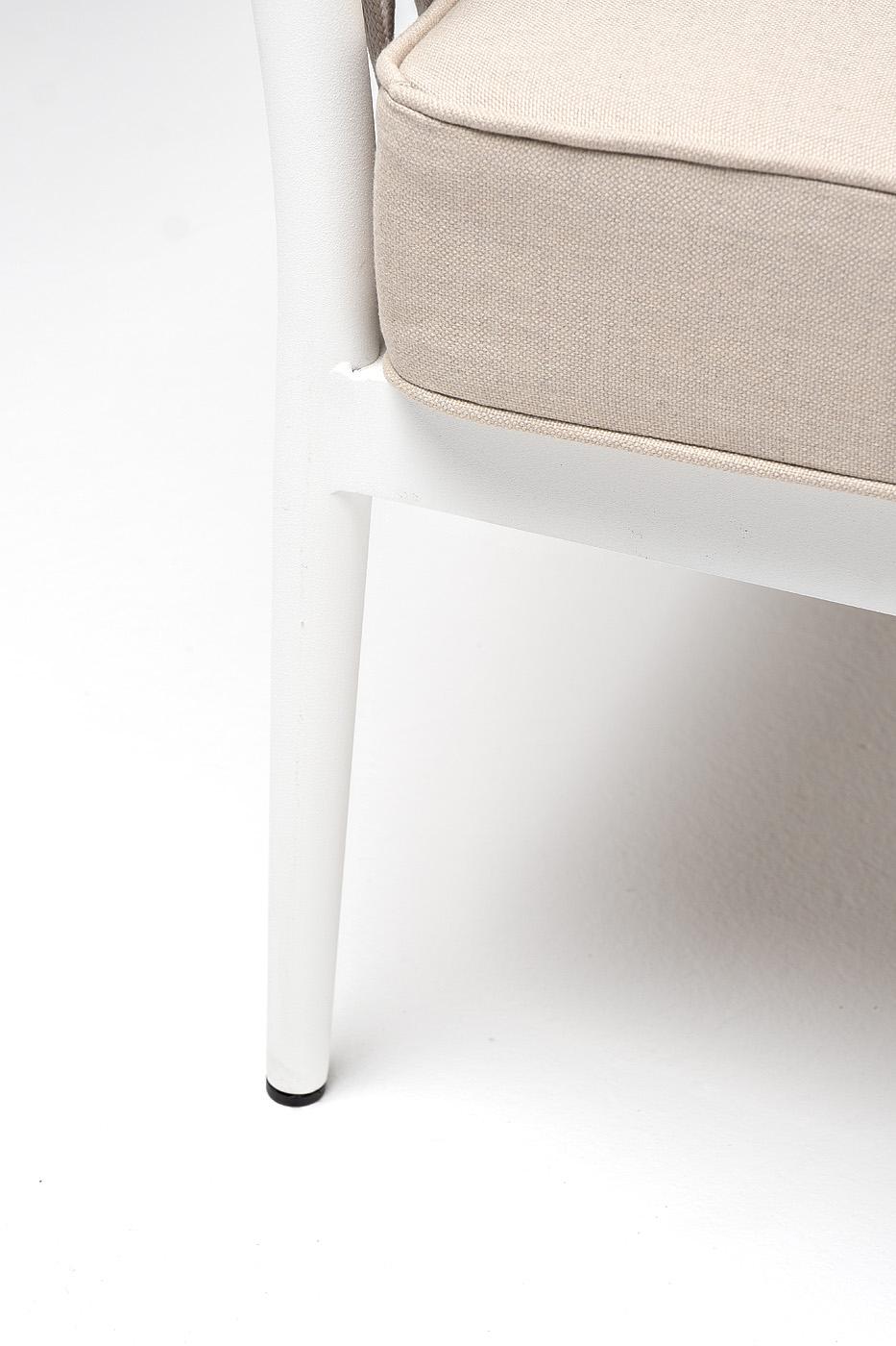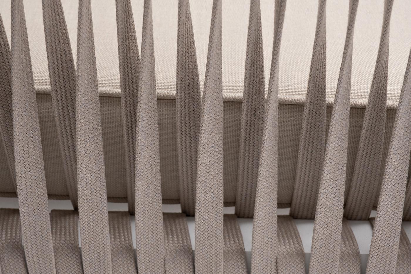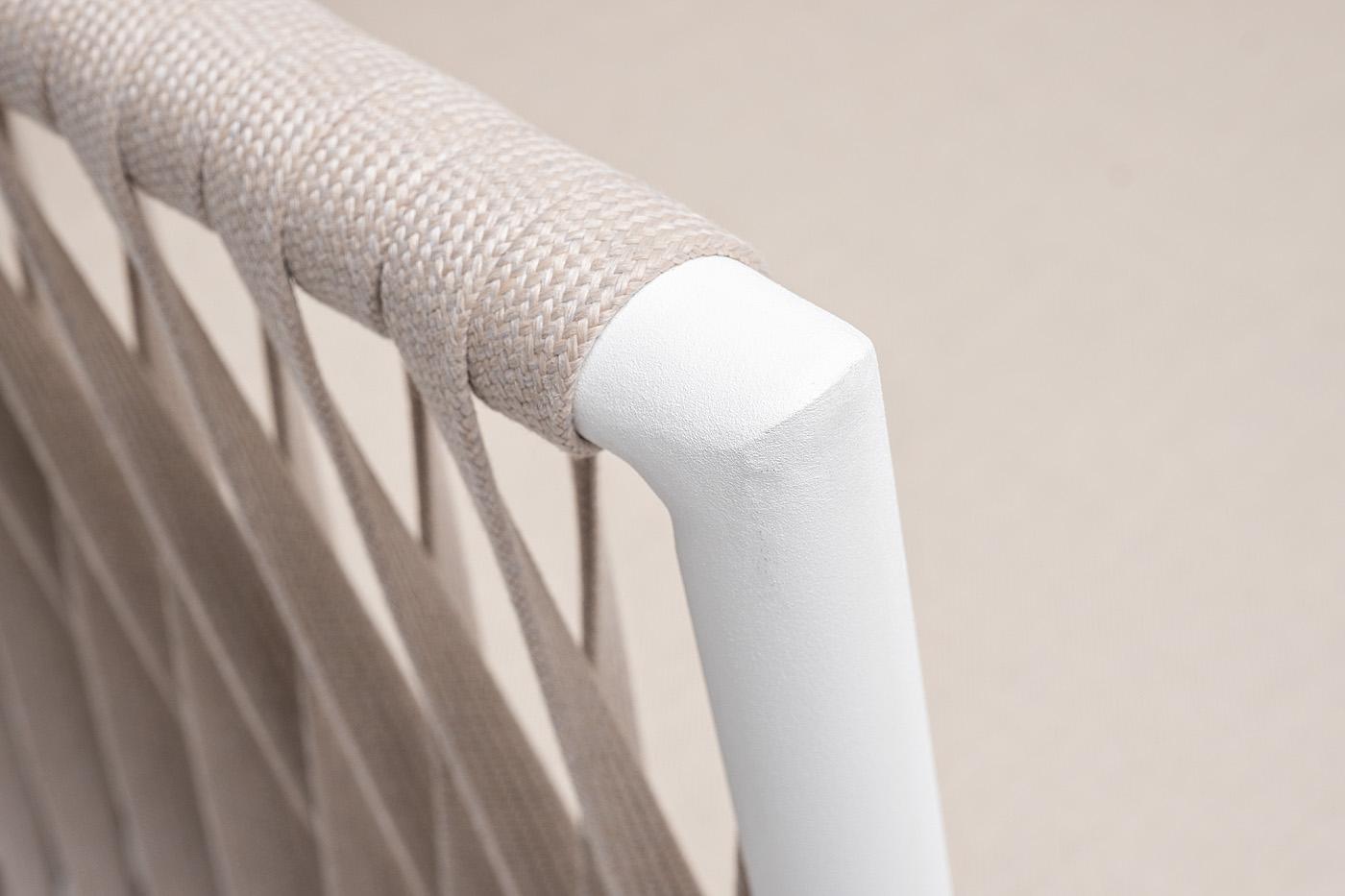 Диван 4SIS "Касабланка" диван 2-местный плетеный из роупа, каркас алюминий белый муар, роуп бежевый 20мм, ткань бежевая 15052 арт. KAS-S-2-001 W Mua beige(beige15052)