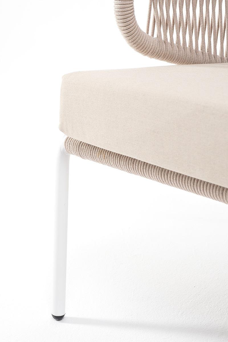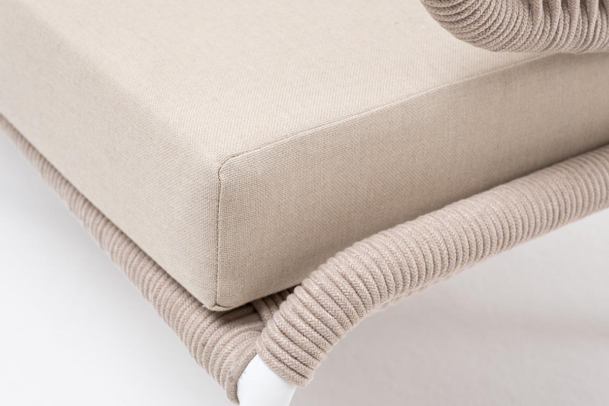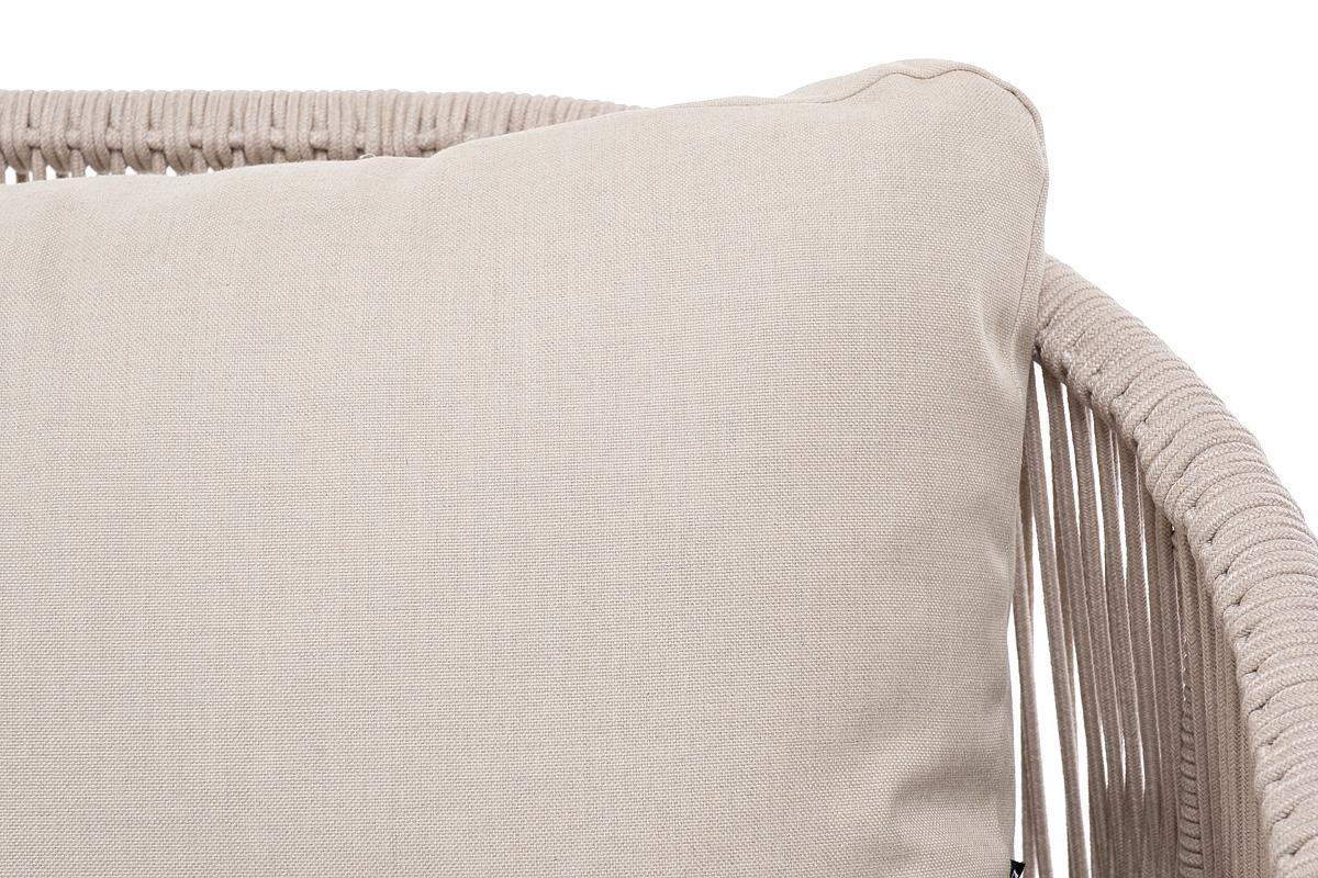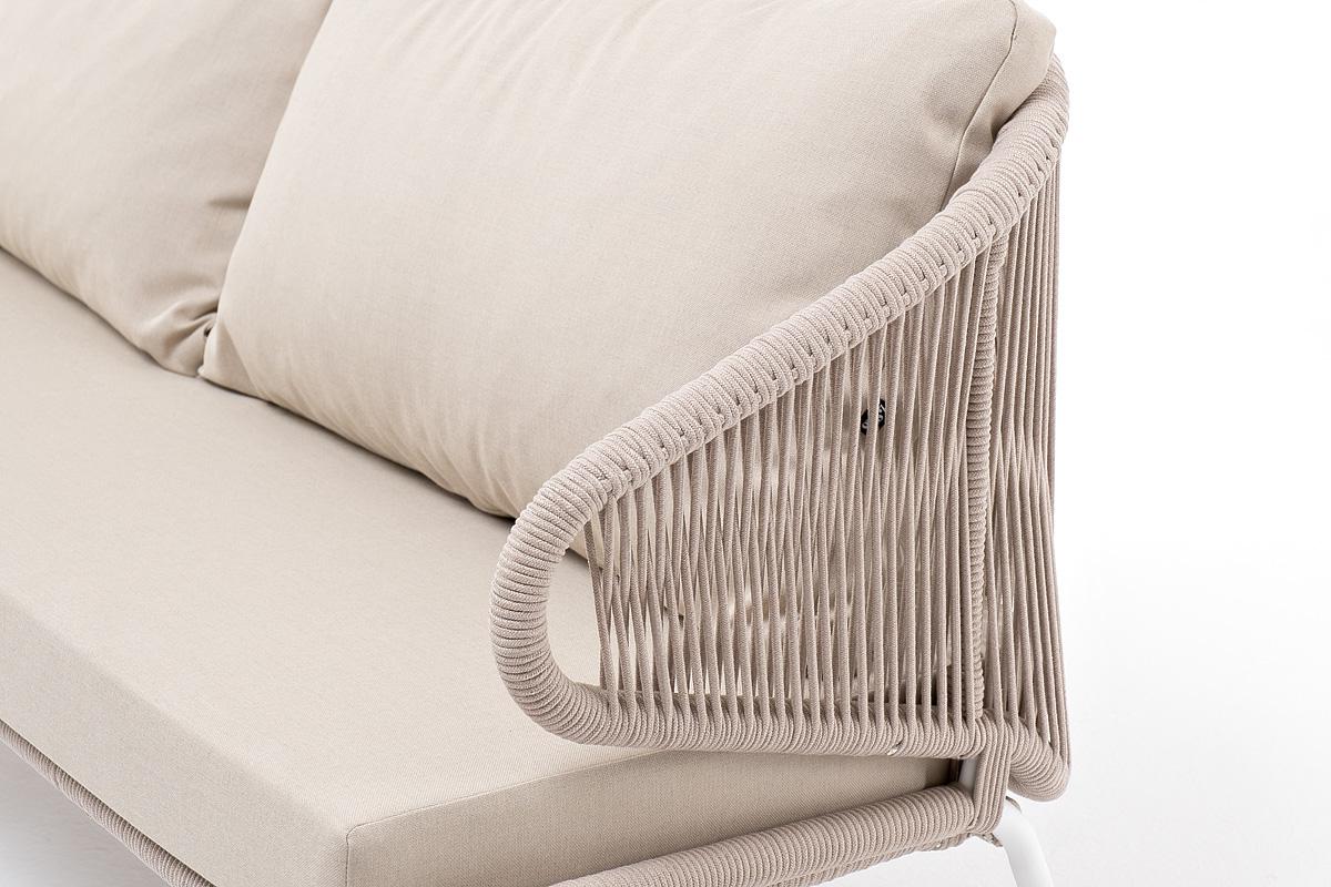Диван 4SIS "Милан" диван 3-местный плетеный из роупа, каркас алюминий белый муар, роуп бежевый круглый, ткань бежевая 052 арт. MIL-S-3-001 W Mua beige(beige052)