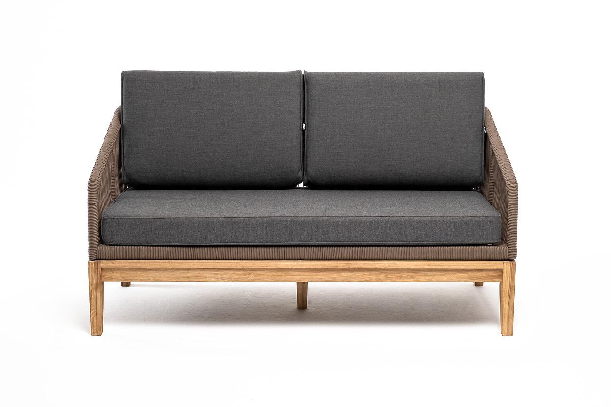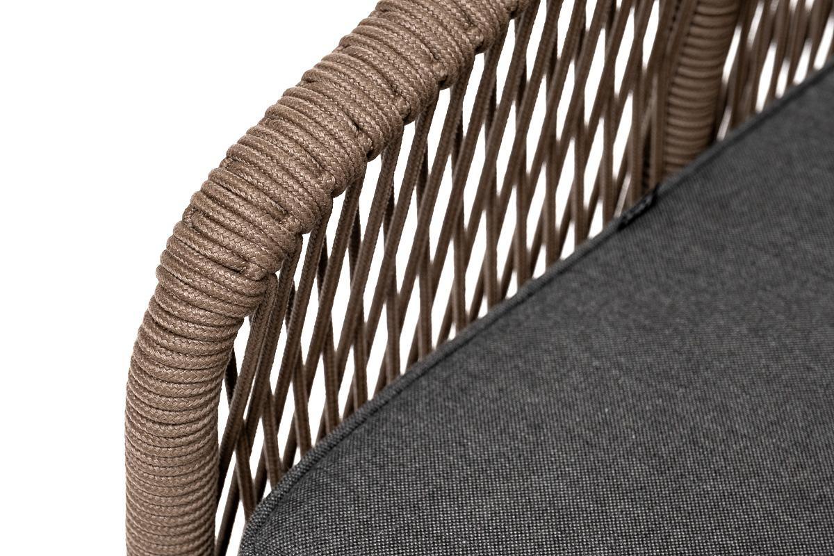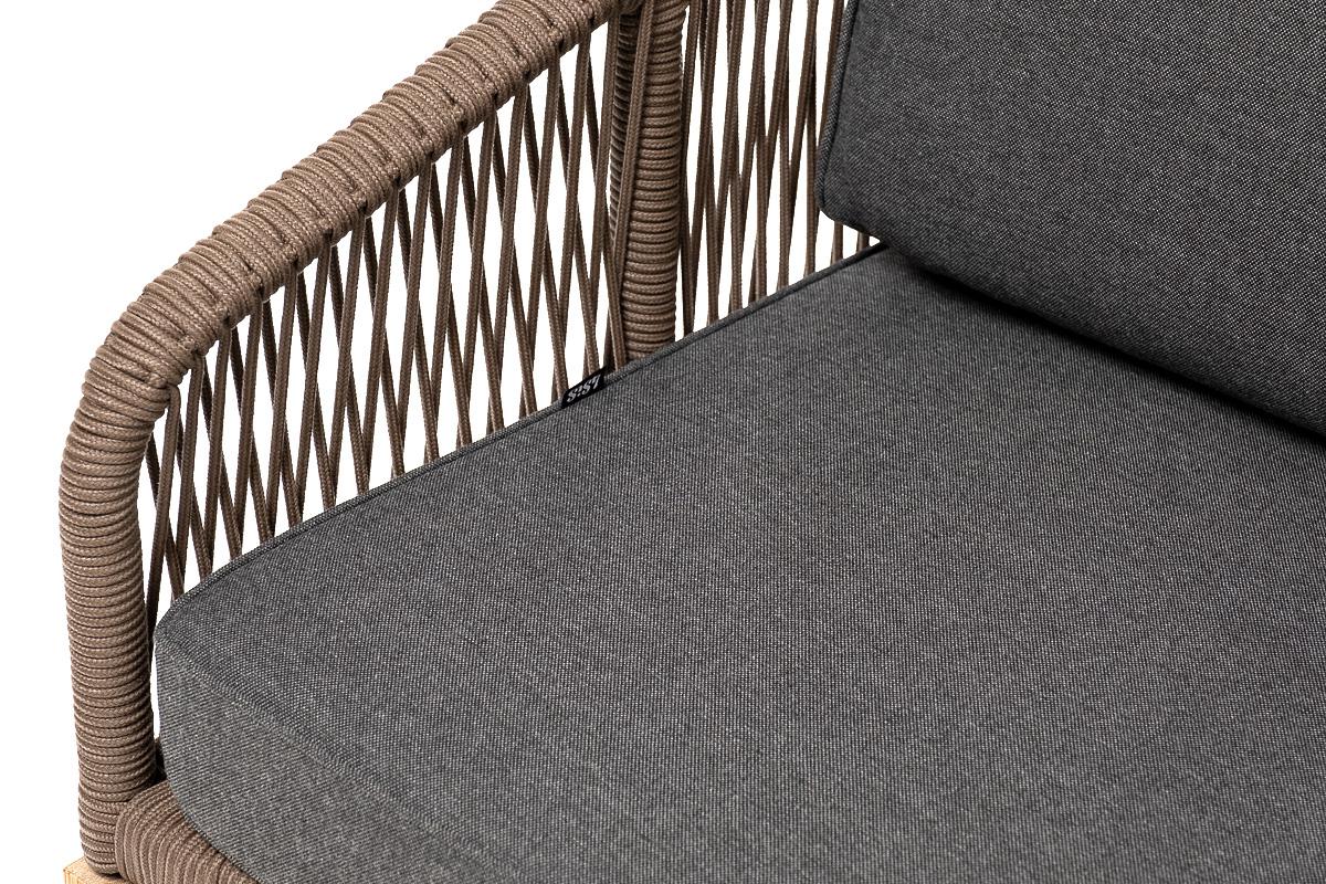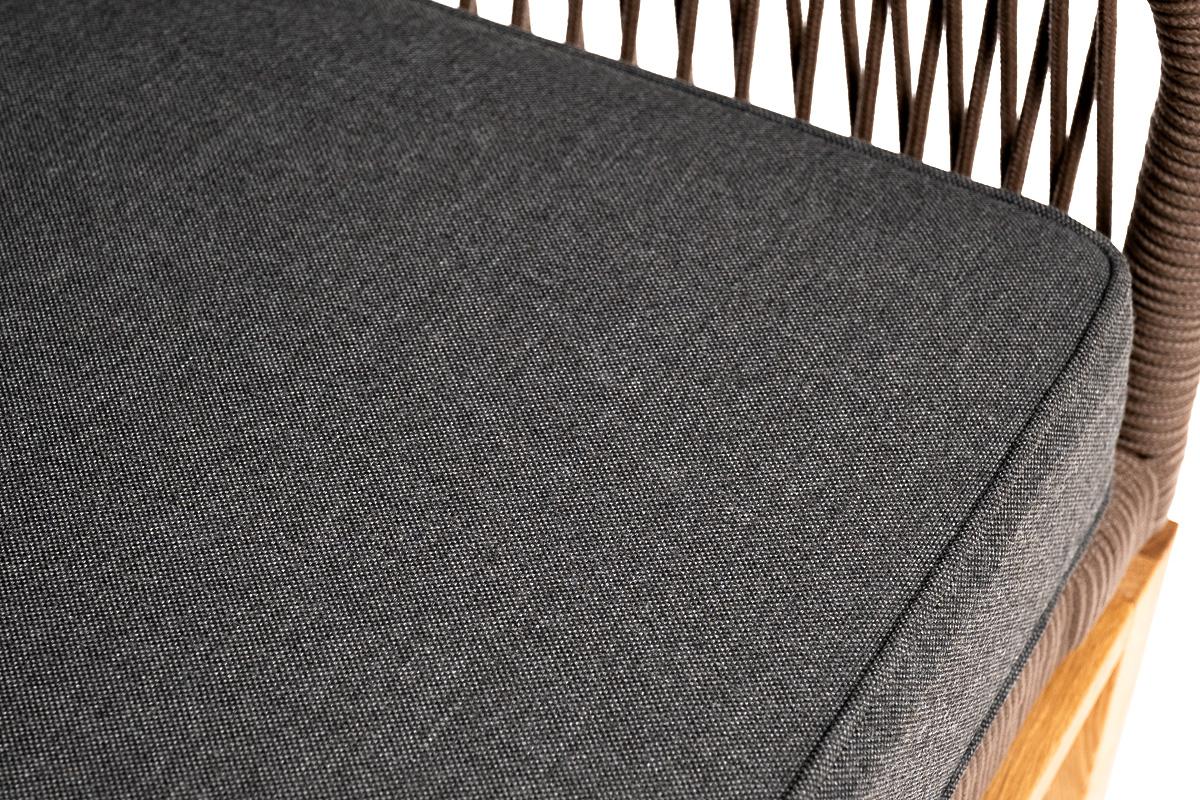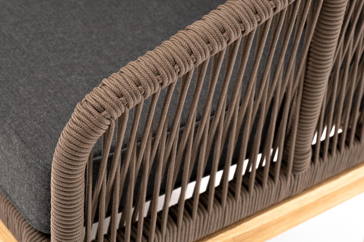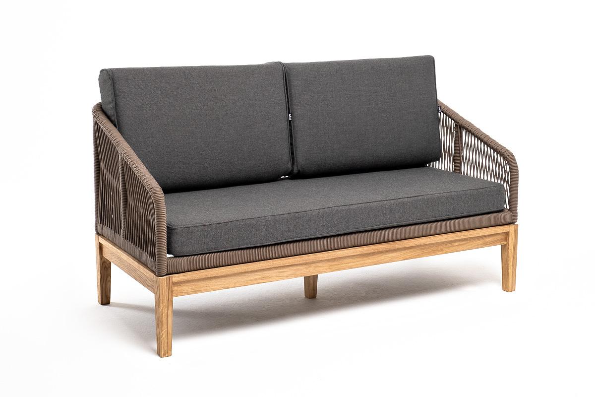 Диван 4SIS "Канны" диван 2-местный плетеный из роупа, основание дуб, роуп коричневый круглый, ткань темно-серая 027 NEW арт. KAN-S-2-T002 brown(D-gray027)