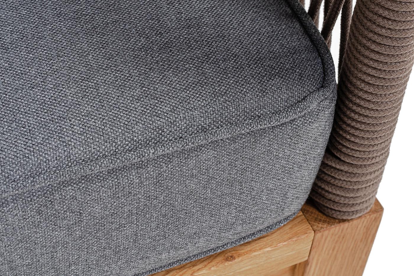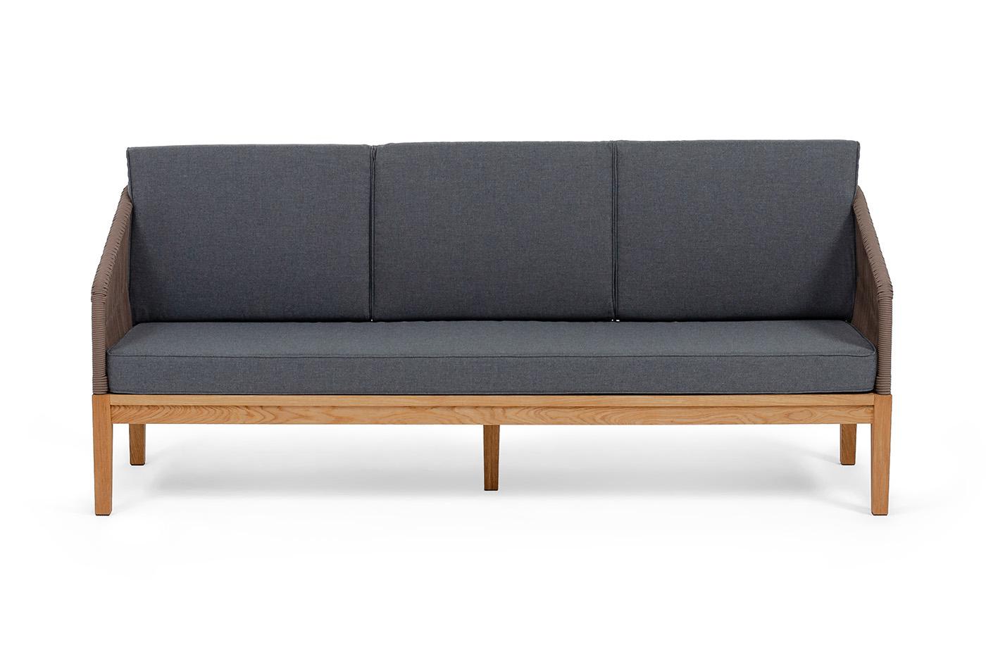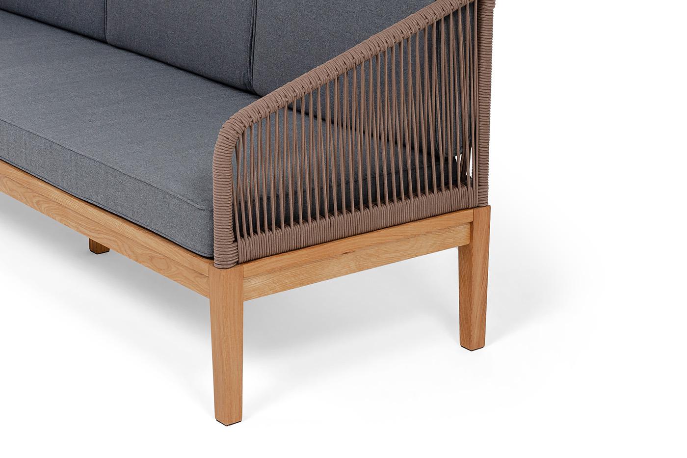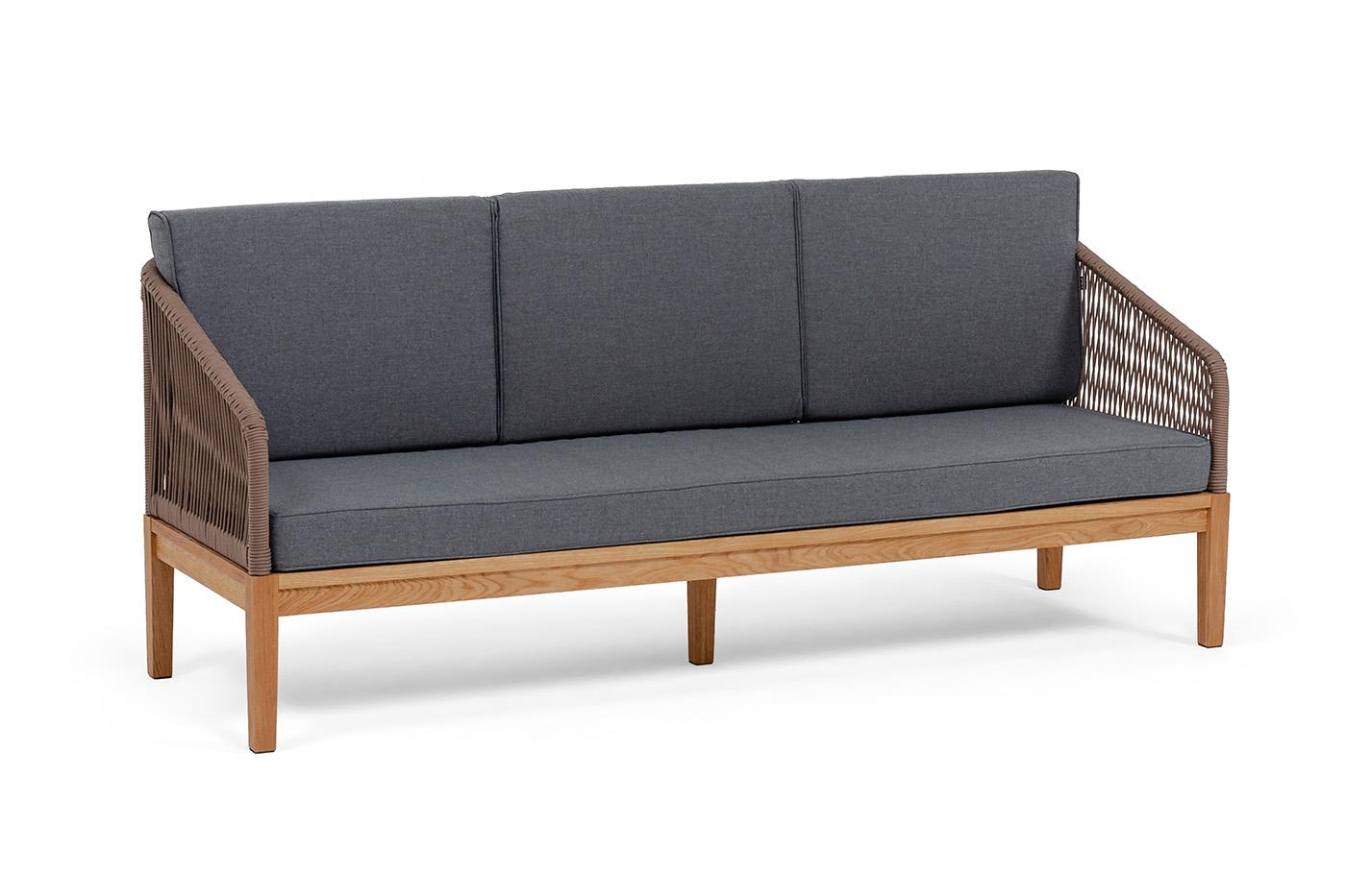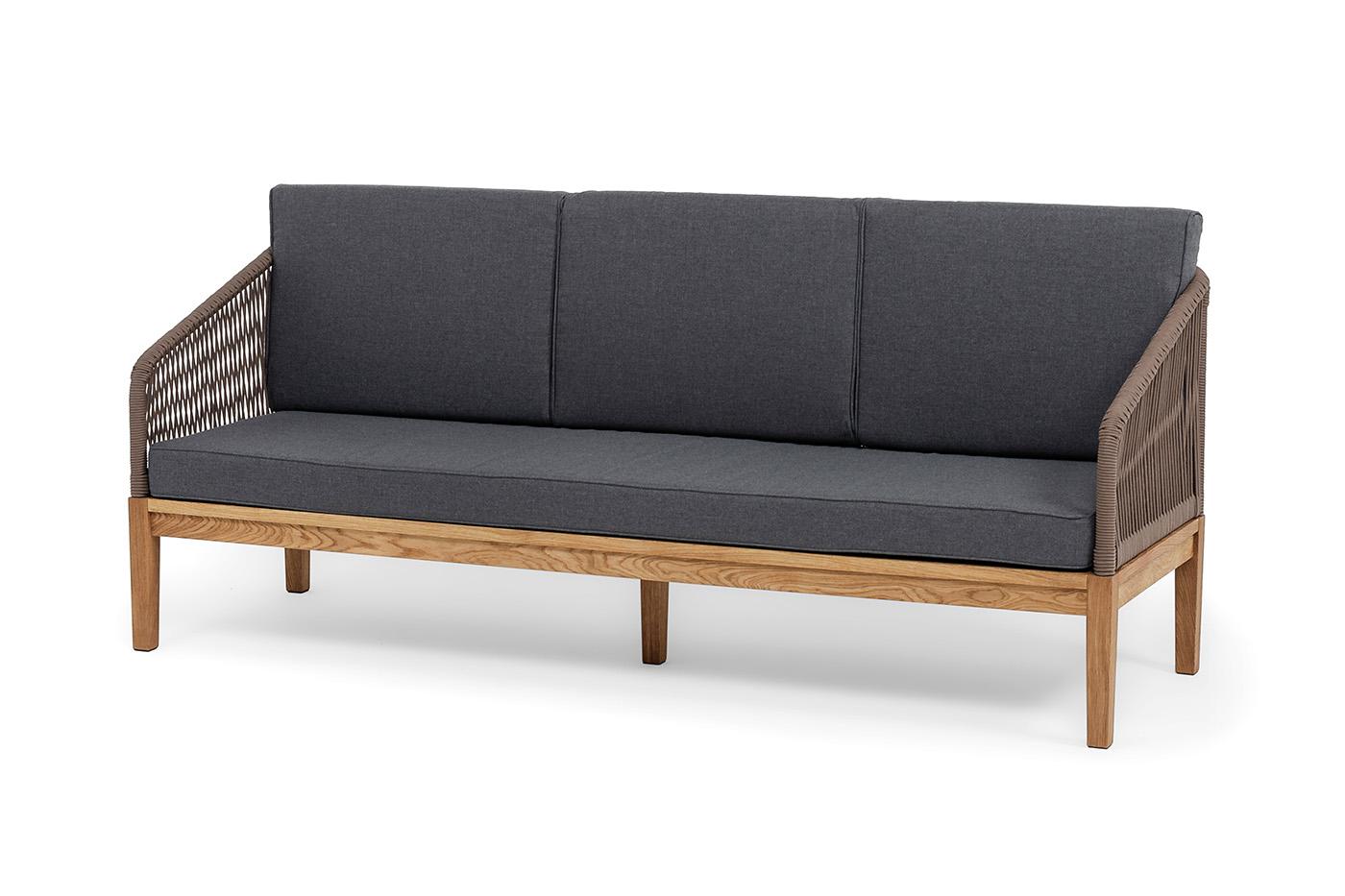 Диван 4SIS "Канны" диван 3-местный плетеный из роупа, основание дуб, роуп коричневый круглый, ткань темно-серая 027 арт. KAN-S-3-T002 brown(D-gray027)