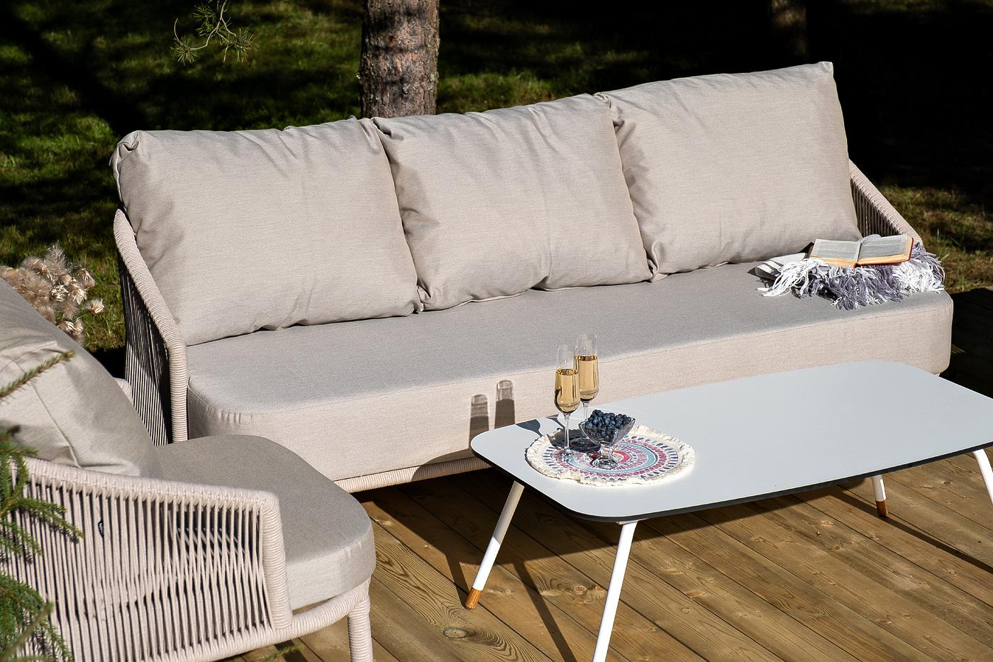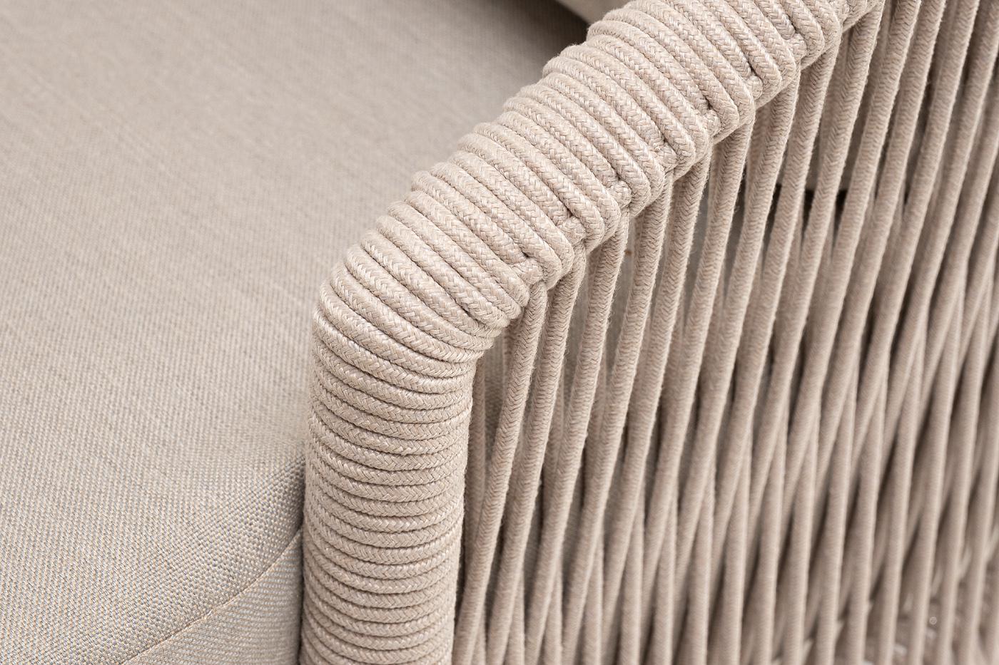 Диван 4SIS "Верона" диван 3-местный плетеный из роупа, каркас алюминий белый муар, роуп бежевый круглый, ткань бежевая 15052 арт. VER-S-3-001 W Mua beige(beige15052)