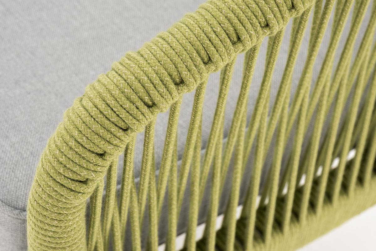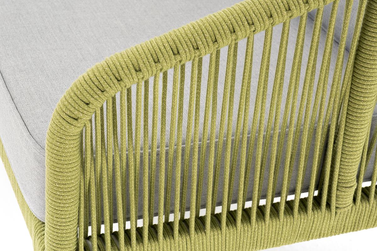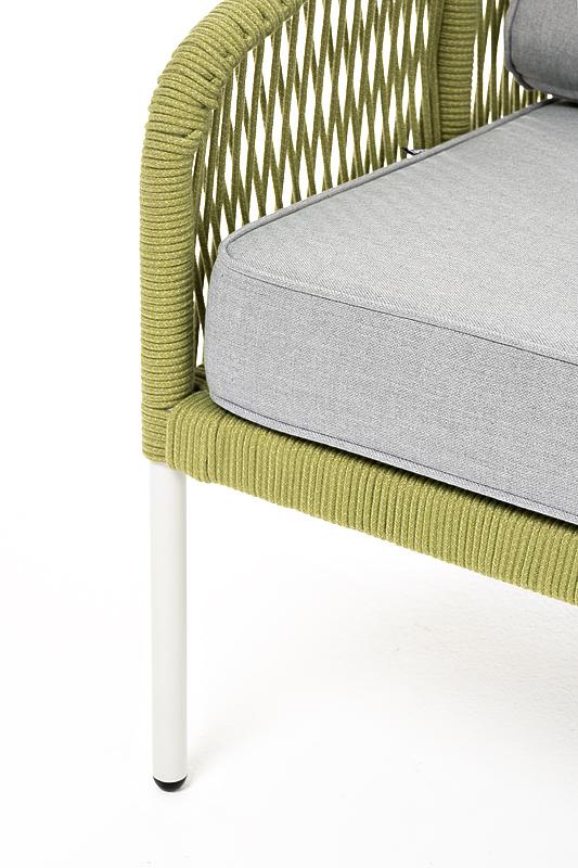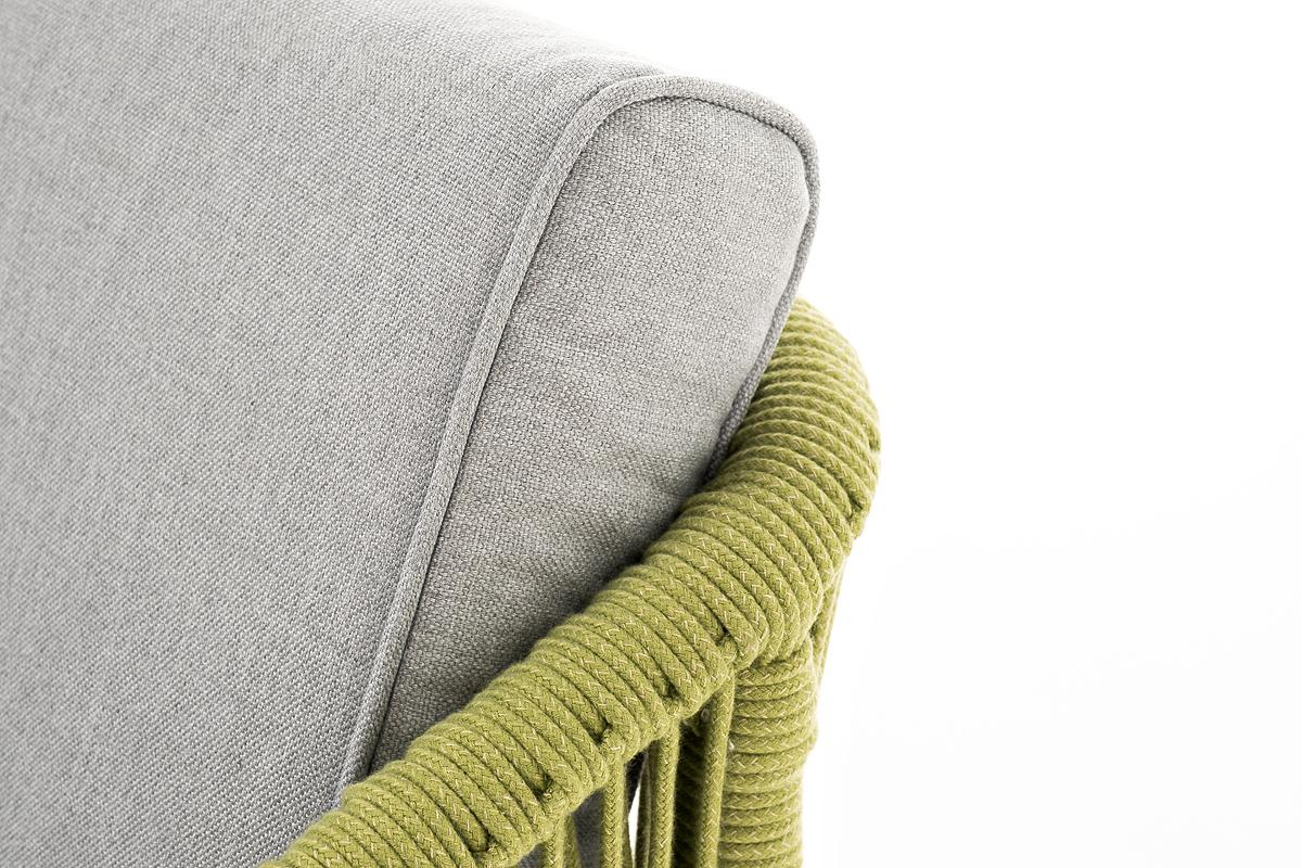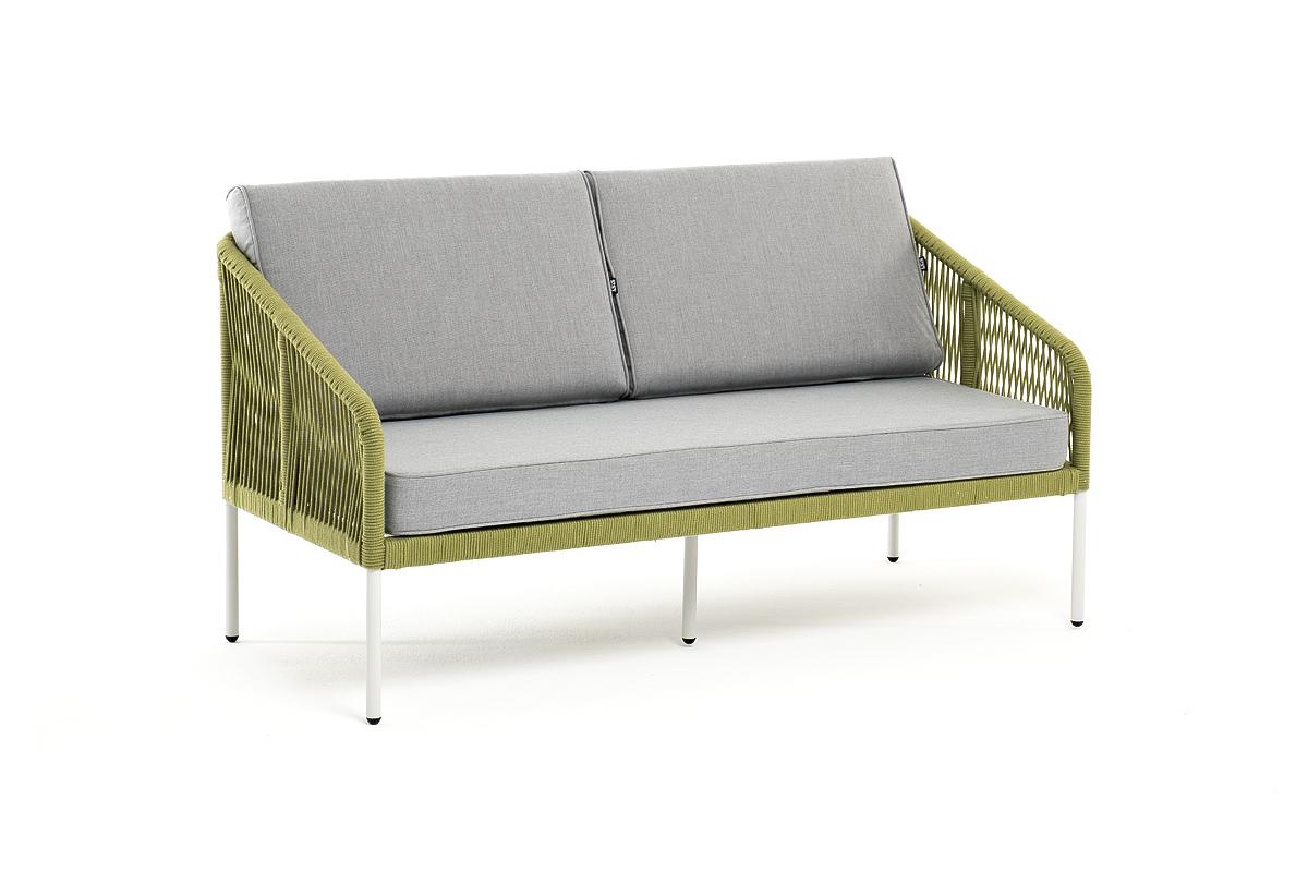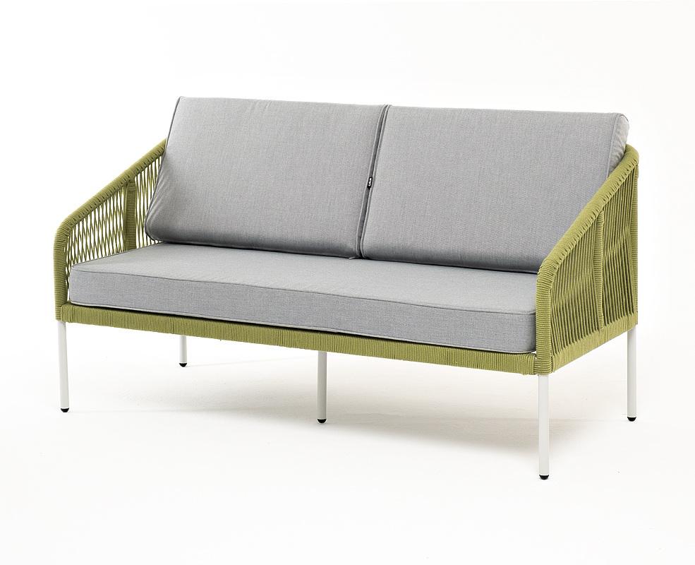 Диван 4SIS "Канны" диван 2-местный плетеный из роупа, каркас алюминий светло-серый (RAL7035) муар, роуп салатовый меланж круглый, ткань светло-серая арт. KAN-S-2-001 RAL7035 Mua mel-green(H-gray)
