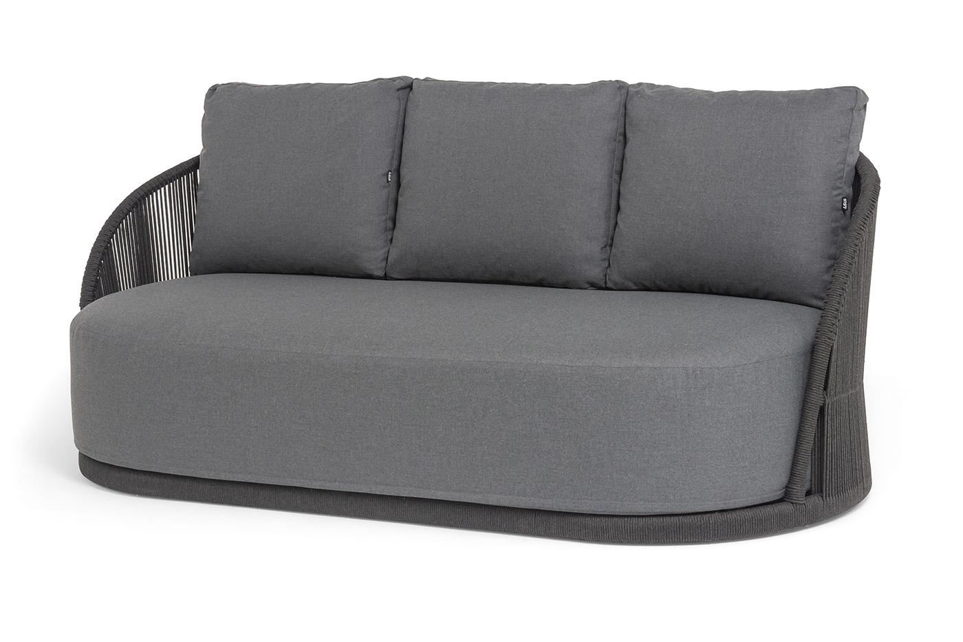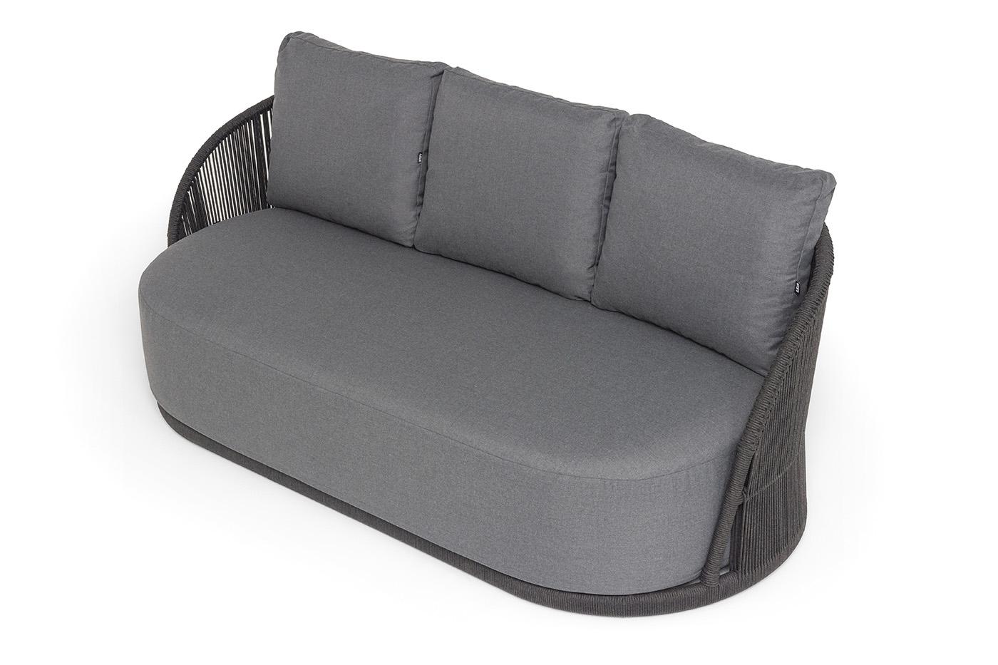 Диван 4SIS "Монтелла" диван 3-местный плетеный из роупа, каркас алюминий темно-серый (RAL7024) муар, роуп темно-серый круглый, ткань темно-серая 027 арт. MONT-S-3-001 RAL7024 Mua D-grey(D-gray027)