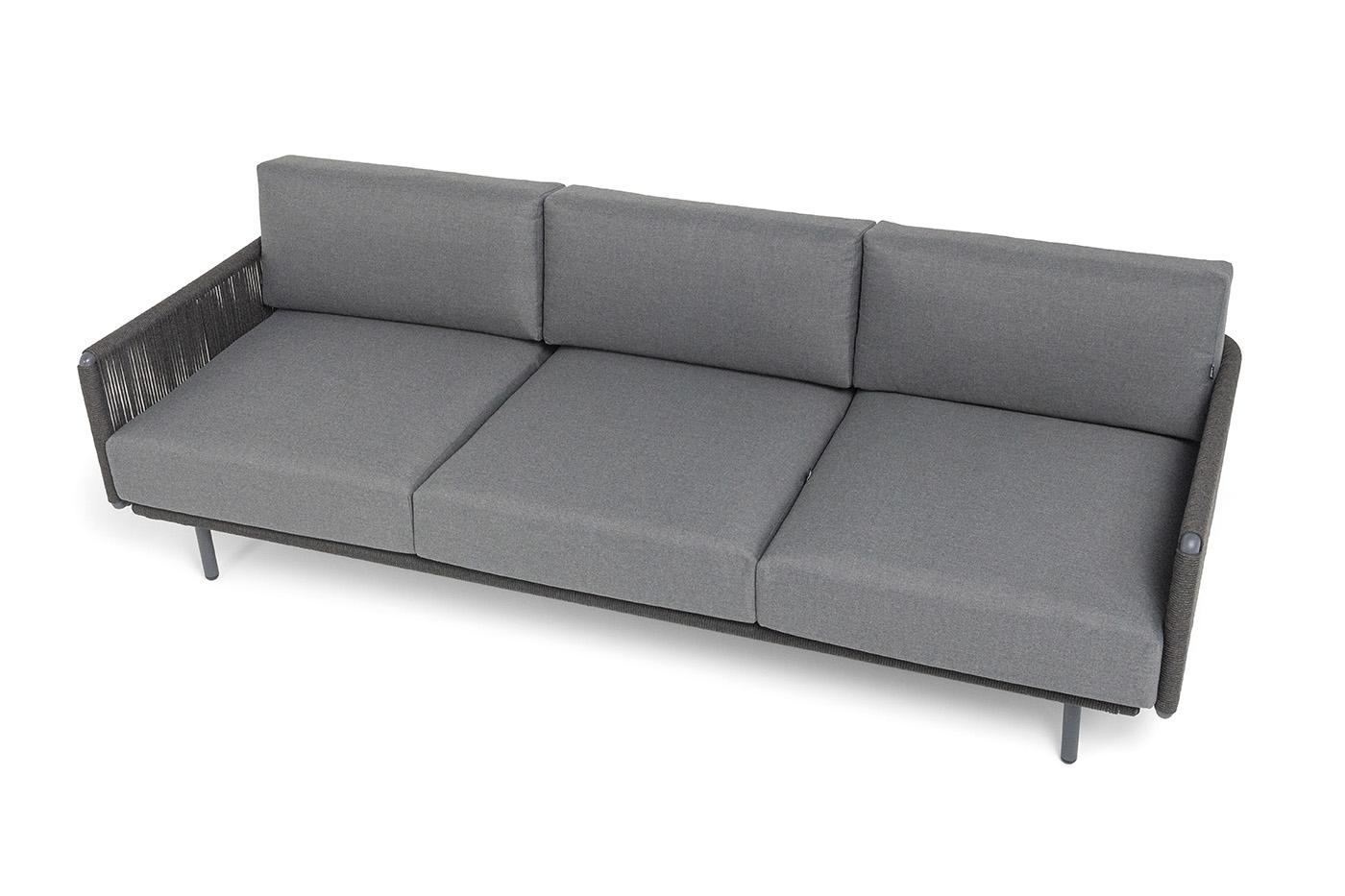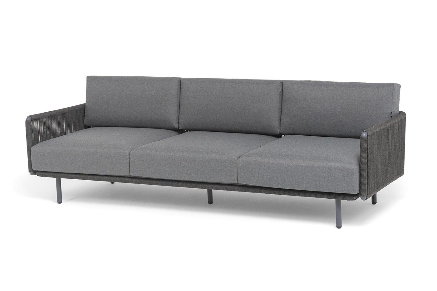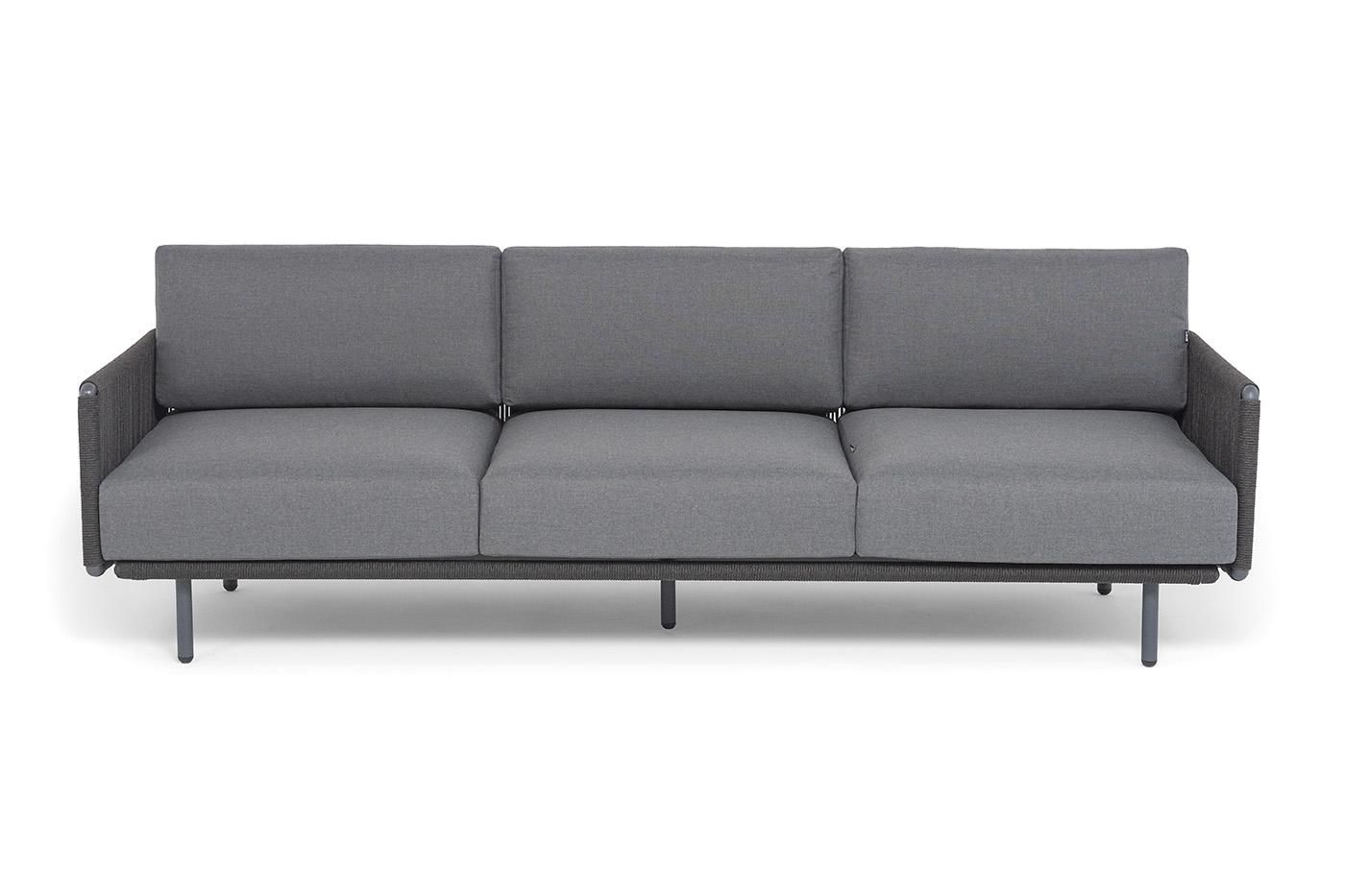 Диван 4SIS "Джелло" диван 3-местный плетеный из роупа, каркас алюминий темно-серый (RAL7024) муар, роуп темно-серый круглый, ткань темно-серая 027 арт. JEL-S-3-001 RAL7024 Mua D-grey(D-gray027)