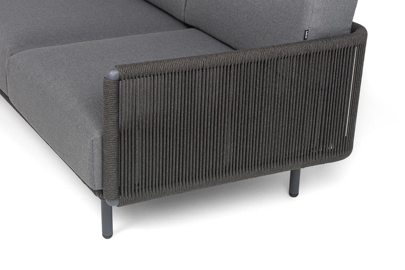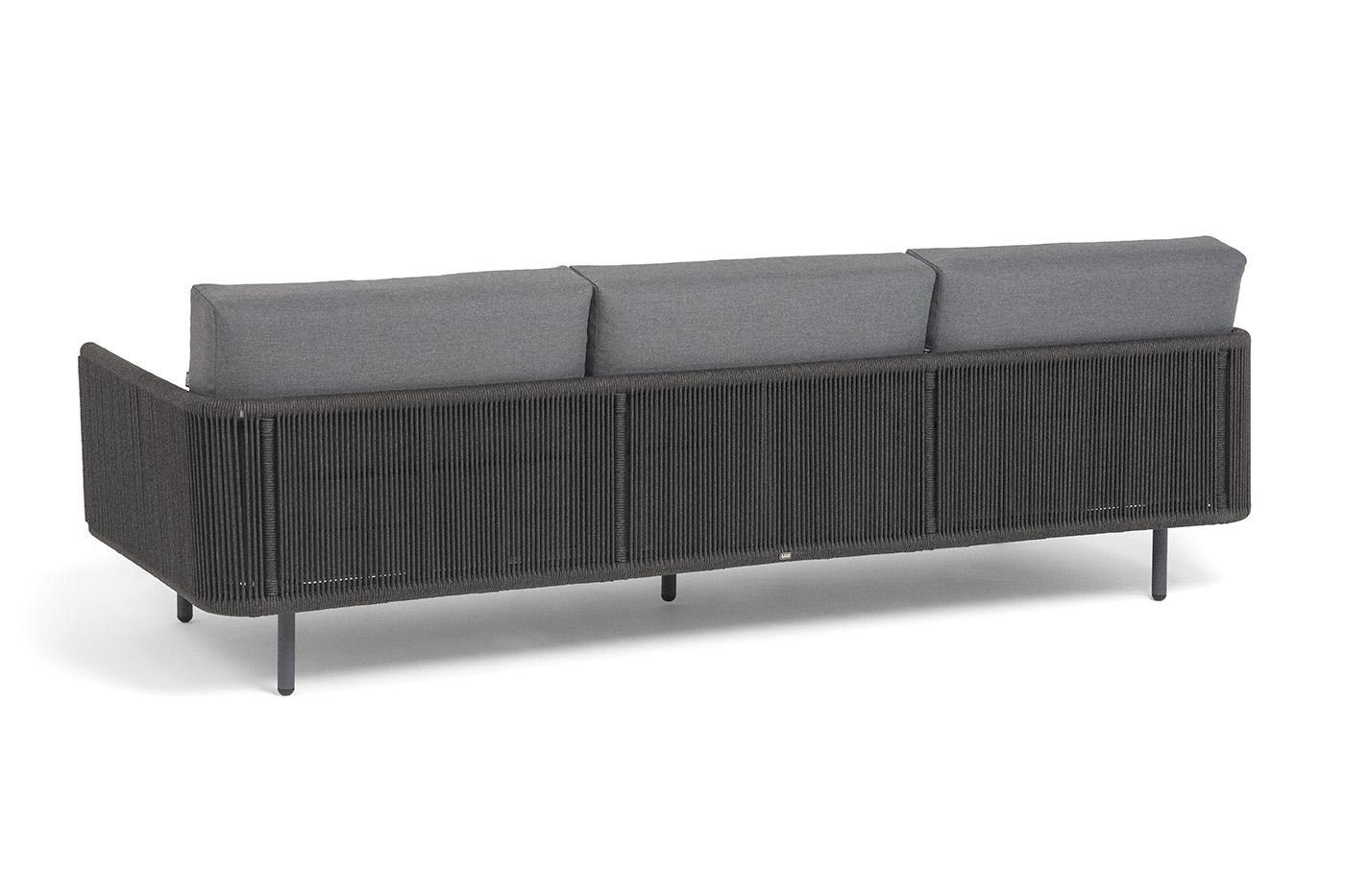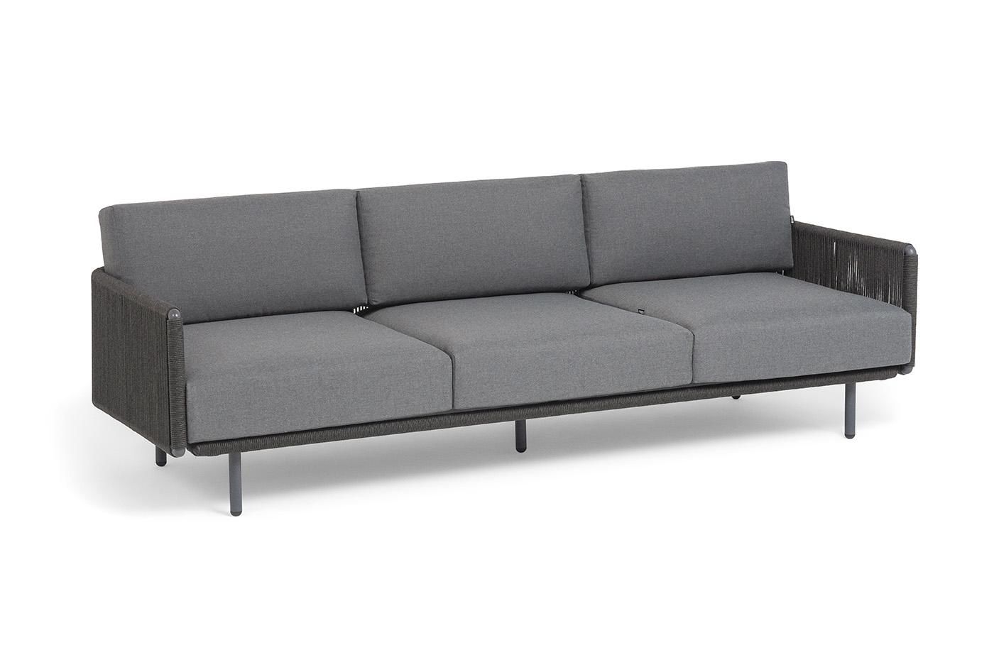 Диван 4SIS "Джелло" диван 3-местный плетеный из роупа, каркас алюминий темно-серый (RAL7024) муар, роуп темно-серый круглый, ткань темно-серая 027 арт. JEL-S-3-001 RAL7024 Mua D-grey(D-gray027)