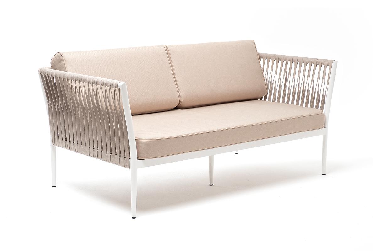 Диван 4SIS "Касабланка" диван 2-местный плетеный из роупа, каркас алюминий светло-серый (RAL7035) муар, роуп серо-коричневый 23мм, ткань бежевая 15052 арт. KAS-S-2-001 RAL7035 Mua G-brown(beige15052)