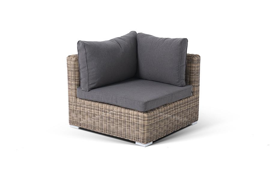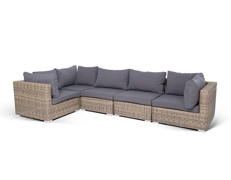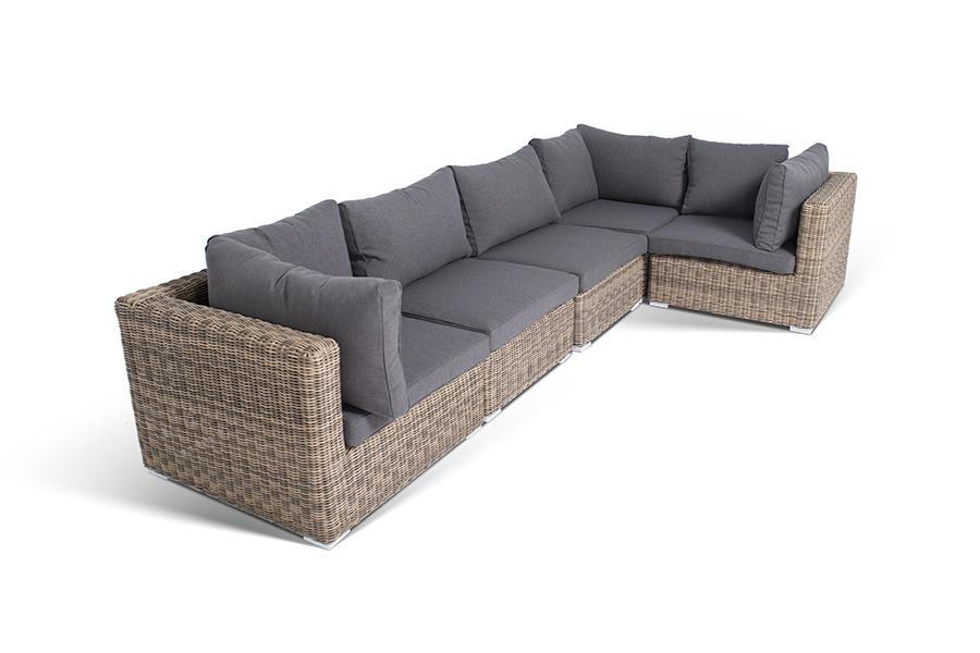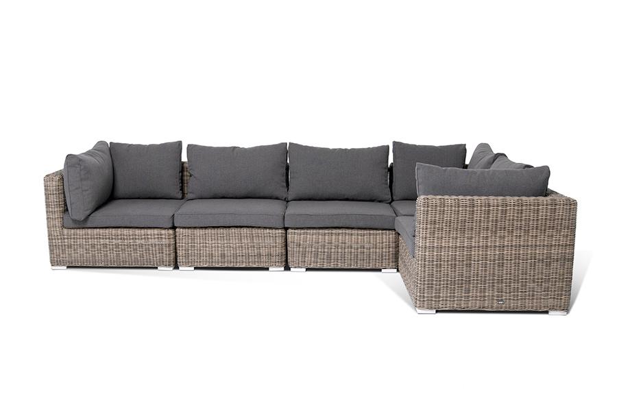 Трансформирующийся диван «Лунго» подходит для одновременного размещения пяти персон. Его каркас выполнен из прочного алюминия. Мебель состоит из трех угловых модулей размером – 860×860×650 мм и двух прямых модулей размером – 740×860×650 мм. Комплект выполнен из круглого искусственного ротанга ручного плетения. Представлена в соломенном цвете. Модульный диван дополняют подушки со съёмными чехлами в сером оттенке. При их пошиве используется полиэстер, плотностью 300гр/м2. Ткань обрабаты "Лунго" модуль диванный прямой с подушками, цвет соломенный 2шт. 740Х860Х650, "Лунго" модуль диванный угловой с подушками, цвет соломенный 3шт. 860Х860Х650,