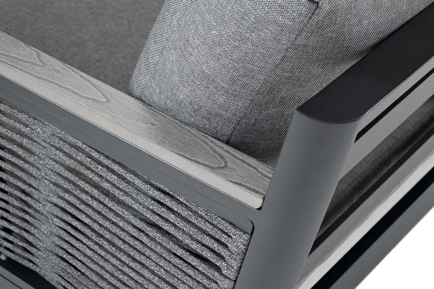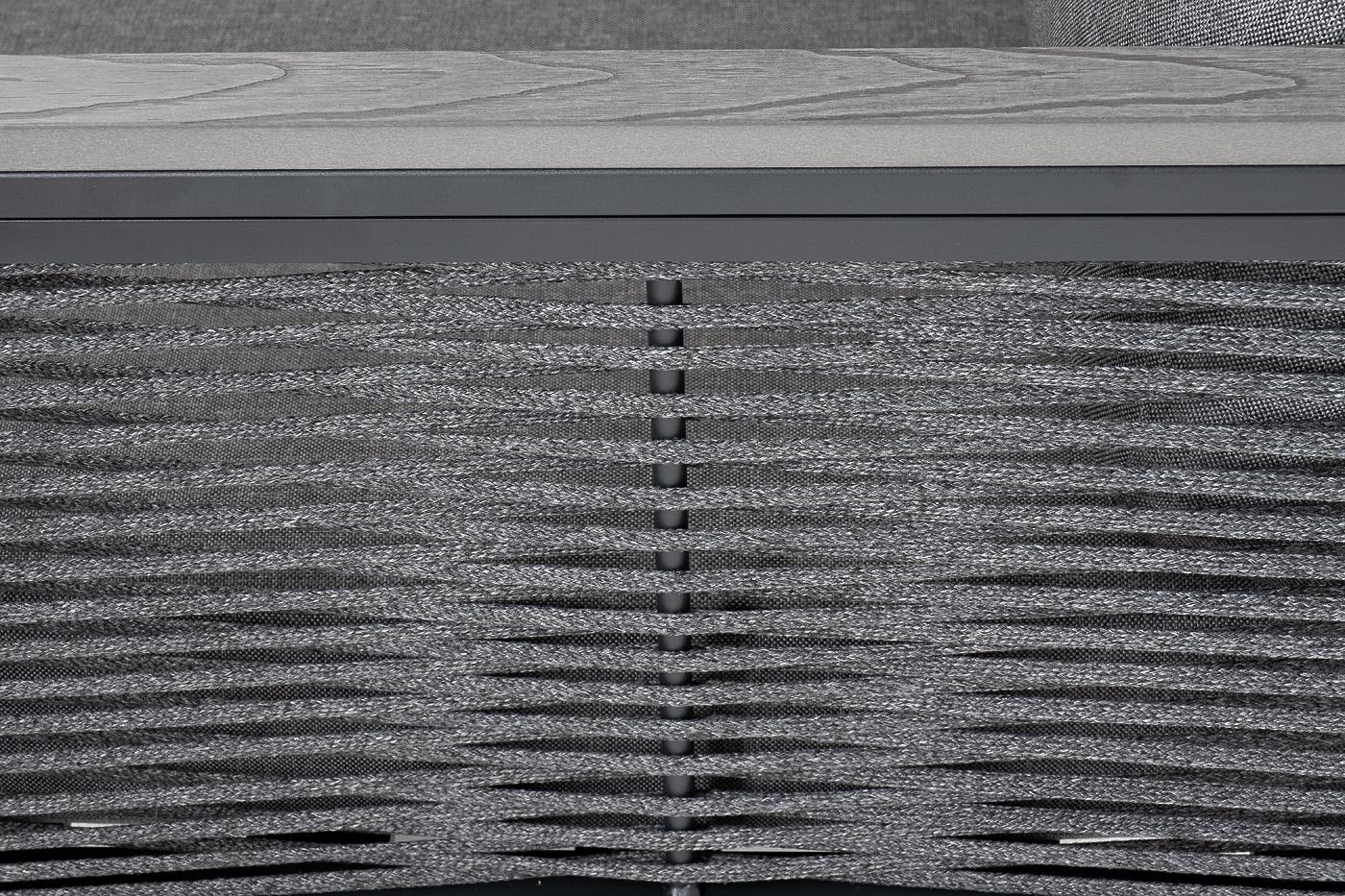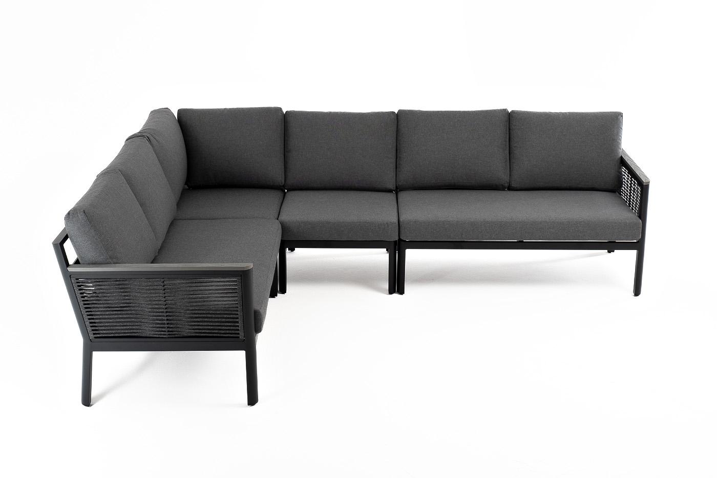 Угловой модульный диван «Париж» каркас из алюминия. Состоит из четырех модулей: - диванный двухместный модуль левый – 1240×780×700 мм. - диванный двухместный модуль правый – 1240×780×700 мм. - диванный модуль центральный - 780×600×700 мм. - диванный модуль угловой – 780×780×700 мм. Диван можно трансформировать под нужный размер и расположение. Состоит из алюминиевого каркаса темно-серого цвета, который дополняет серая оплетка из эластичных синтетических лент, состоящих из высокопрочных полиэф "Париж" модуль диванный алюминиевый угловой, цвет серый 1шт. 780Х780Х700, "Париж" модуль диванный алюминиевый центральный, цвет серый 1шт. 600Х780Х700, "Париж" модуль диванный левый, двухместный, цвет серый 1шт. 1 240Х780Х700, "Париж" модуль диванный правый, двухместный, цвет серый 1шт. 1 240Х780Х700,