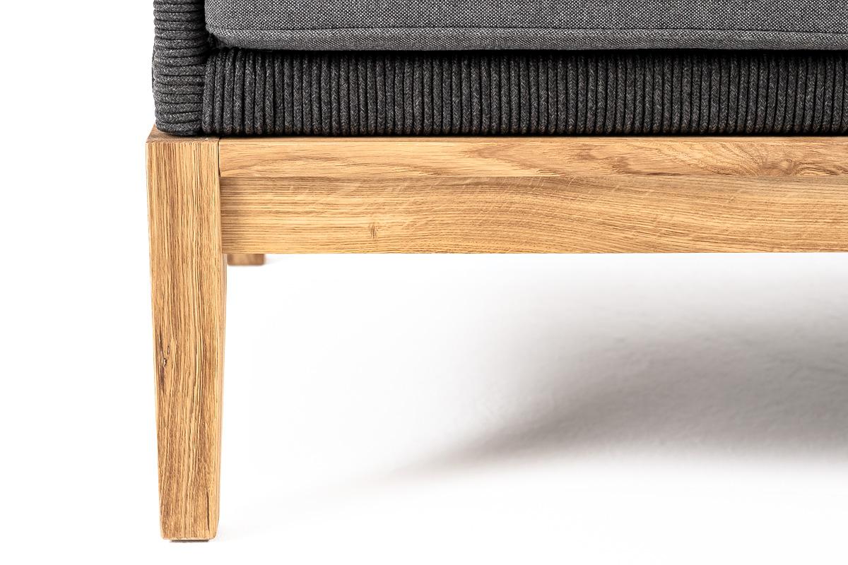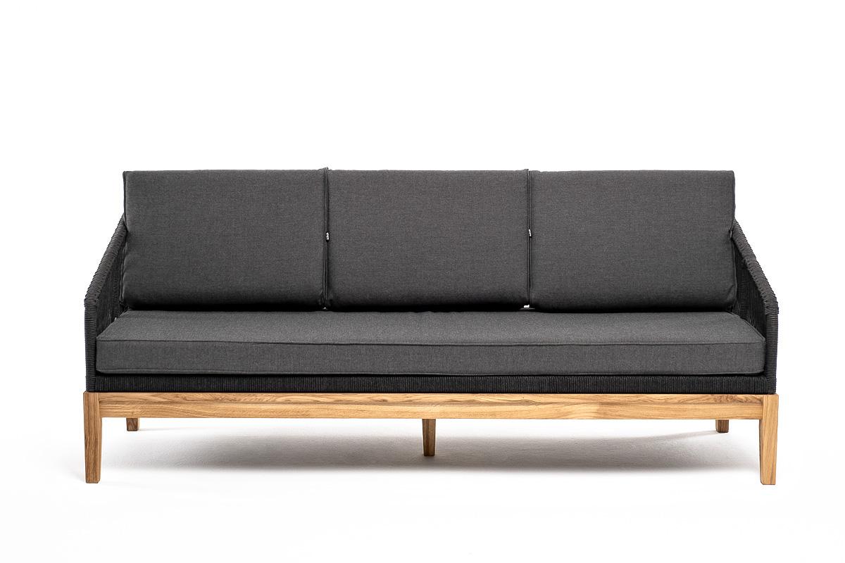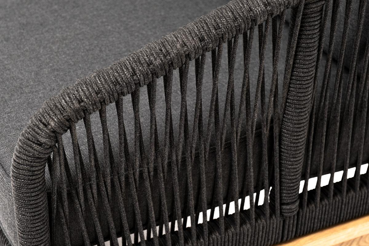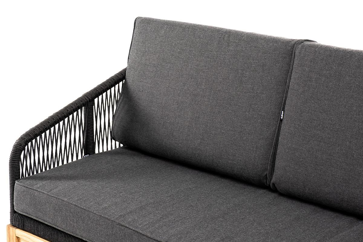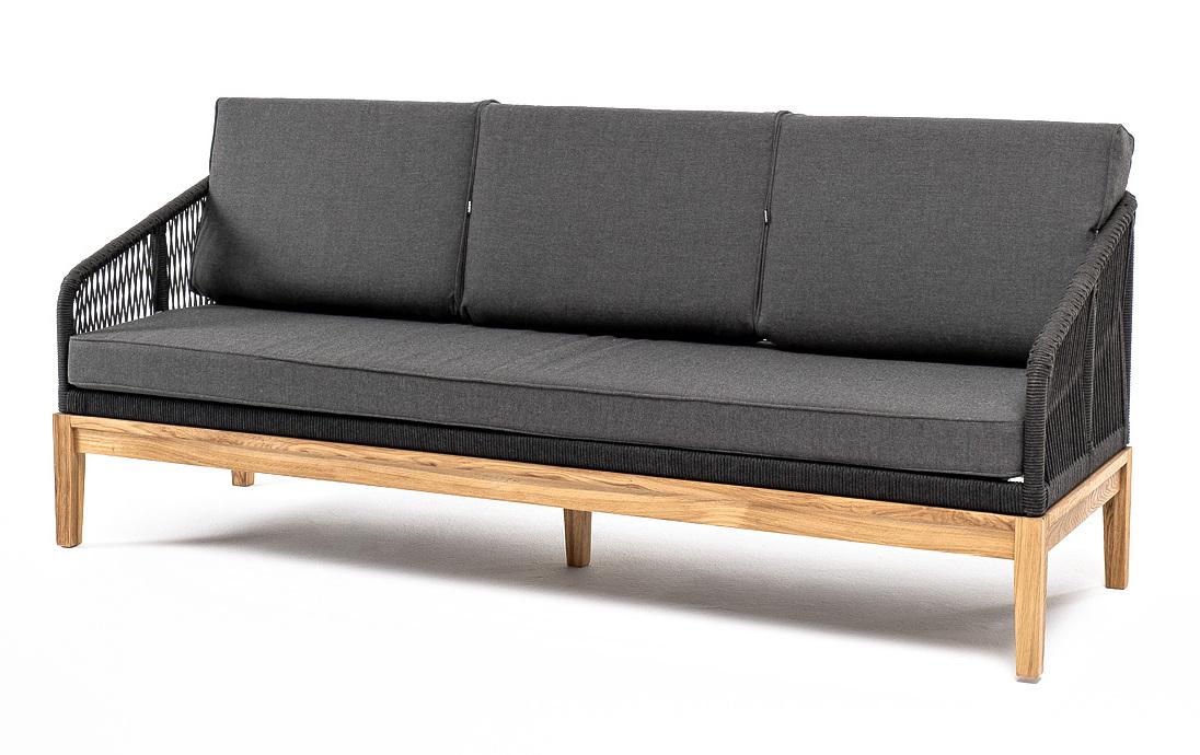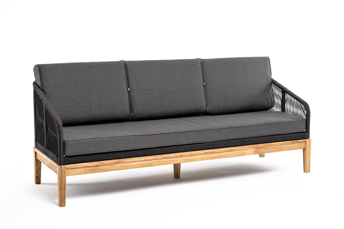 Диван 4SIS "Канны" диван 3-местный плетеный из роупа, основание дуб, роуп темно-серый круглый, ткань темно-серая 027 арт. KAN-S-3-T002 D-grey(D-gray027)