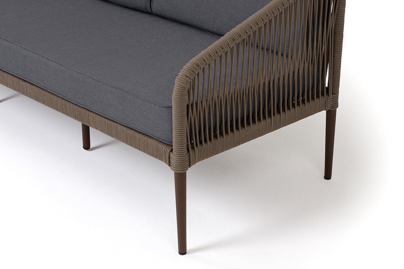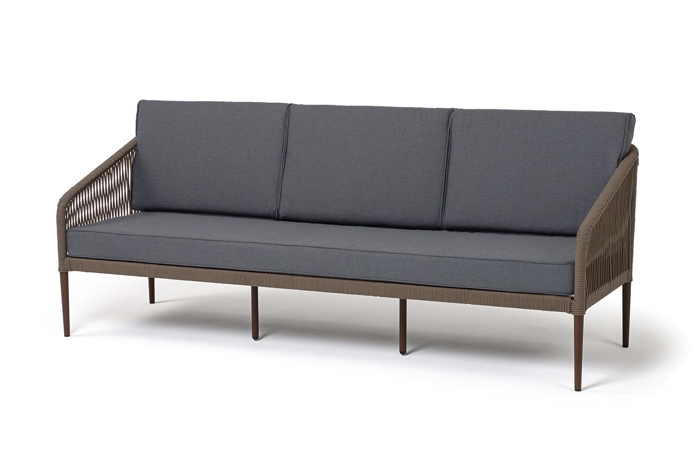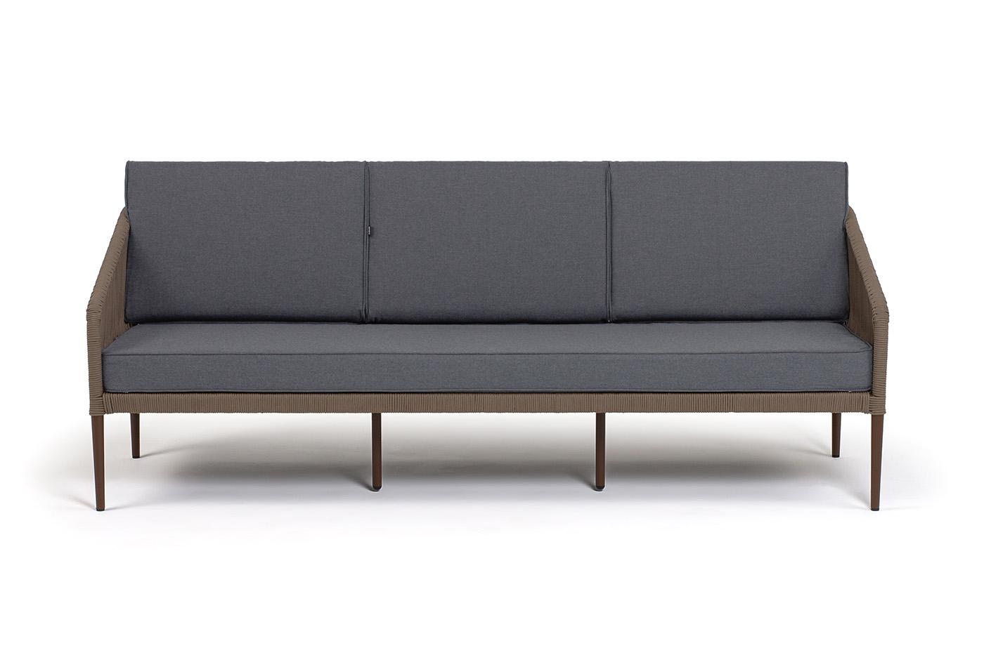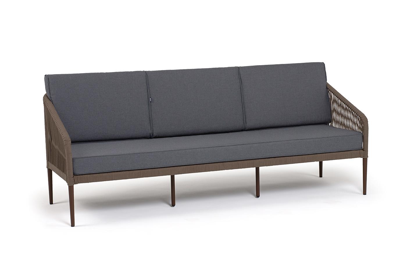 Диван 4SIS "Канны" диван 3-местный плетеный из роупа, каркас алюминий темно-серый (RAL7024) шагрень, роуп темно-серый круглый, ткань темно-серая 019 арт. KAN-S-3-001 RAL8016 Mua brown(D-gray027)