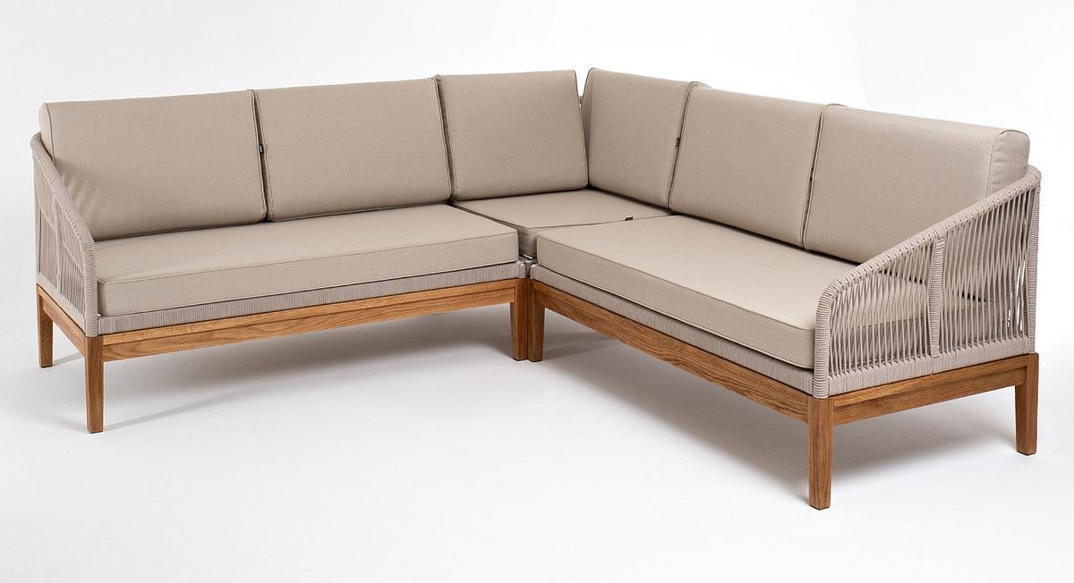 Модульный диван «Канны». Состоит из трех модулей: - правый модуль - 1480×850×790 мм. - левый модуль - 1480×850×790 мм. - угловой модуль - 850×850×790 мм. Боковины каркаса вручную оплетены роупом - эластичными синтетическими лентами, изготовленными из высокопрочных полиэфирных волокон. Цвет оплетки - бежевый. Основание дуб. Подушки состоят из наполнителя и съёмных чехлов. Материал - 100% полиэстер, плотностью 300гр/м2. "Канны" левый модуль плетеный из роупа, основание дуб, роуп бежевый круглый, ткань бежевая 15052 1шт. 1 480Х850Х790, "Канны" угловой модуль плетеный из роупа, основание дуб, роуп бежевый круглый, ткань бежевая 15052 1шт. 850Х850Х790, "Канны" правый модуль плетеный из роупа, основание дуб, роуп бежевый круглый, ткань бежевая 15052 1шт. 1 480Х850Х790,