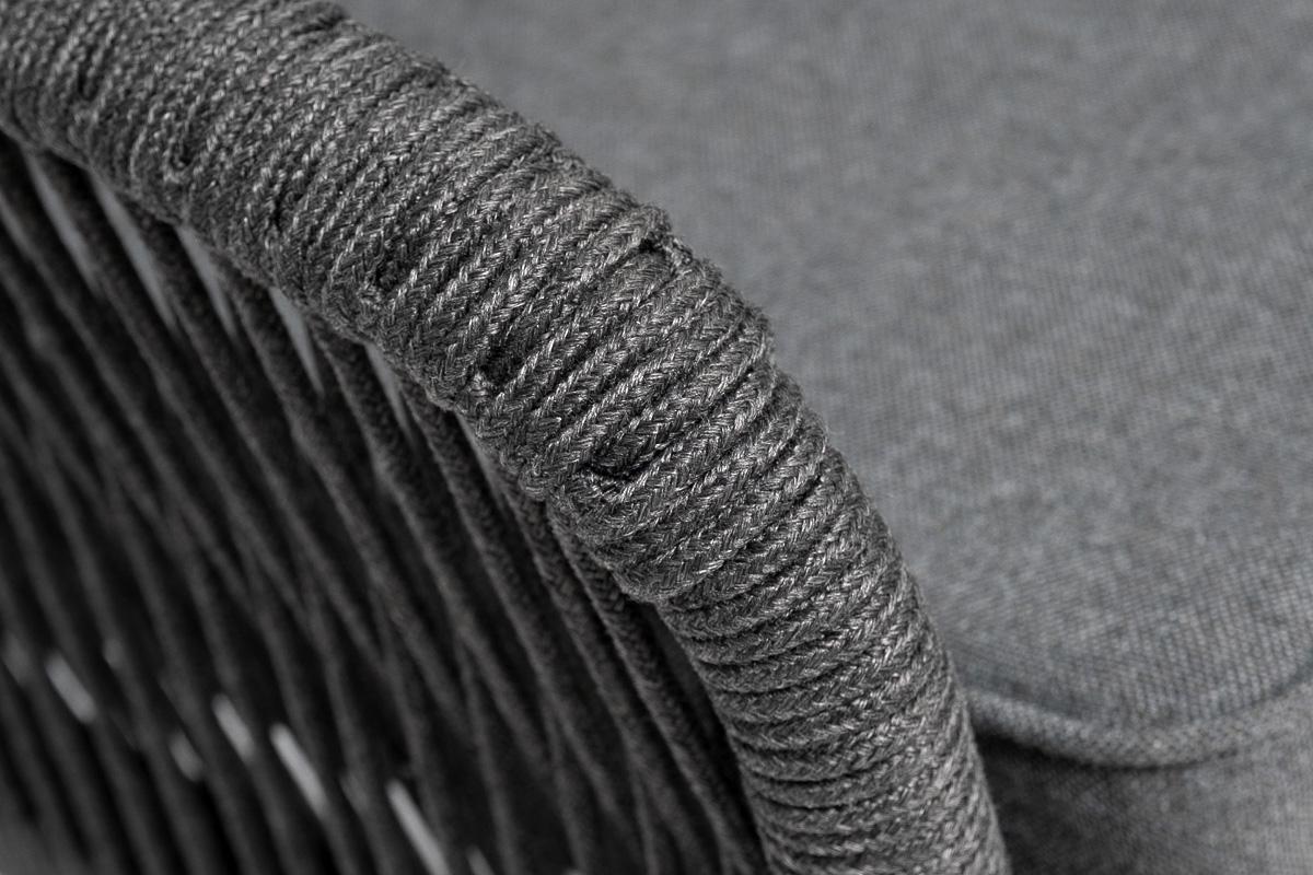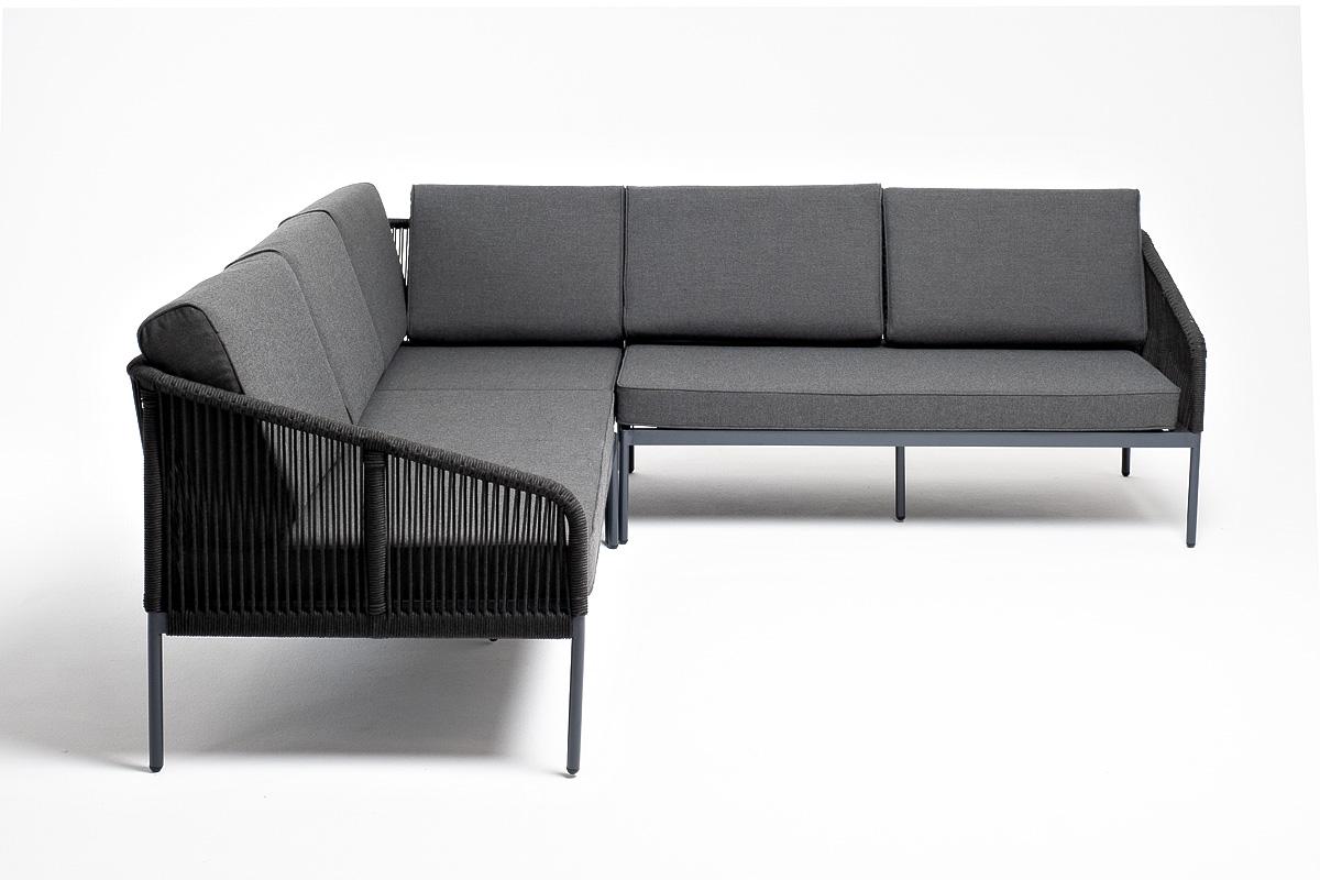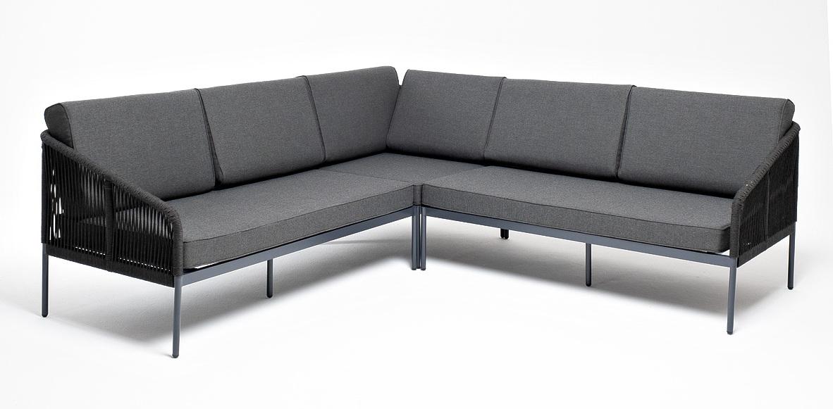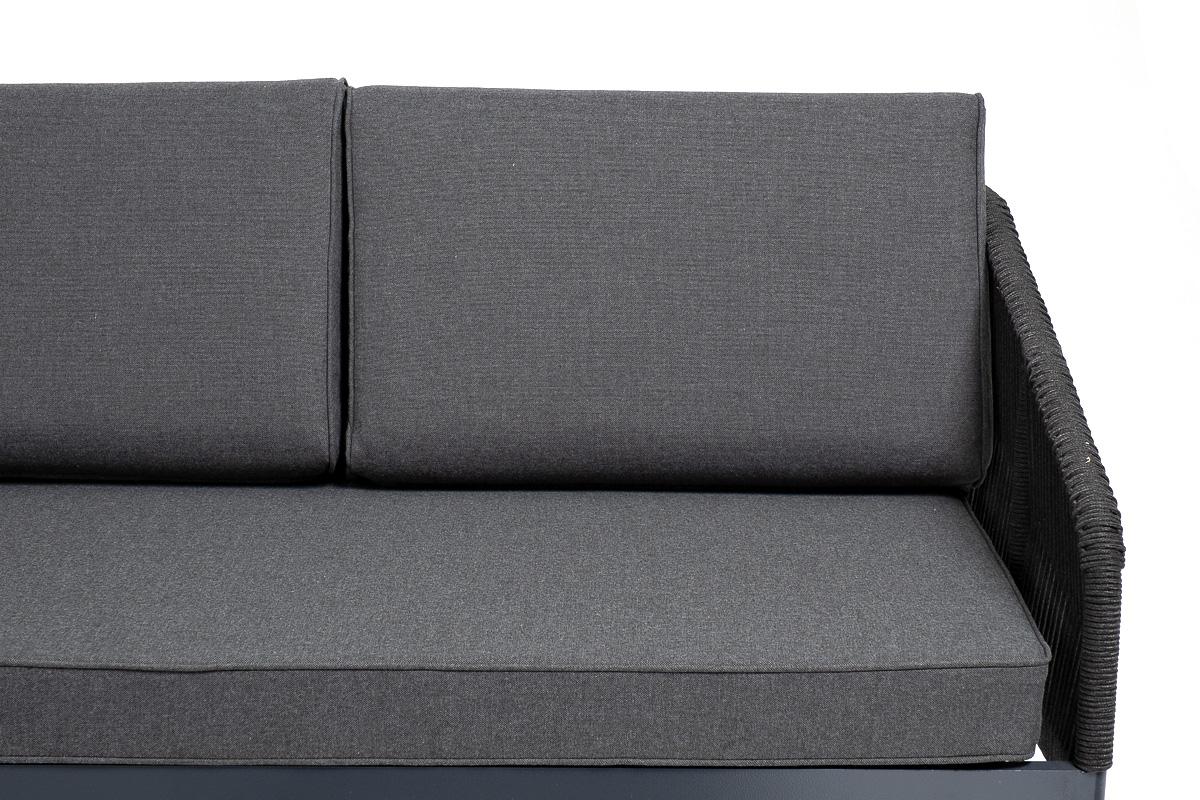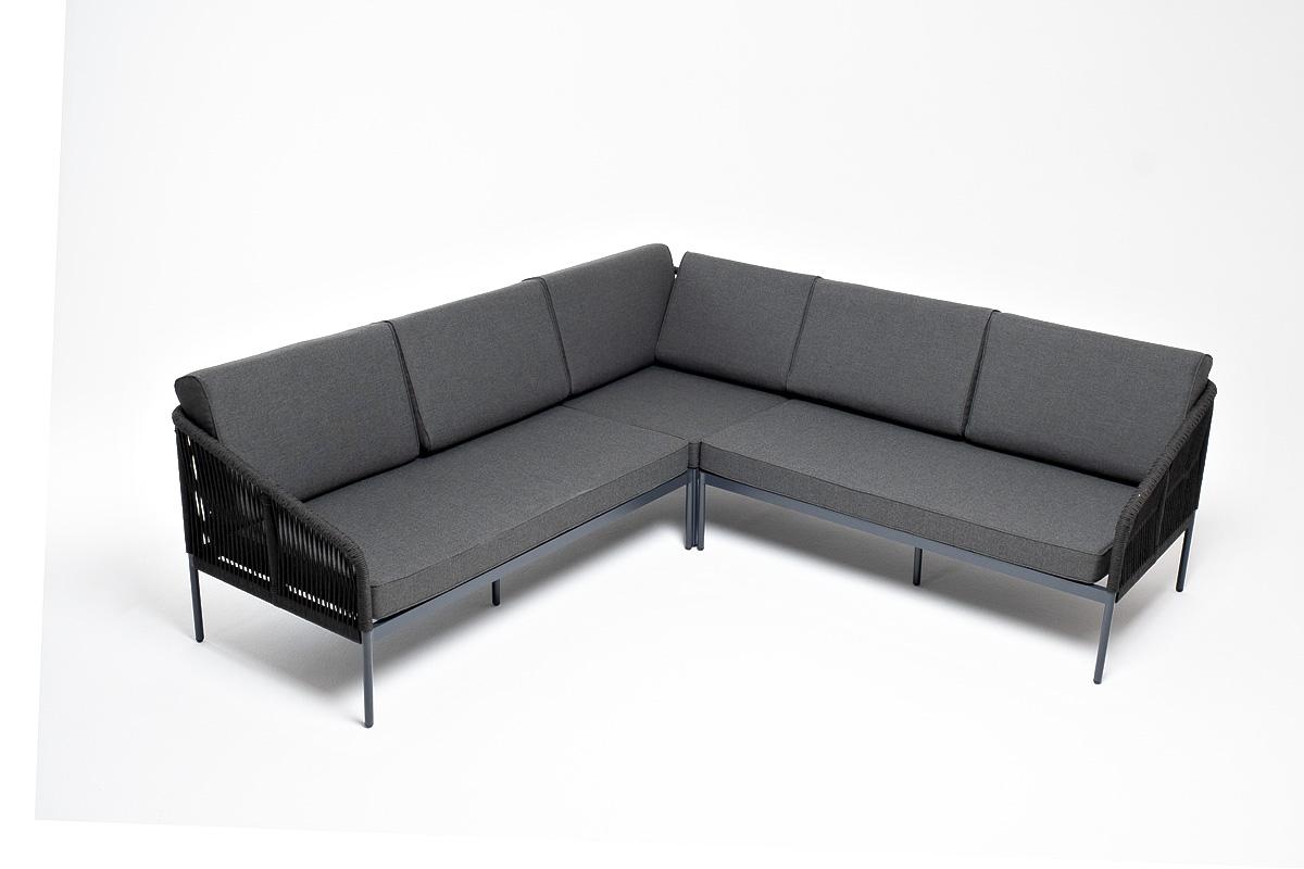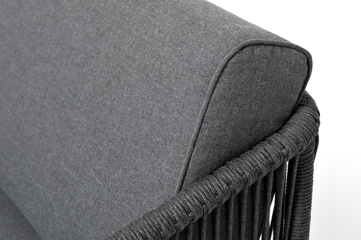 Диван 4SIS "Канны" диван модульный плетеный из роупа, каркас алюминий темно-серый (RAL7024), роуп темно-серый круглый, ткань темно-серая арт. KAN-MS-001 RAL7024 D-grey(D-gray)