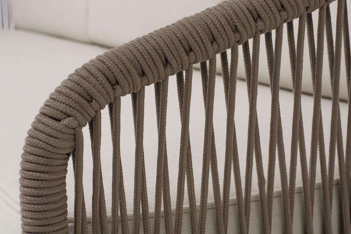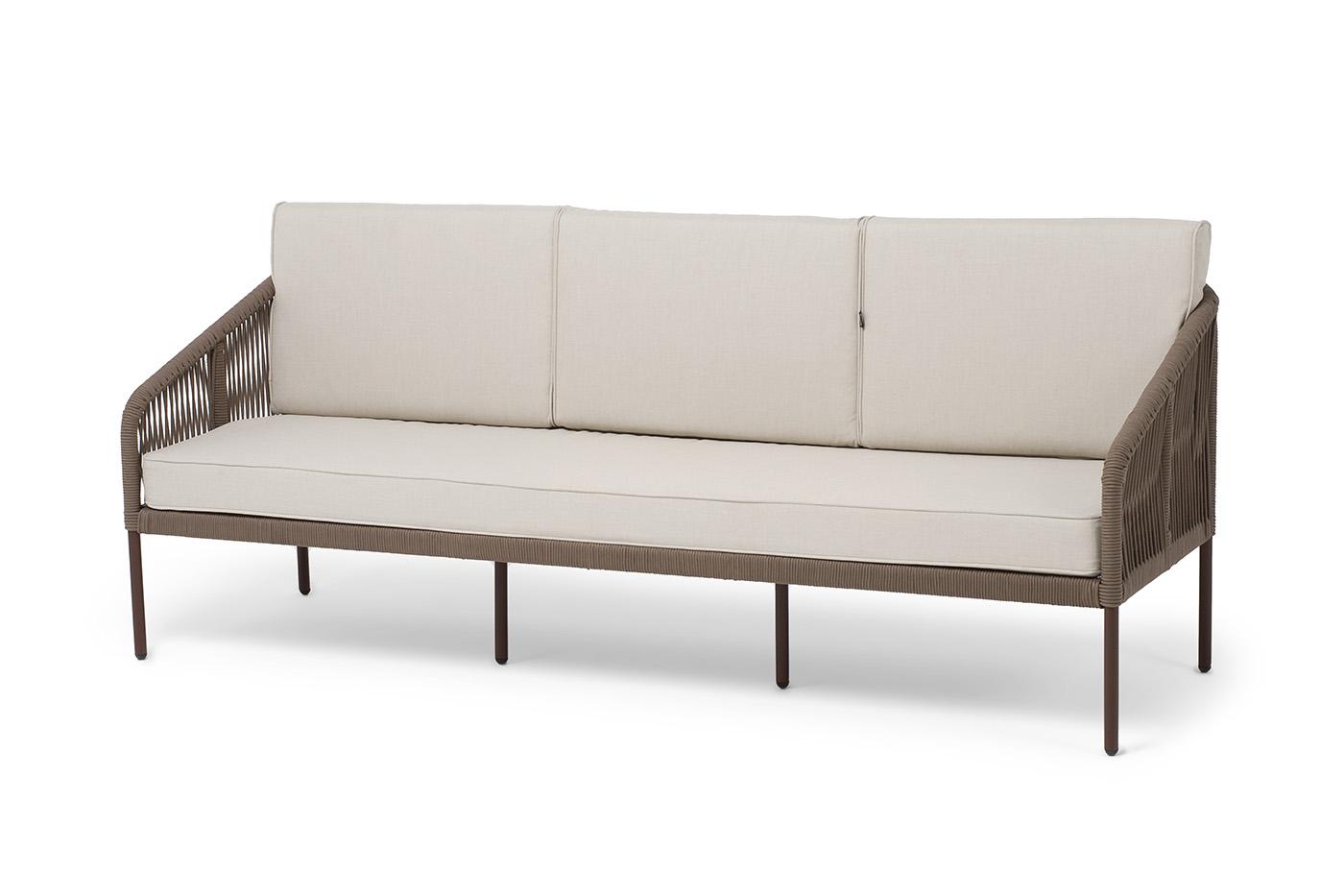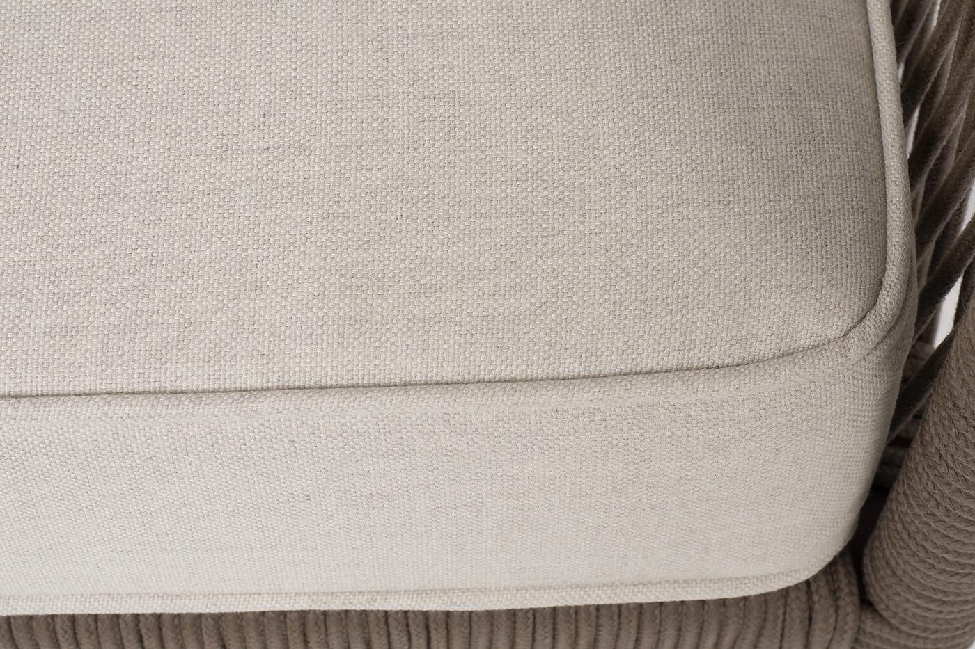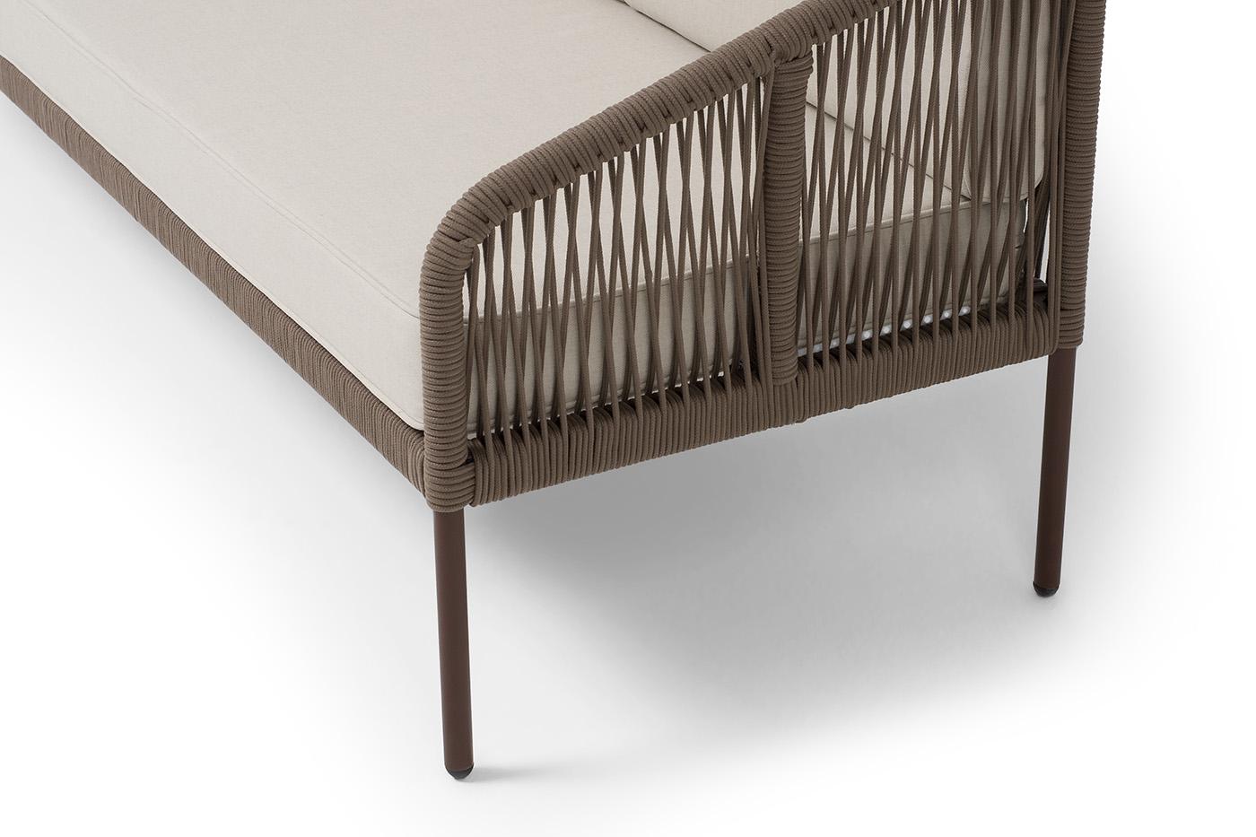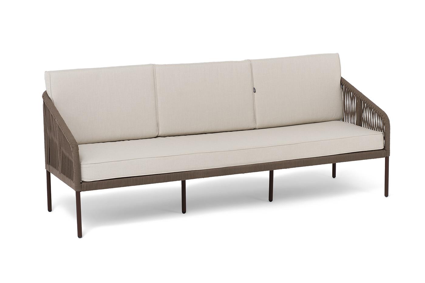 Диван 4SIS "Канны" диван 3-местный плетеный из роупа, каркас алюминий коричневый (RAL8016) муар, роуп коричневый круглый, ткань бежевая 15052 арт. KAN-S-3-001 RAL8016 Mua brown(beige15052)