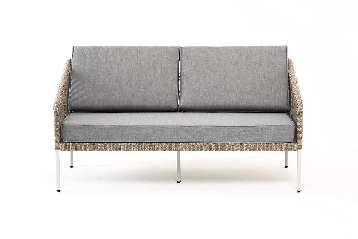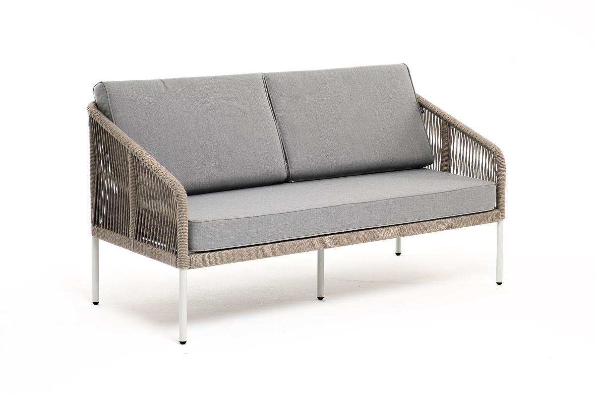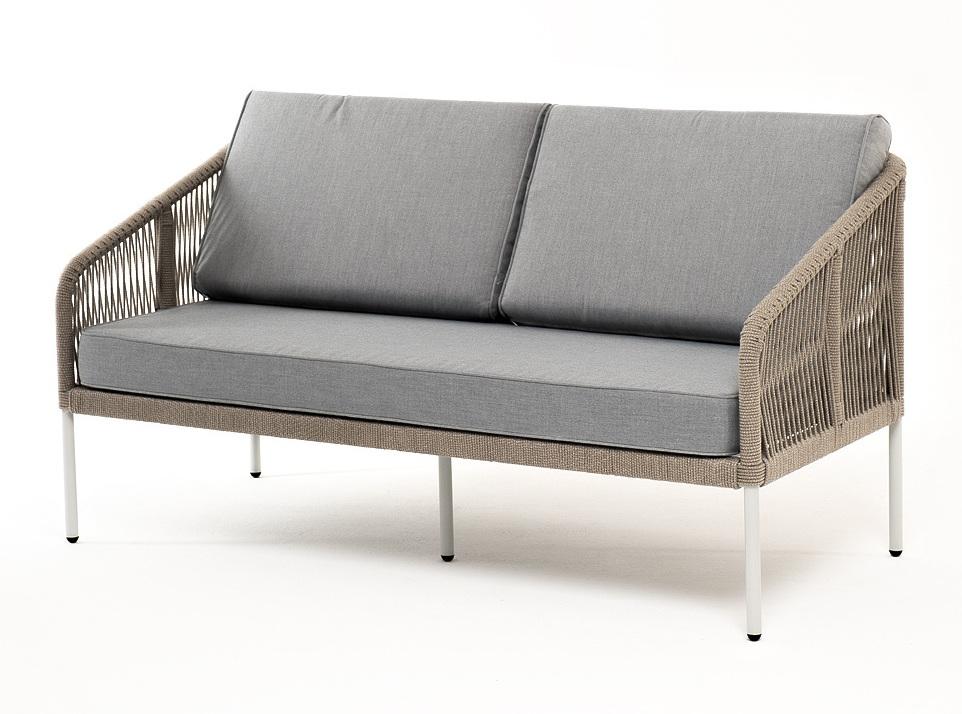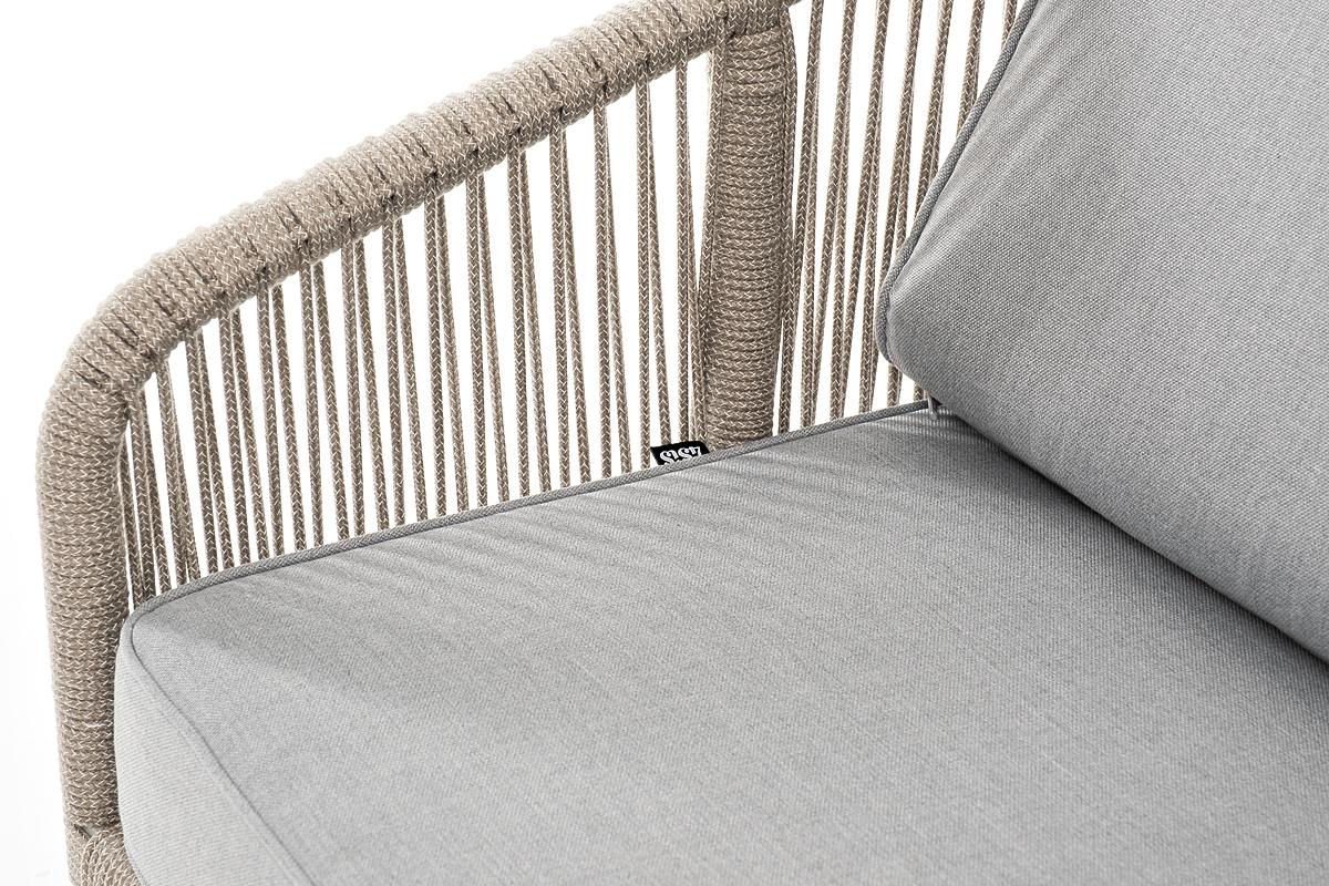 Диван 4SIS "Канны" диван 2-местный плетеный из роупа, каркас алюминий светло-серый (RAL7035) шагрень, роуп серый меланж круглый, ткань светло-серая арт. KAN-S-2-001 RAL7035 Mua mel-grey(H-gray)