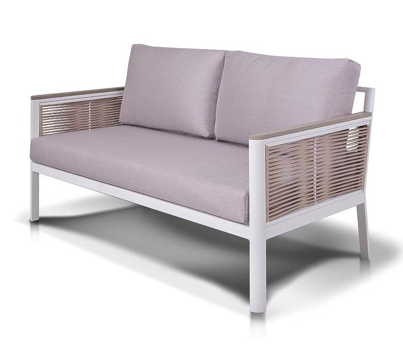 Диван 4SIS "Сан Ремо" диван 2-местный плетеный из роупа, каркас алюминий белый, роуп бежевый, ткань бежевая арт. GFS4762S