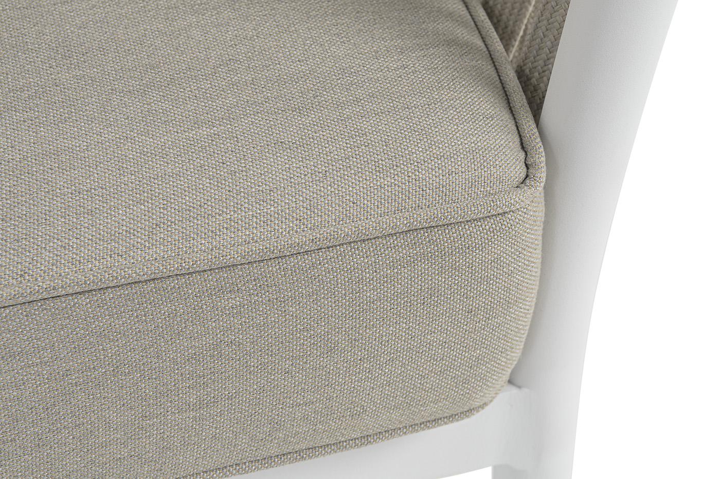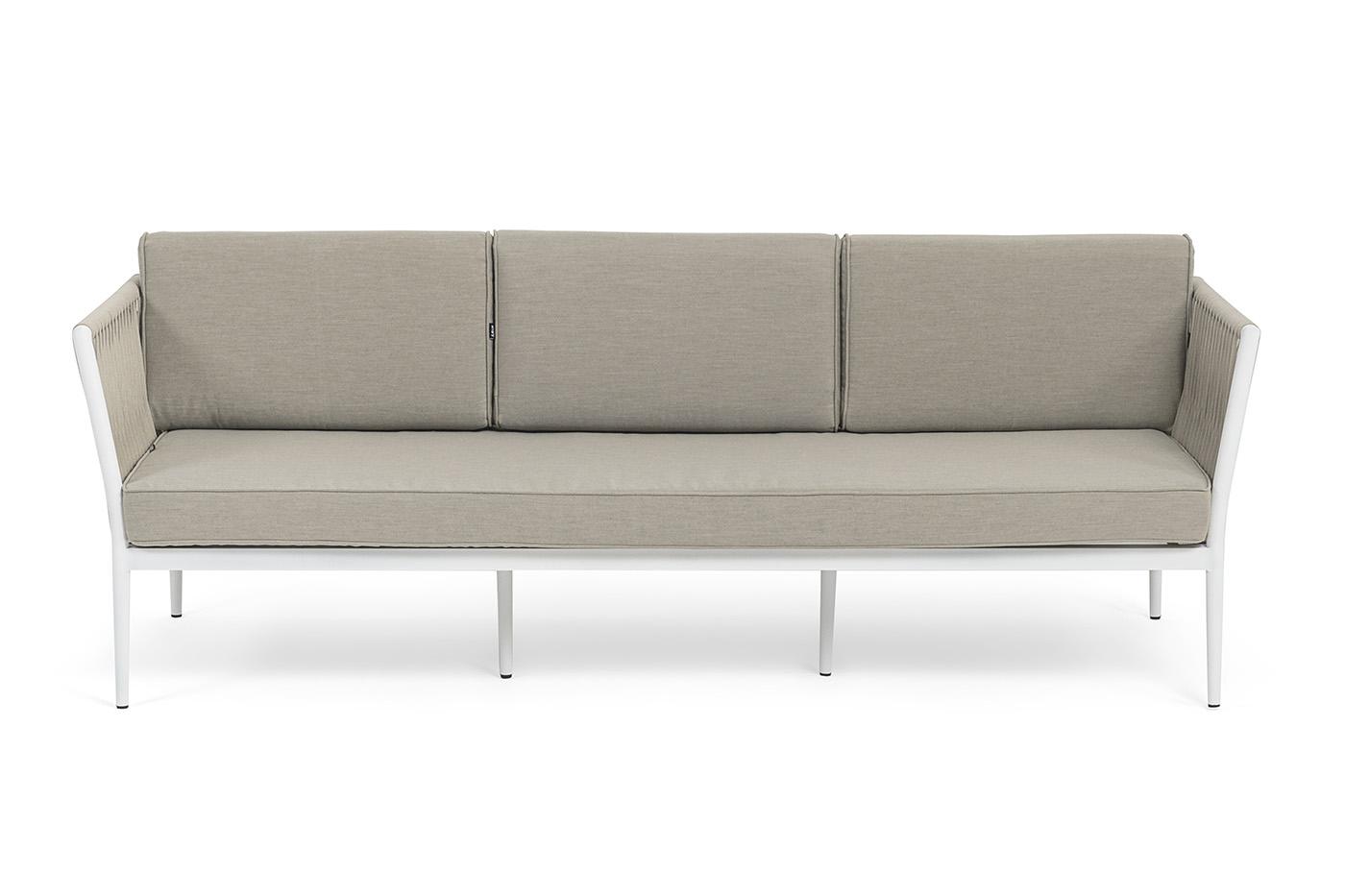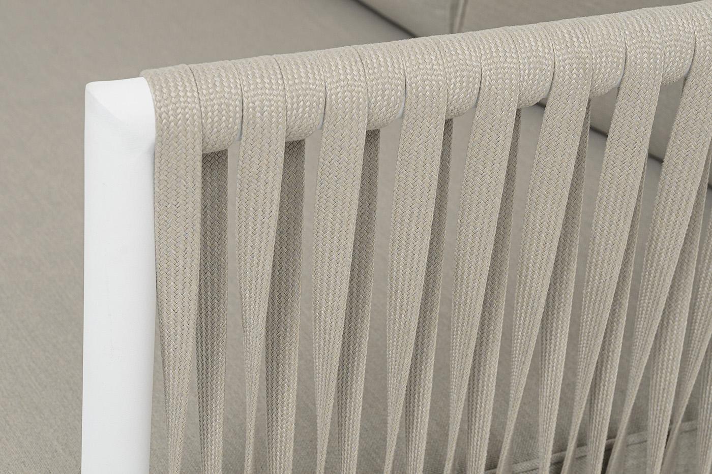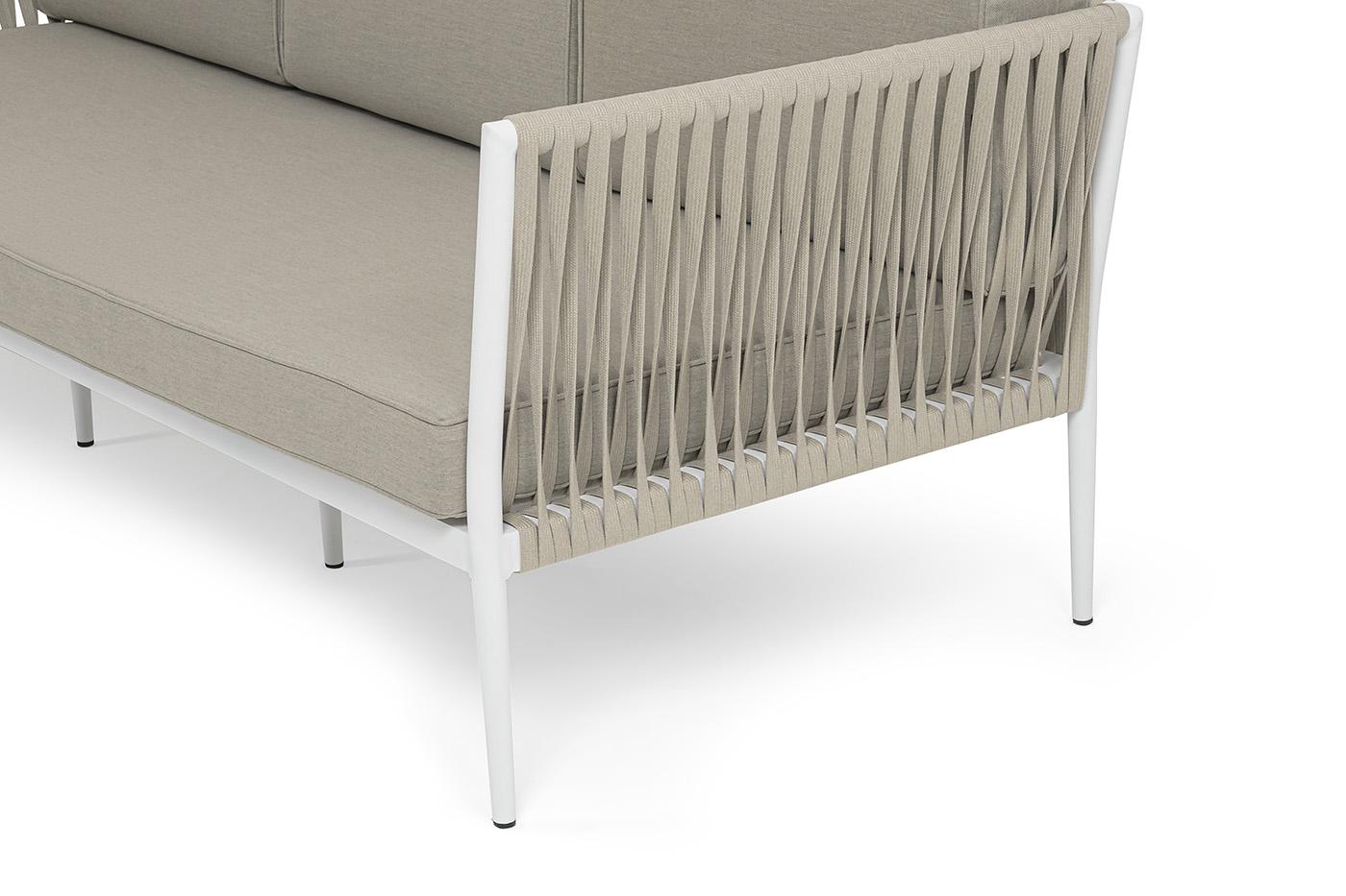 Диван 4SIS "Касабланка" диван 3-местный плетеный из роупа, каркас алюминий белый муар, роуп бежевый 20мм, ткань бежевая 15052 арт. KAS-S-3-001 W Mua beige(beige15052)