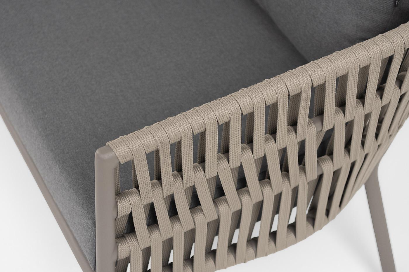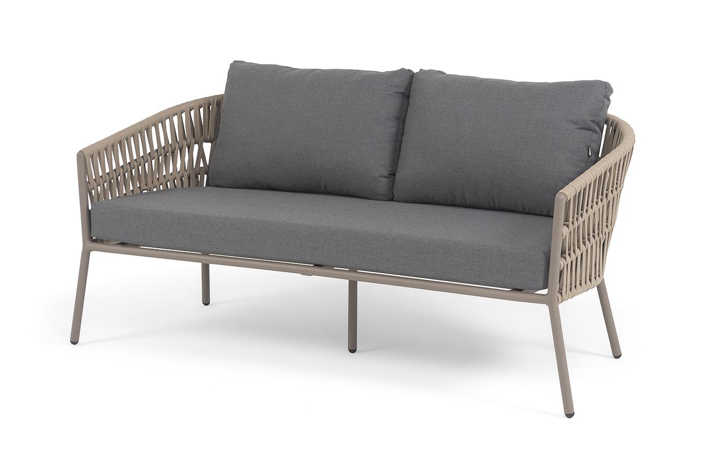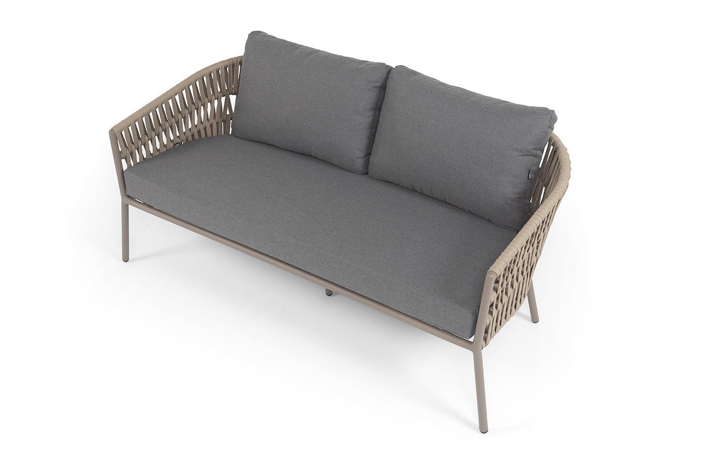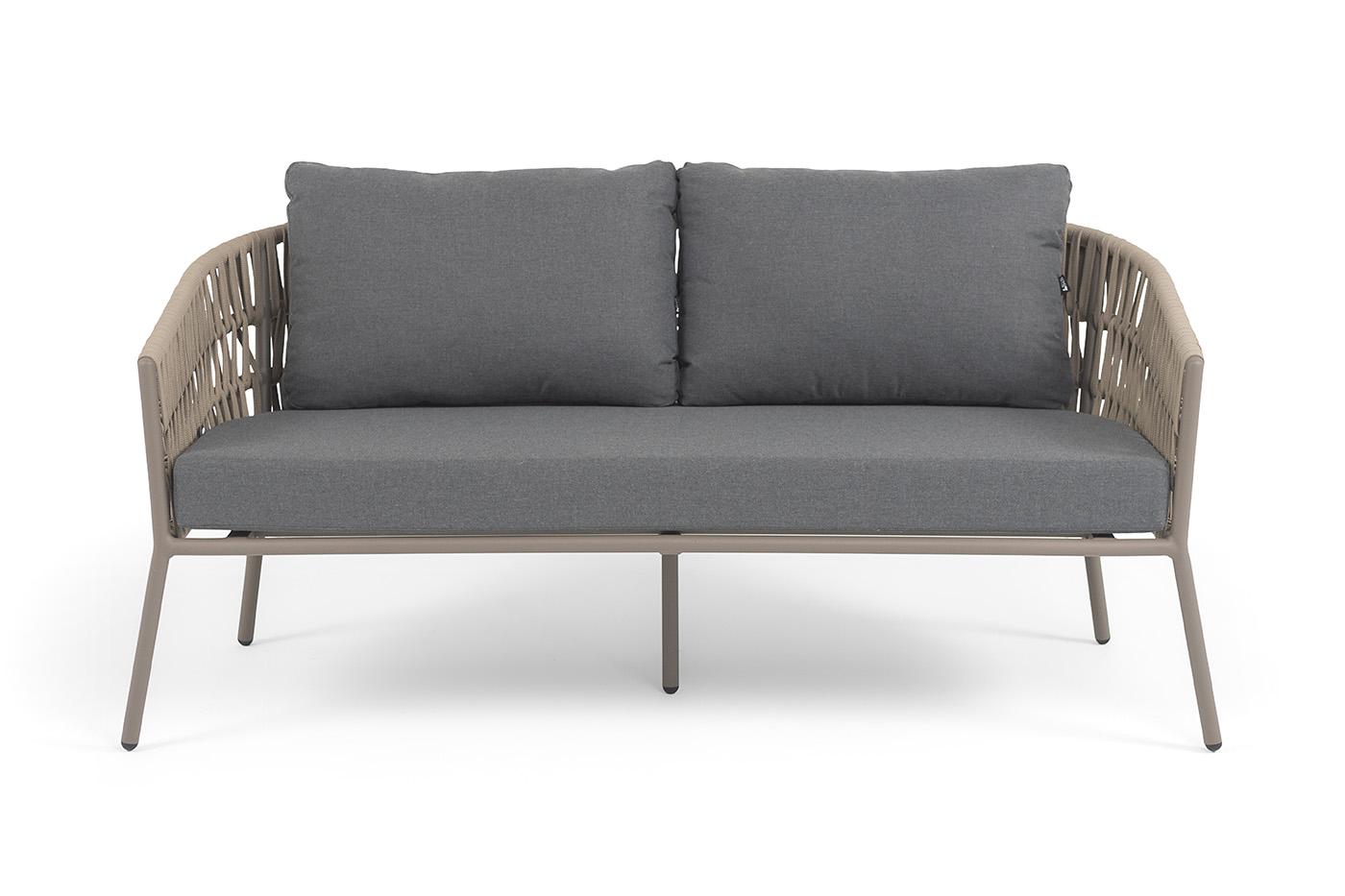 Диван 4SIS "Комо" диван 2-местный плетеный из роупа, каркас алюминий бежево-серый (RAL7006) муар, роуп серо-коричневый 23мм, ткань темно-серая 027 арт. COM-S-2-001 RAL7006 Mua S-G-brown(D-gray027)