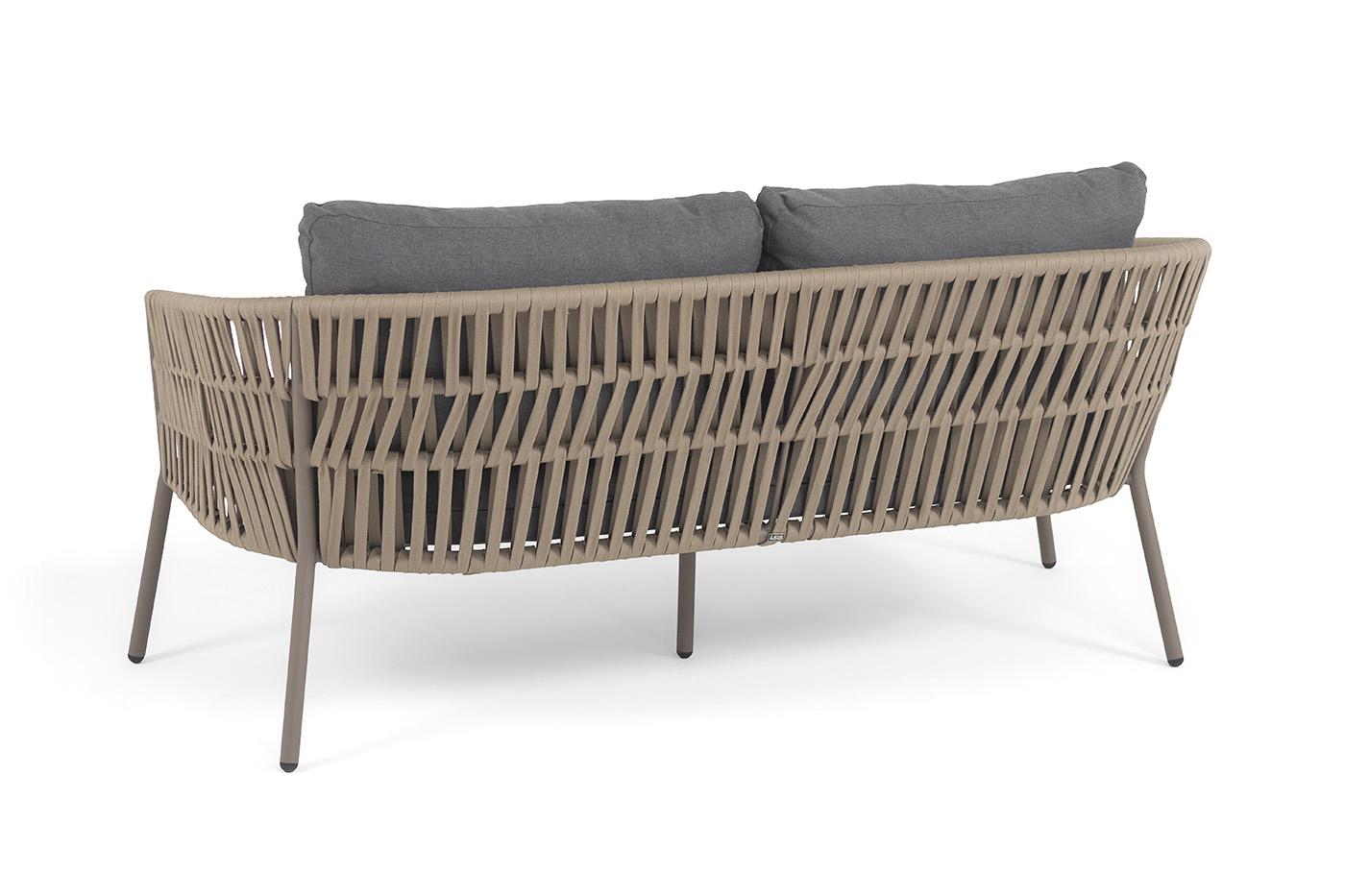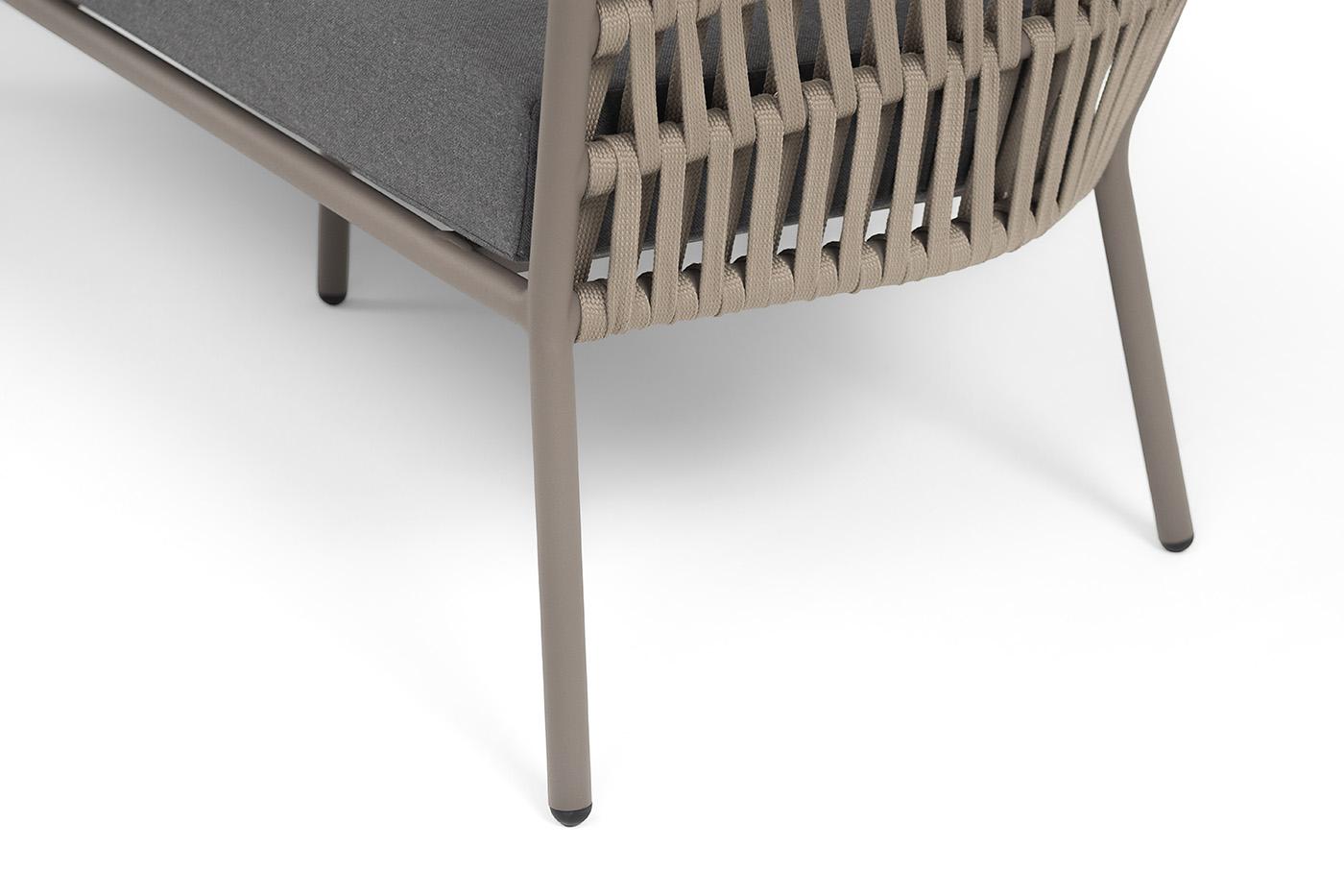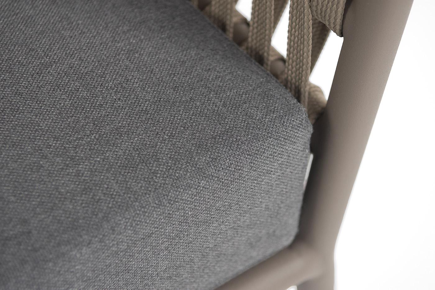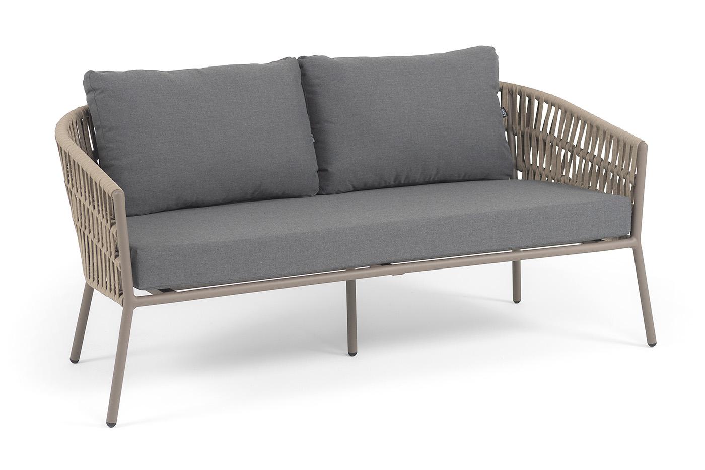 Диван 4SIS "Комо" диван 2-местный плетеный из роупа, каркас алюминий бежево-серый (RAL7006) муар, роуп серо-коричневый 23мм, ткань темно-серая 027 арт. COM-S-2-001 RAL7006 Mua S-G-brown(D-gray027)