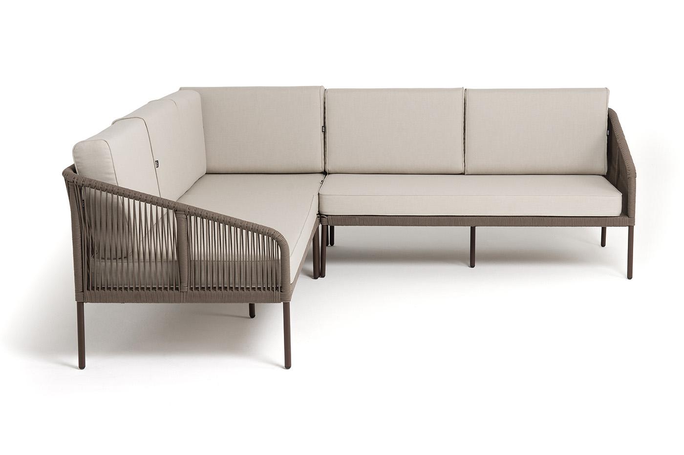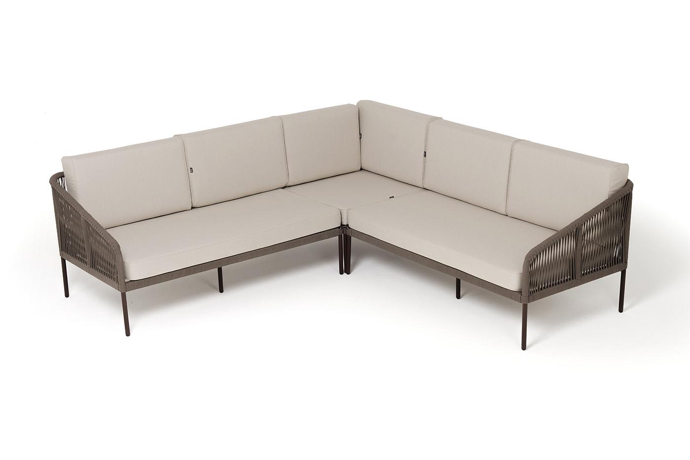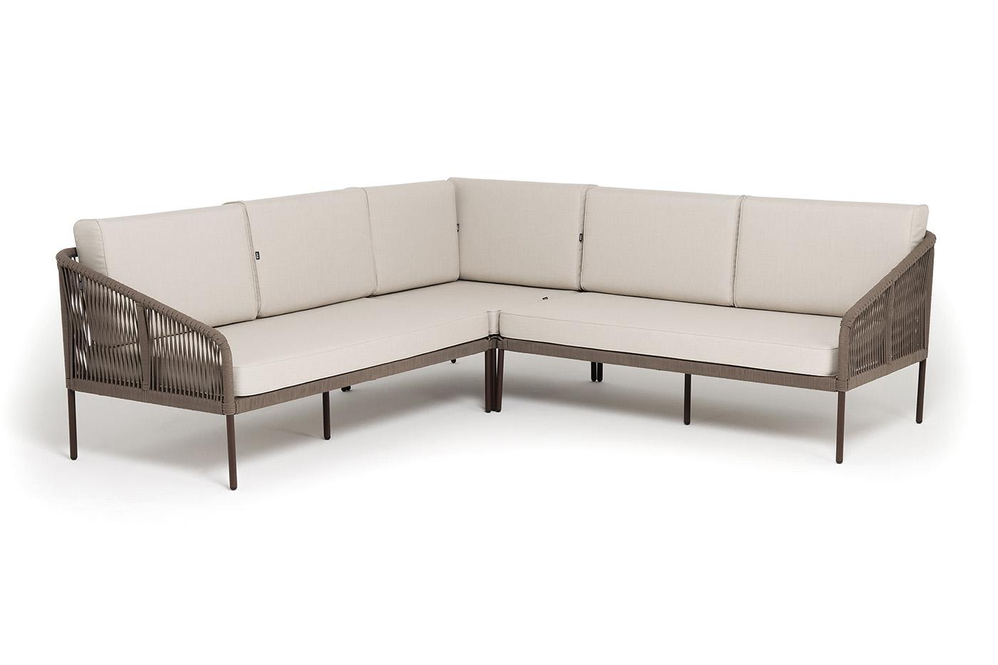 Диван 4SIS "Канны" диван модульный плетеный из роупа, каркас алюминий коричневый (RAL8016) муар, роуп коричневый круглый, ткань бежевая 15052 арт. KAN-MS-001 RAL8016 Mua brown(beige15052)